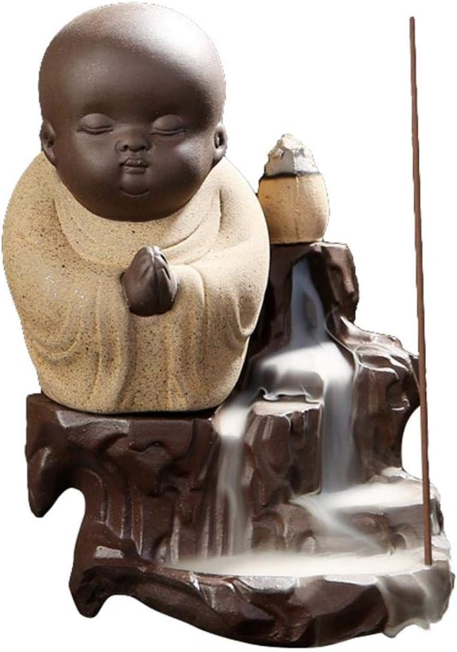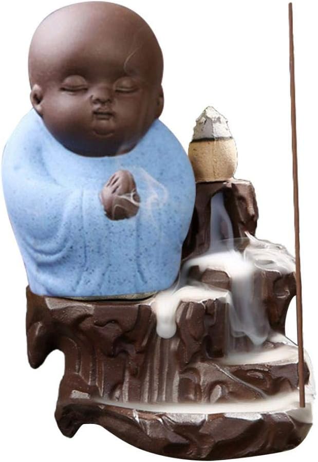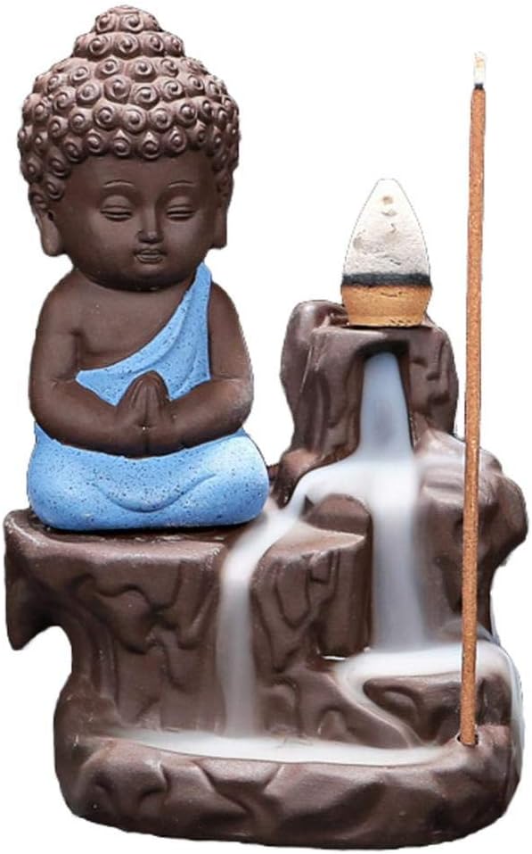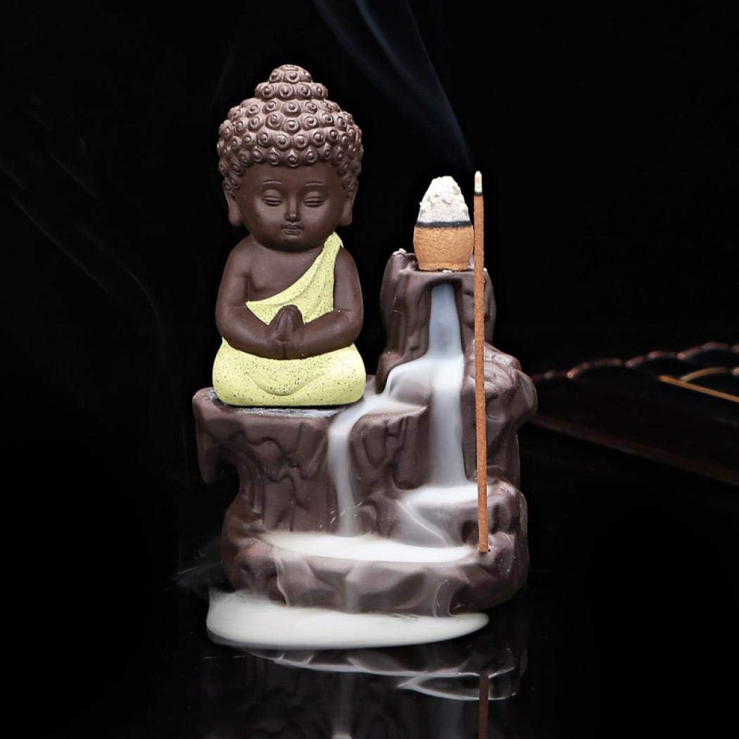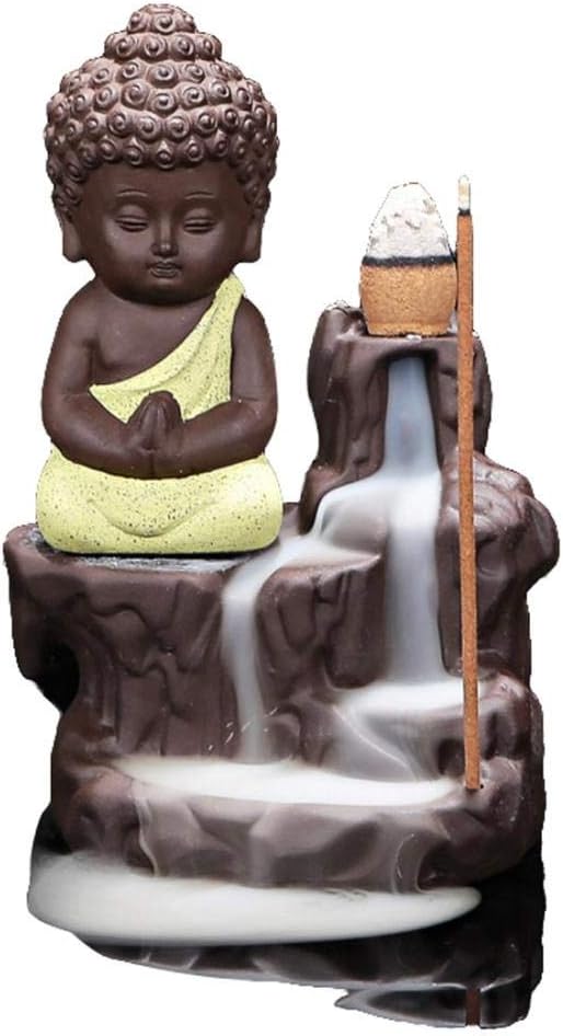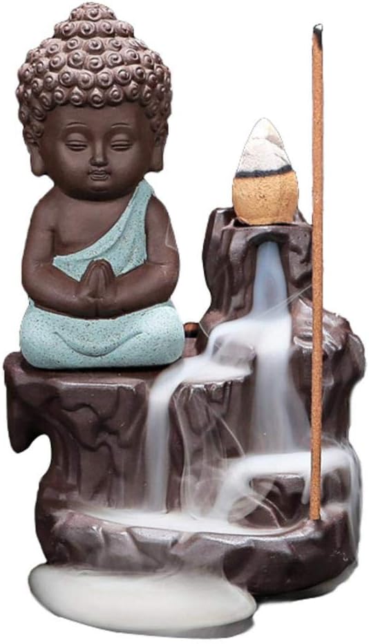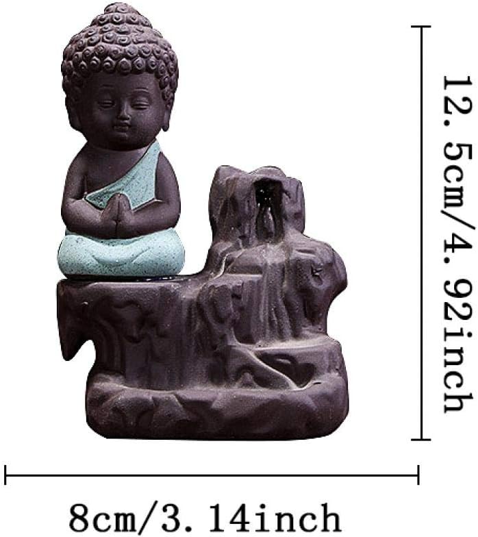 Little Buddha Backflow Incense Burner - Handmade Ceramic Home Decor with Waterfall Design and 10 Backflow Incense Cones