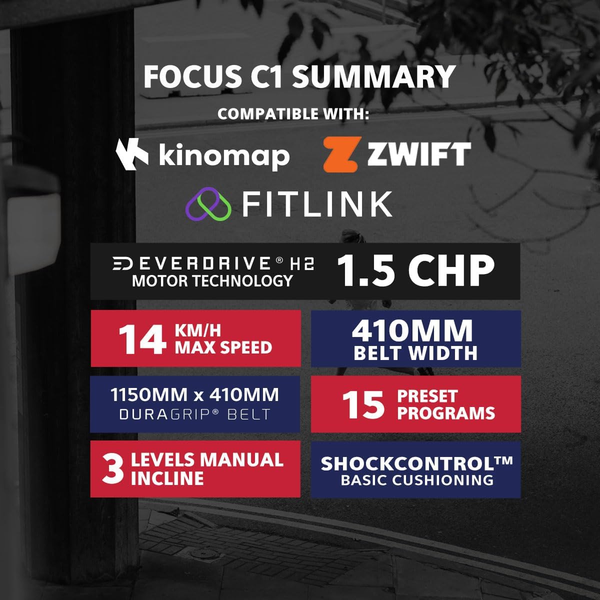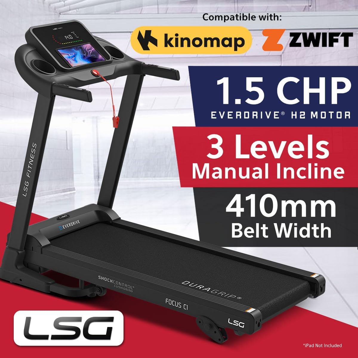 LSG Focus Treadmill with EverDrive® H4 Motor, 15 Levels of Automatic Incline, 1.0 to 18km/h Speed Range, ShockControl™ Basic Cushioning System, Spacious DuraGrip® Belt & 20 Preset Workout Programs