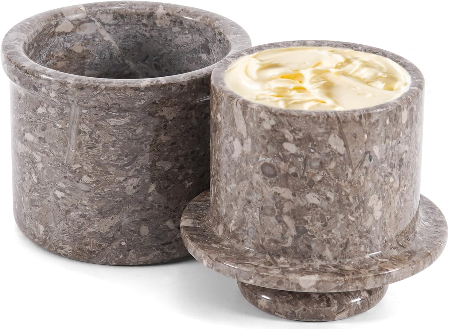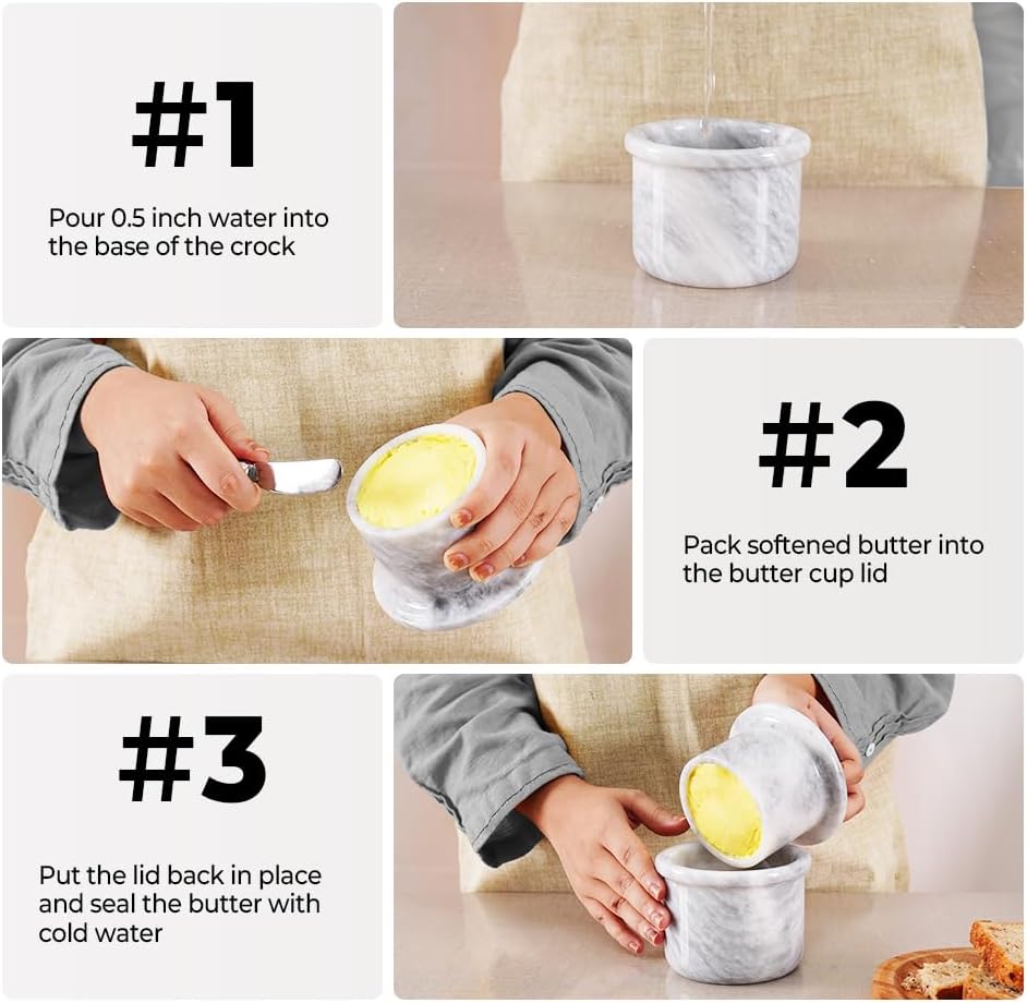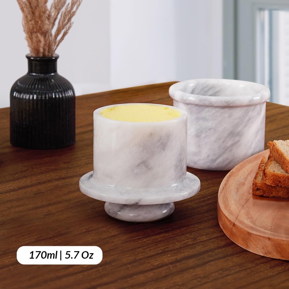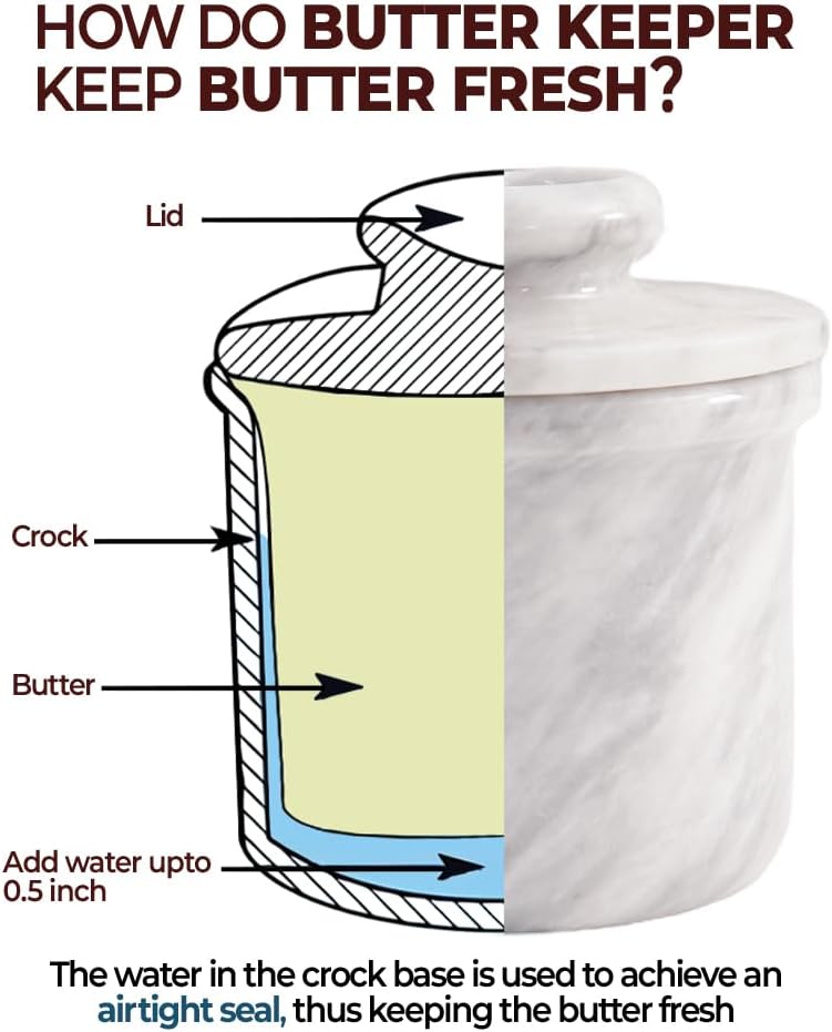 Marble Butter Keeper with Lid Handmade White French Butter Crock for Countertop, 4.25” Butter Dish for Kitchen Decor, Butter Holder for Spreadable Butter Storage