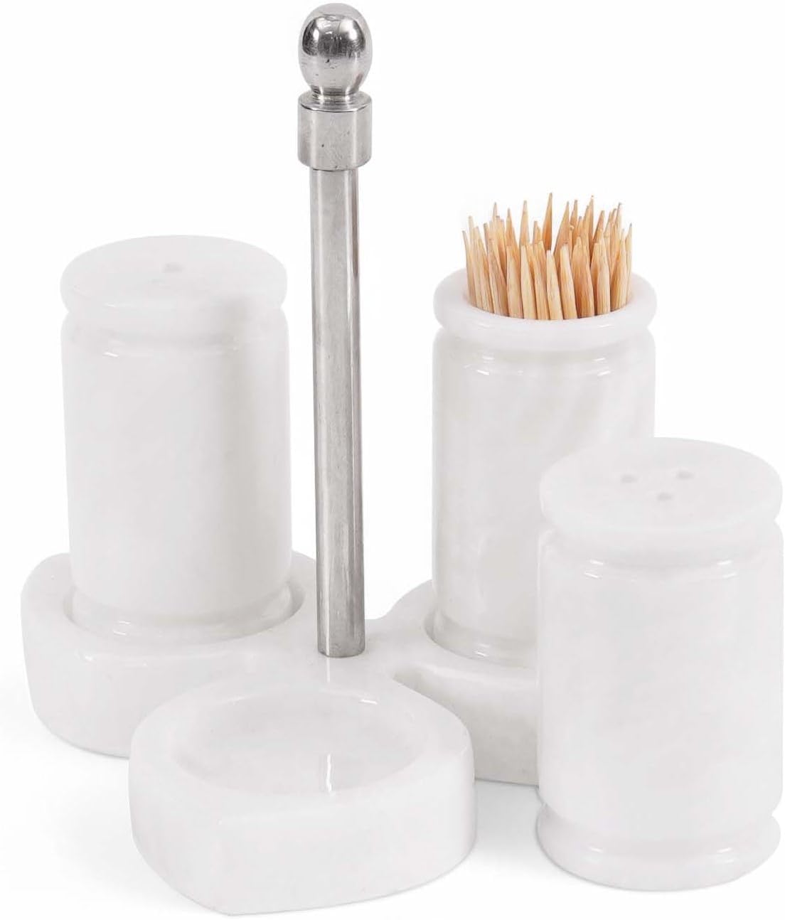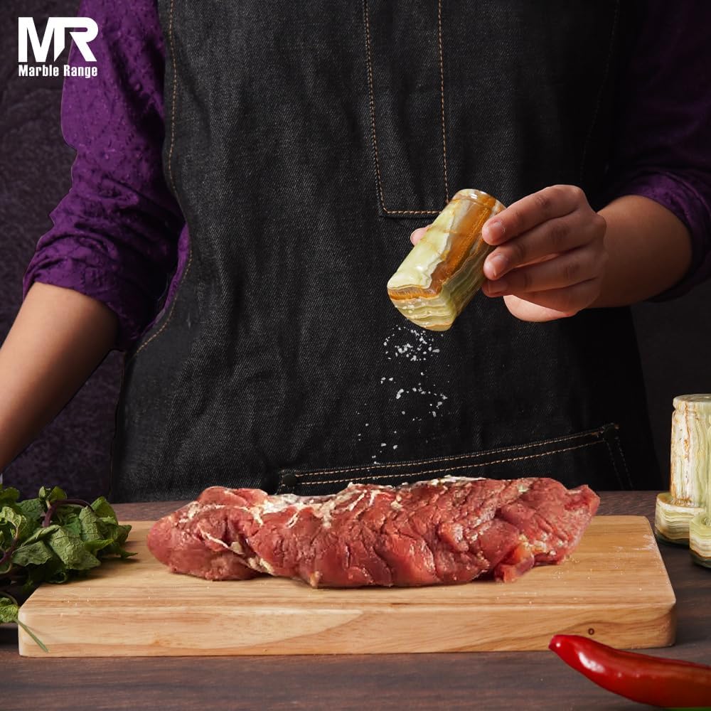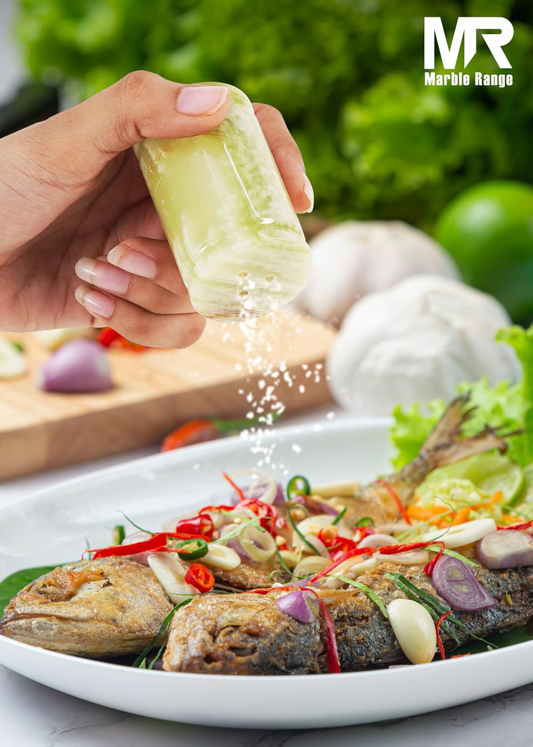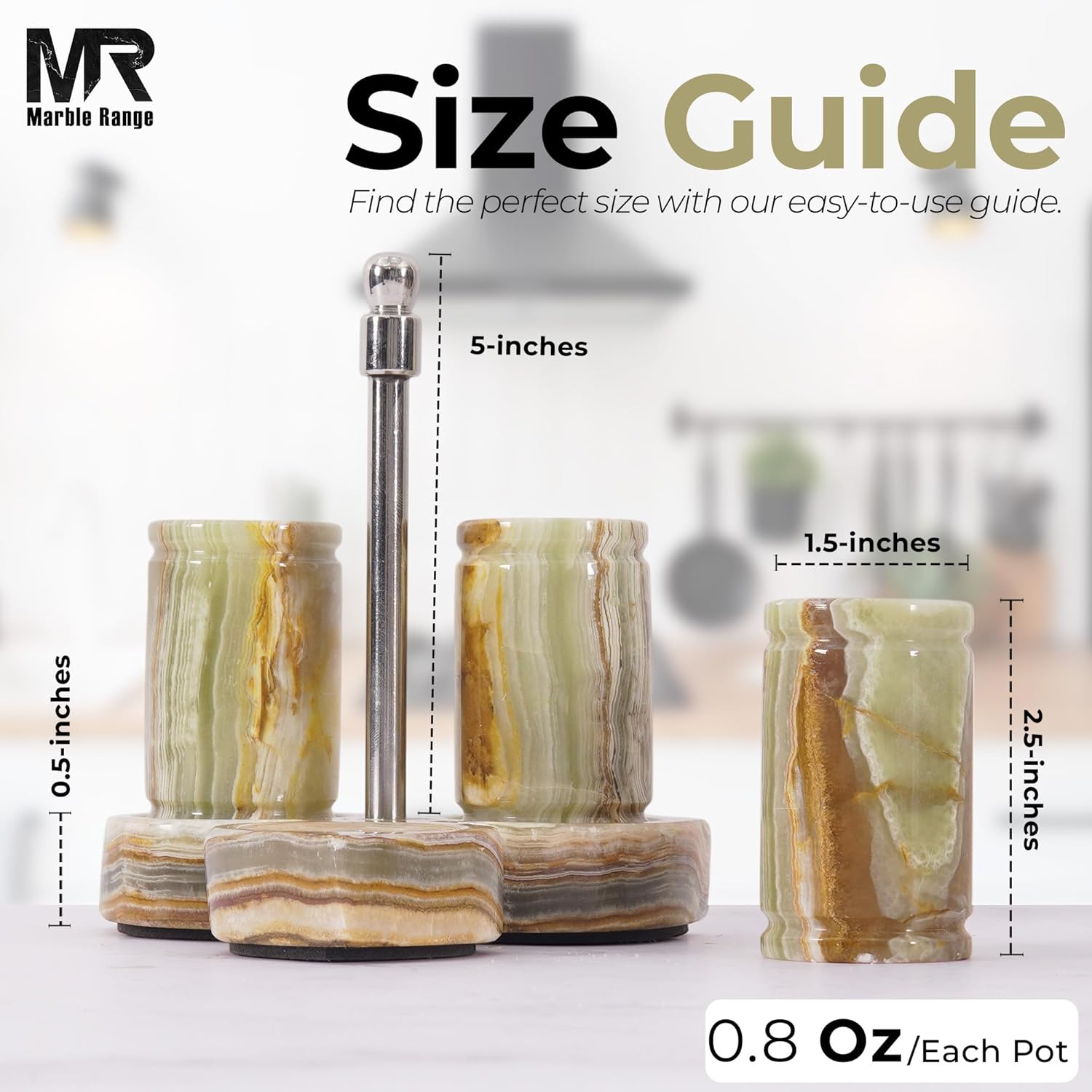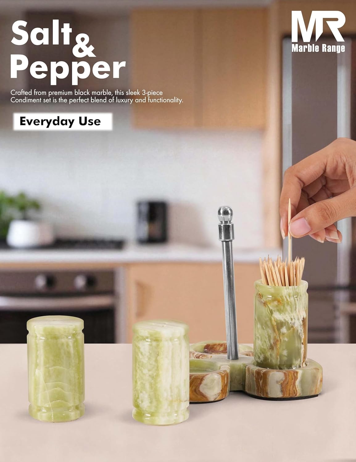 Marble Salt and Pepper Shakers Set of 3 Green Onyx 0.8 Oz Salt and Pepper Dispenser with Tray, Salt Shakers for Modern Home Kitchen Decor, Easy Filling & Toothpick Holder