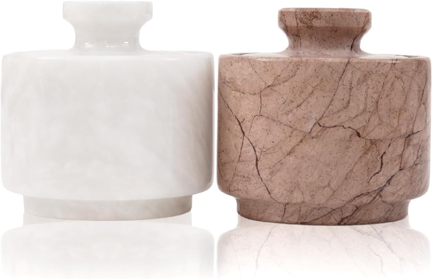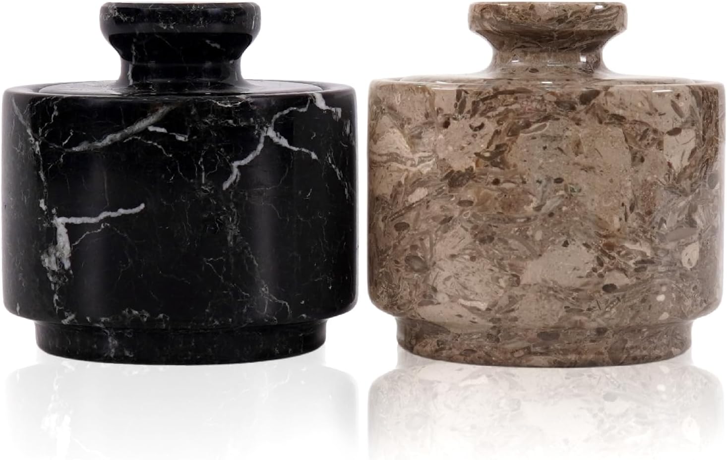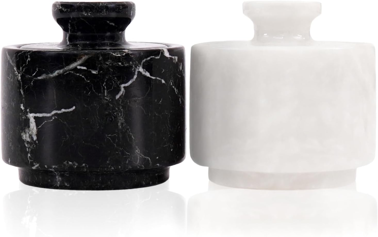 Marblous Krafts Stylish Marble Salt and Pepper Cellar White and Grey Oceanic 3.5 oz Salt Cellar, Salt Container and Tea Storage Box 3" X 3" Salt Holder with lid (White and Grey Oceanic)