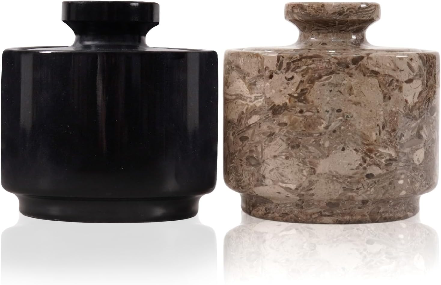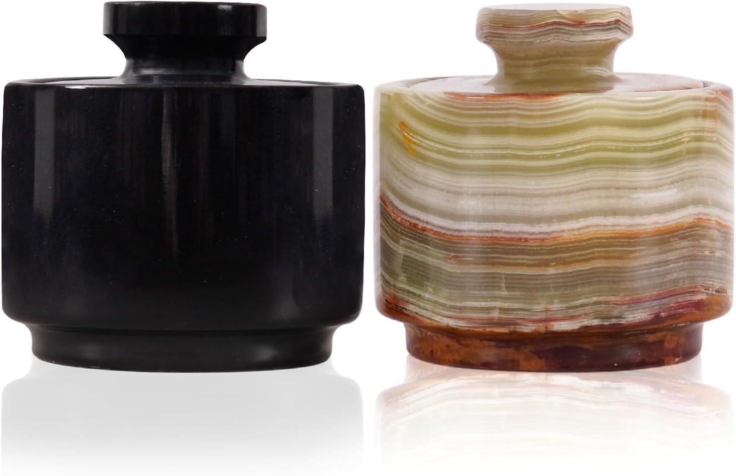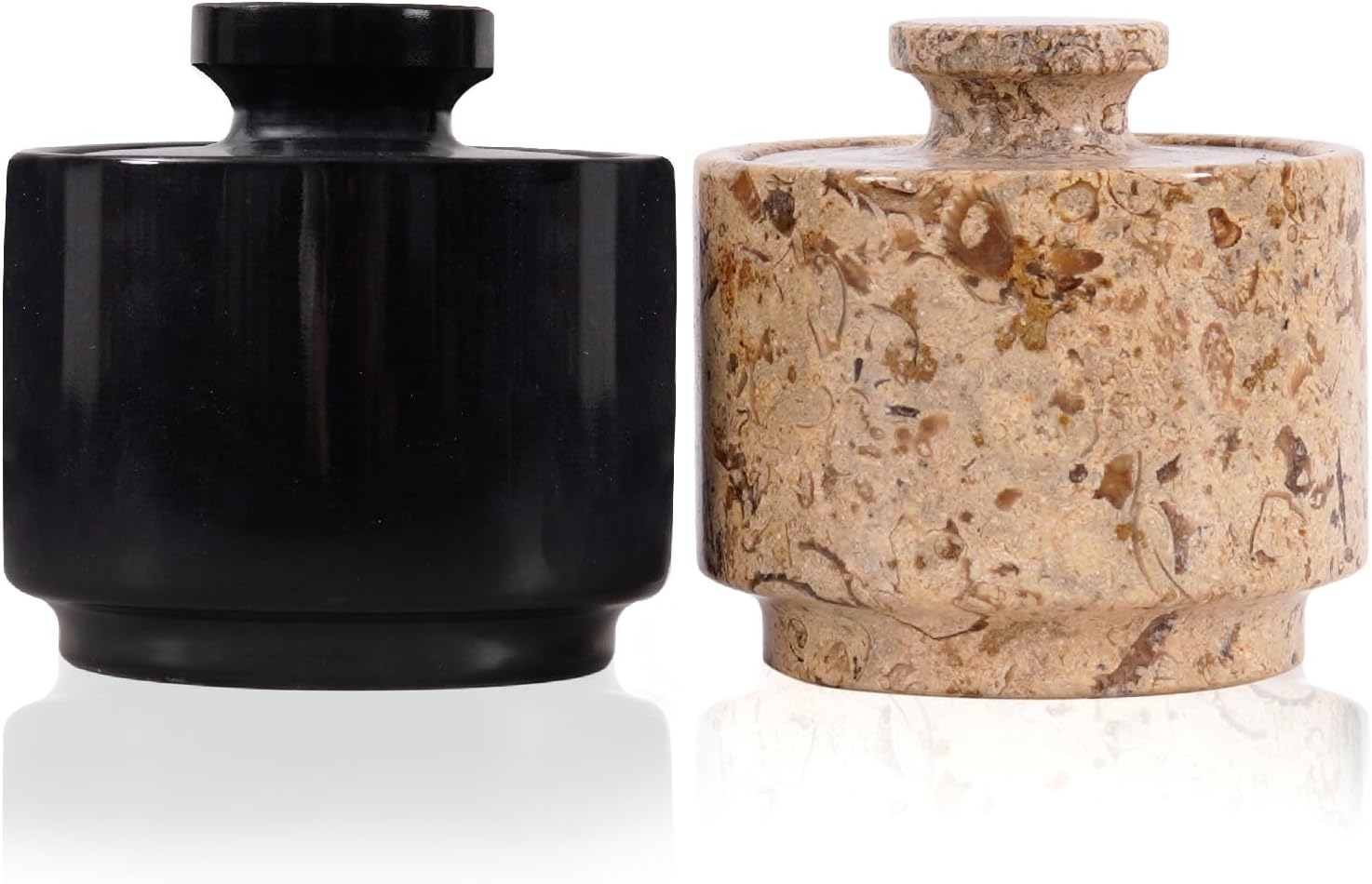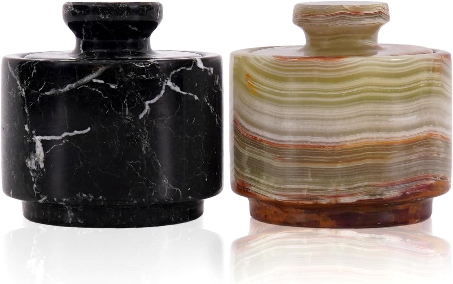 Marblous Krafts Stylish Marble Salt and Pepper Cellar White and Grey Oceanic 3.5 oz Salt Cellar, Salt Container and Tea Storage Box 3" X 3" Salt Holder with lid (White and Grey Oceanic)