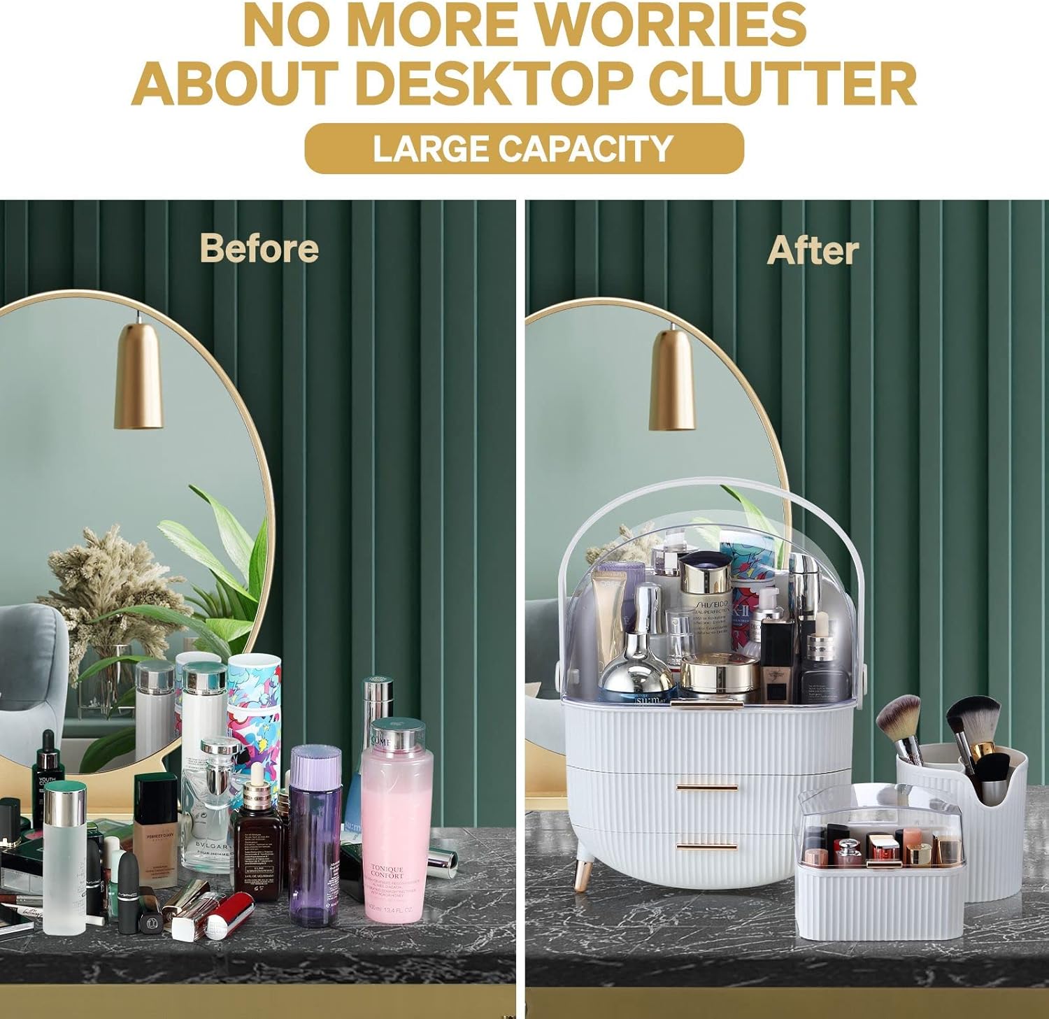 SPACE-SAVING & PORTABLE: Holding various personal beauty items in the bathroom takes up less room and makes your living area tidy. It is portable and versatile for different occasions like bedrooms, dressing tables, makeup rooms, beauty salons and traveling on the way.