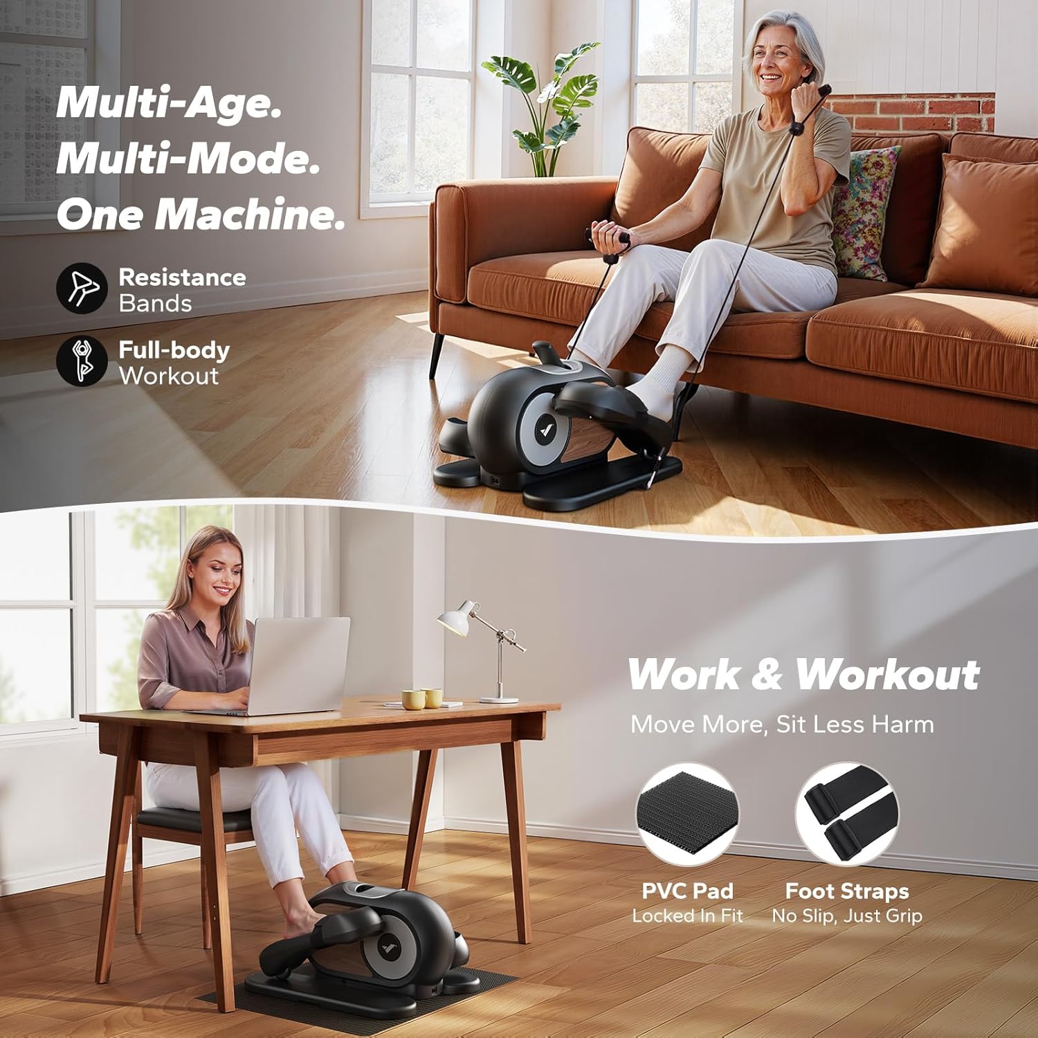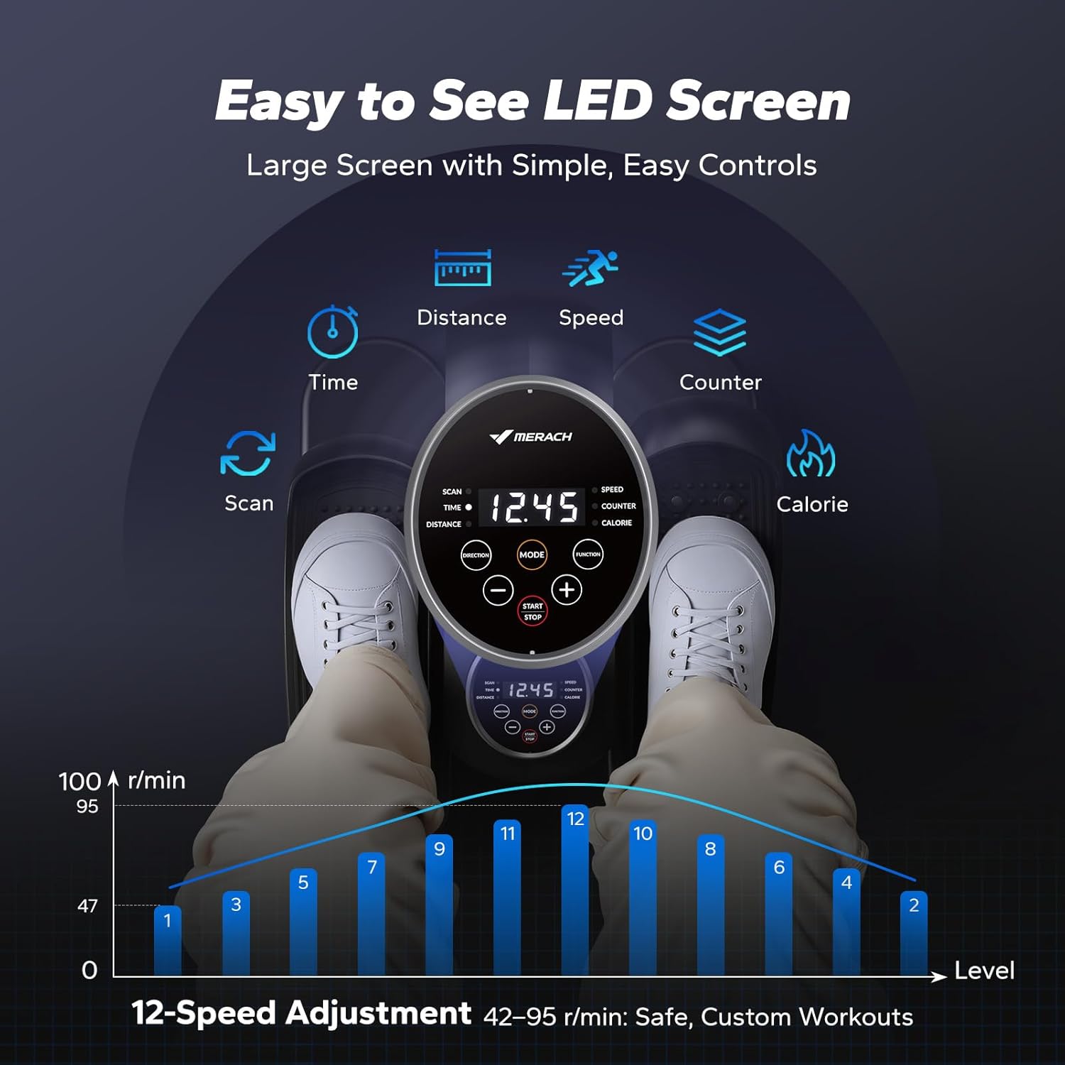 MERACH Under Desk Elliptical Machine for Home, Elliptical Cross Trainer Stepper Ellipse Leg Exerciser for Seniors with 12 Adjustable Speed Quiet with Remote Control & Non-Slip Pad Pedal Exerciser