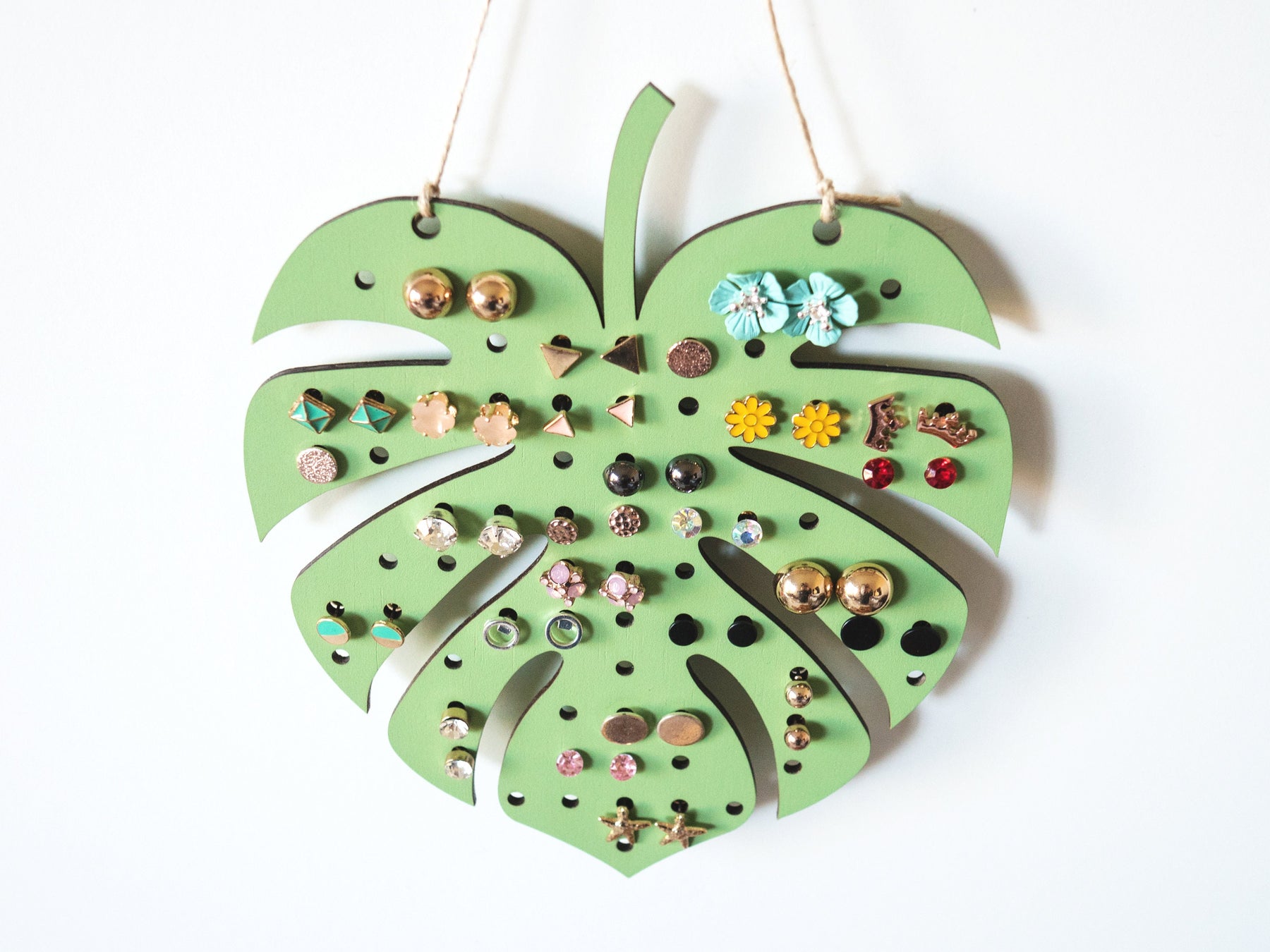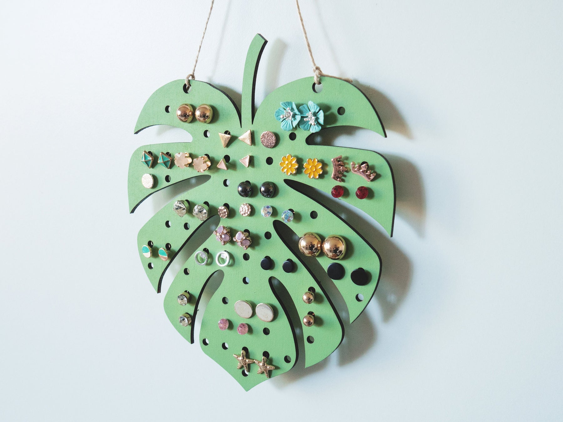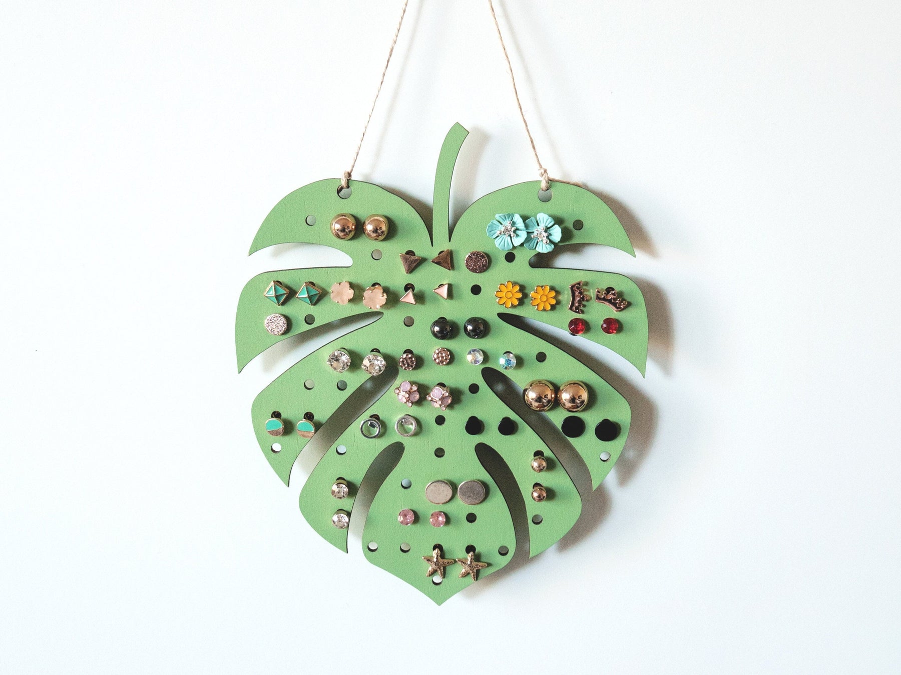 Mini Monstera Earring Holder - Wall Earring Holder, Earring Organiser, Stud Earring Holder, Earring Holder Green, Wall Mount Earring Holder