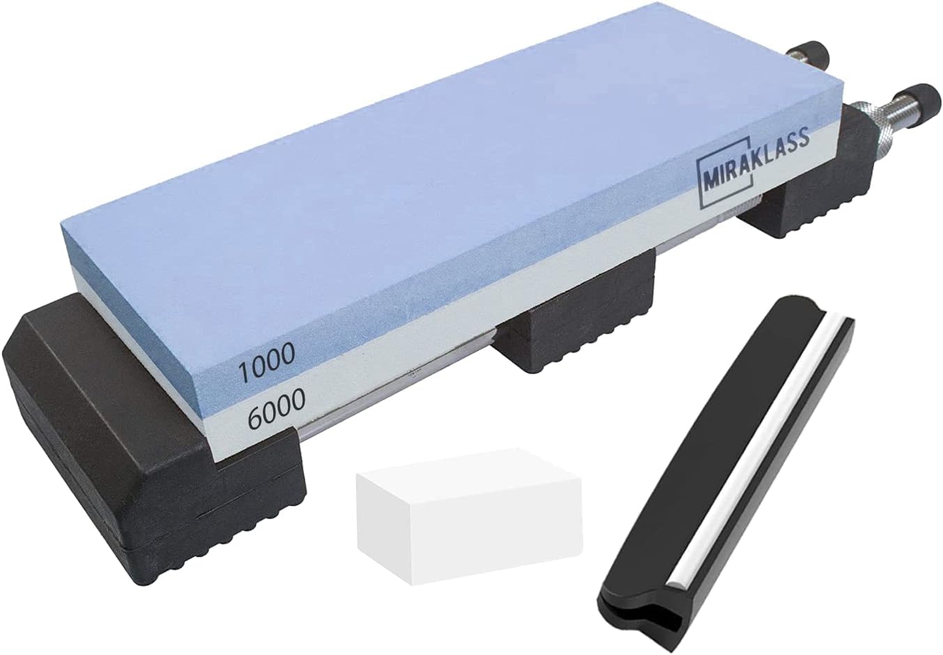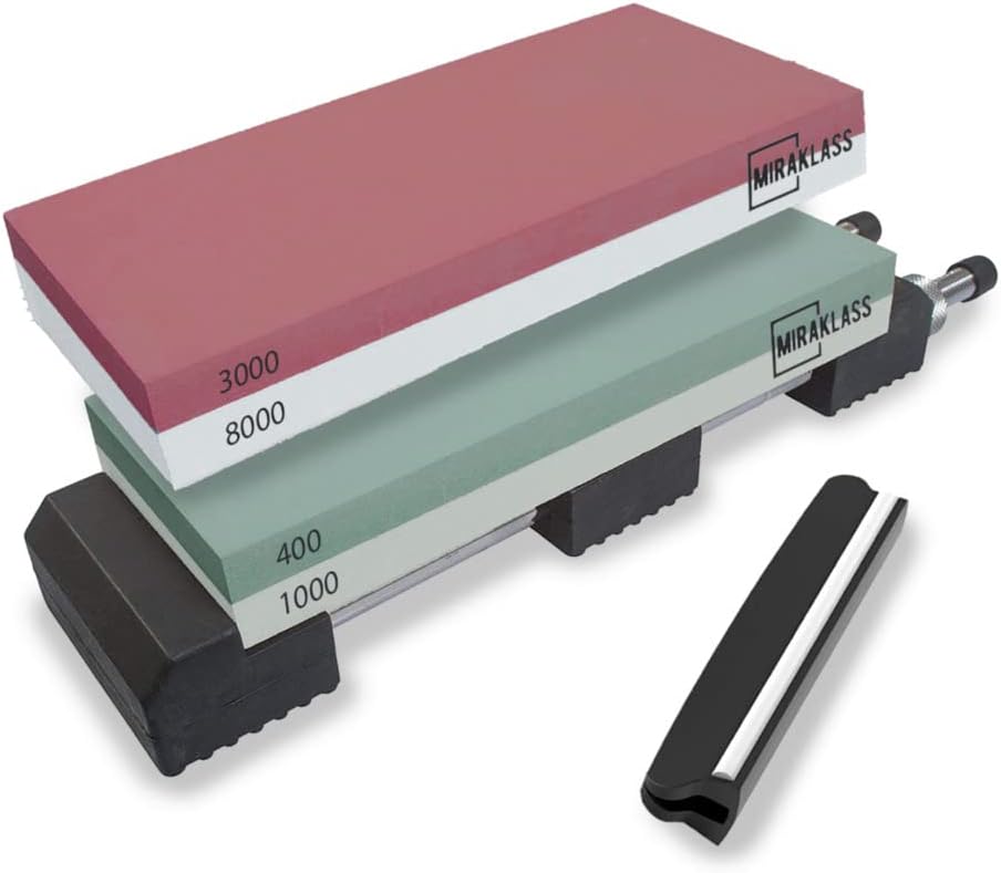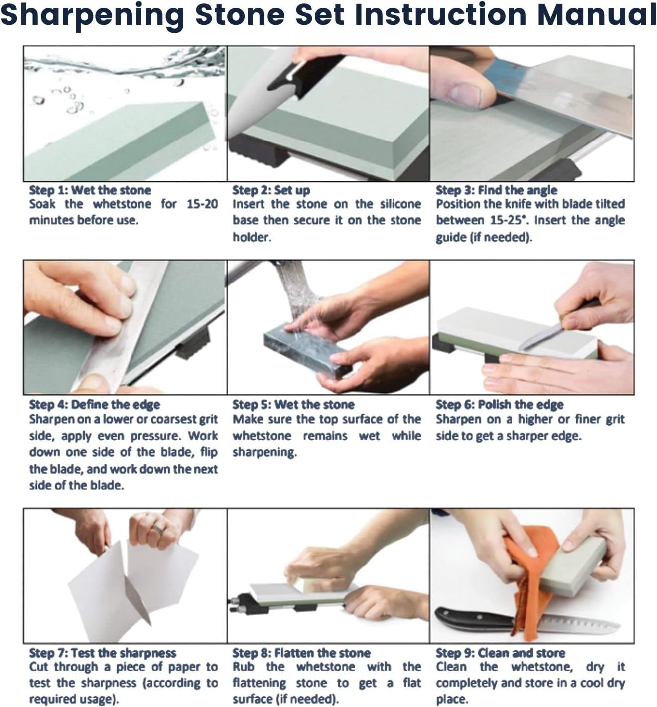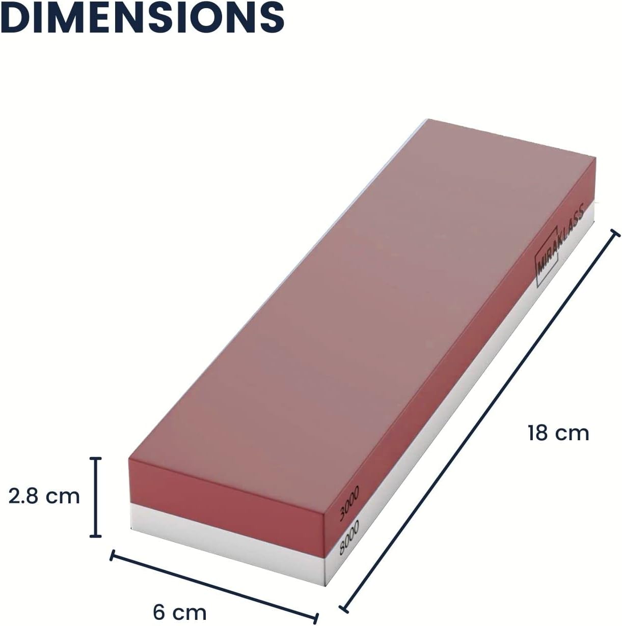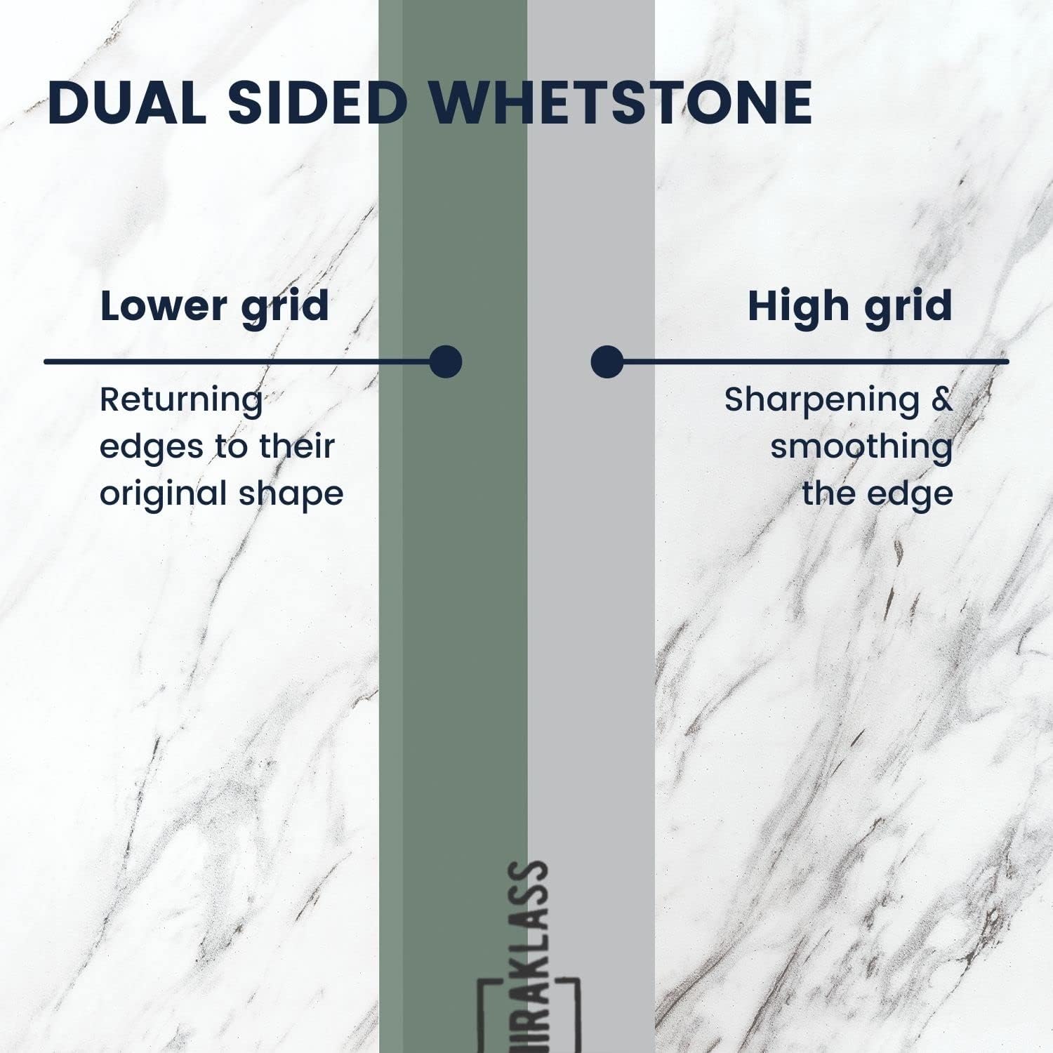 Dual-Sided Whetstone: Featuring two stones with grit sizes of 400/1000 and 3000/8000, the lower grit is perfect for restoring dull edges, while the higher grit provides precision sharpening and polishing.