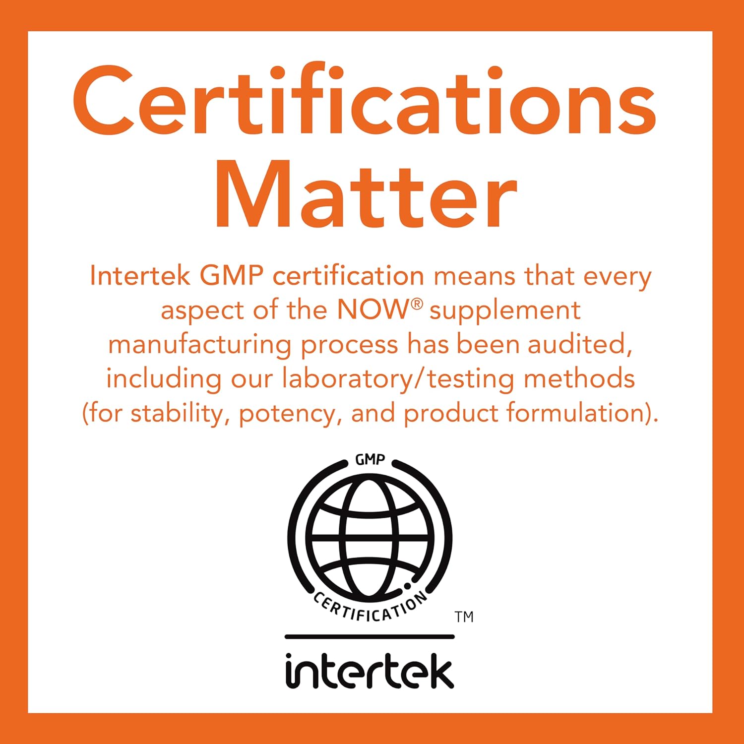 GMP Quality Certified: The NPA A-rated GMP certification confirms that every stage of NOW's manufacturing process undergoes rigorous review, including testing for stability, potency, and formulation quality.