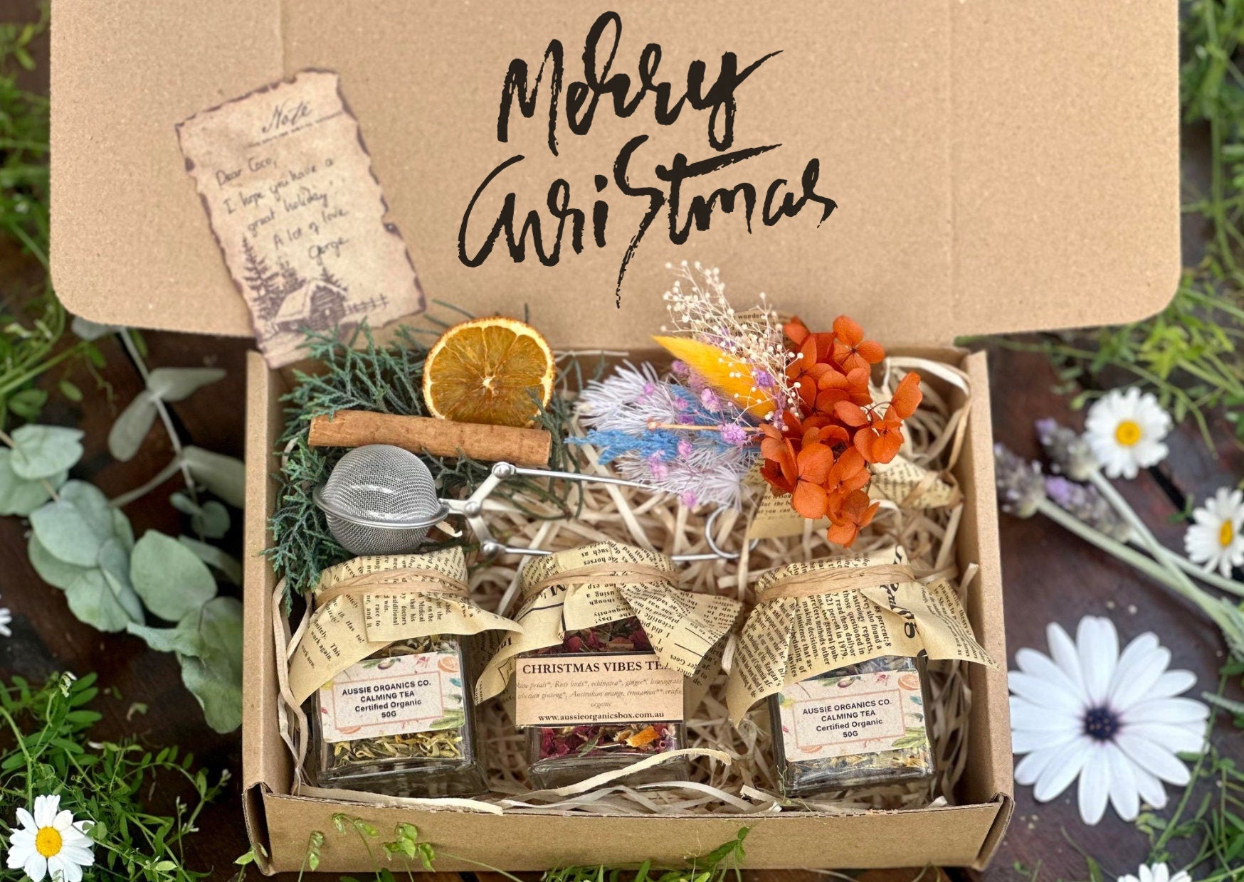 Our Christmas tea gift box is designed especially for tea aficionados. This thoughtfully curated collection caters to the preferences of tea lovers. Every tea variety in this set is certified organic and elegantly packaged in zero-waste jars, showcasing our dedication to sustainability. This gift box is not only organic and vegan but also free from plastic. To make it even more special, we provide a handwritten note on a vintage card, along with the option to add a brief message on the box itself.