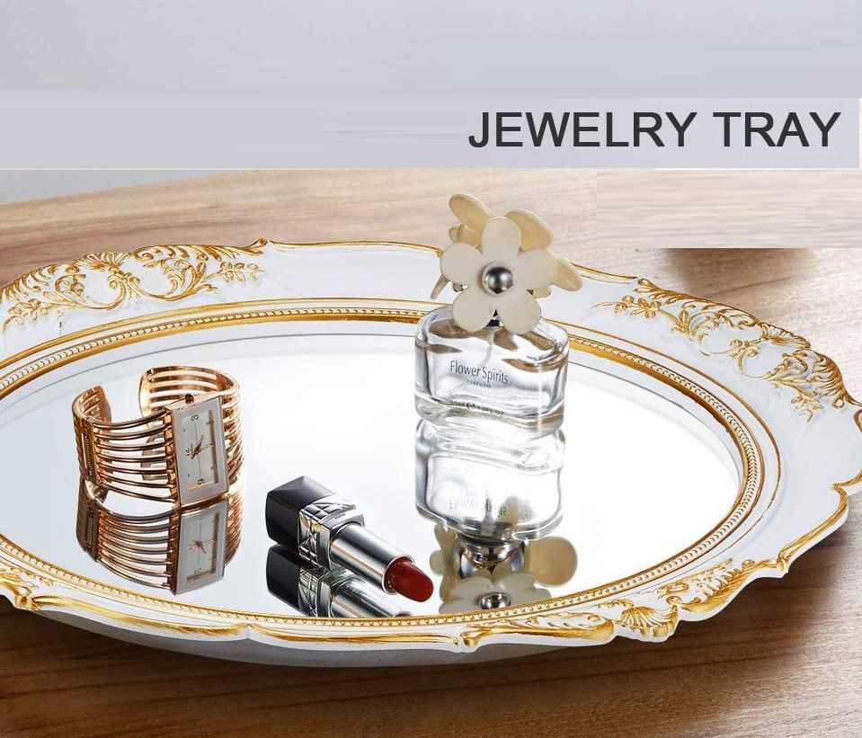 Oval Antique Vintage Hanging Wall Mirror for Bedroom and Living room (White, 38 x 33 cm)