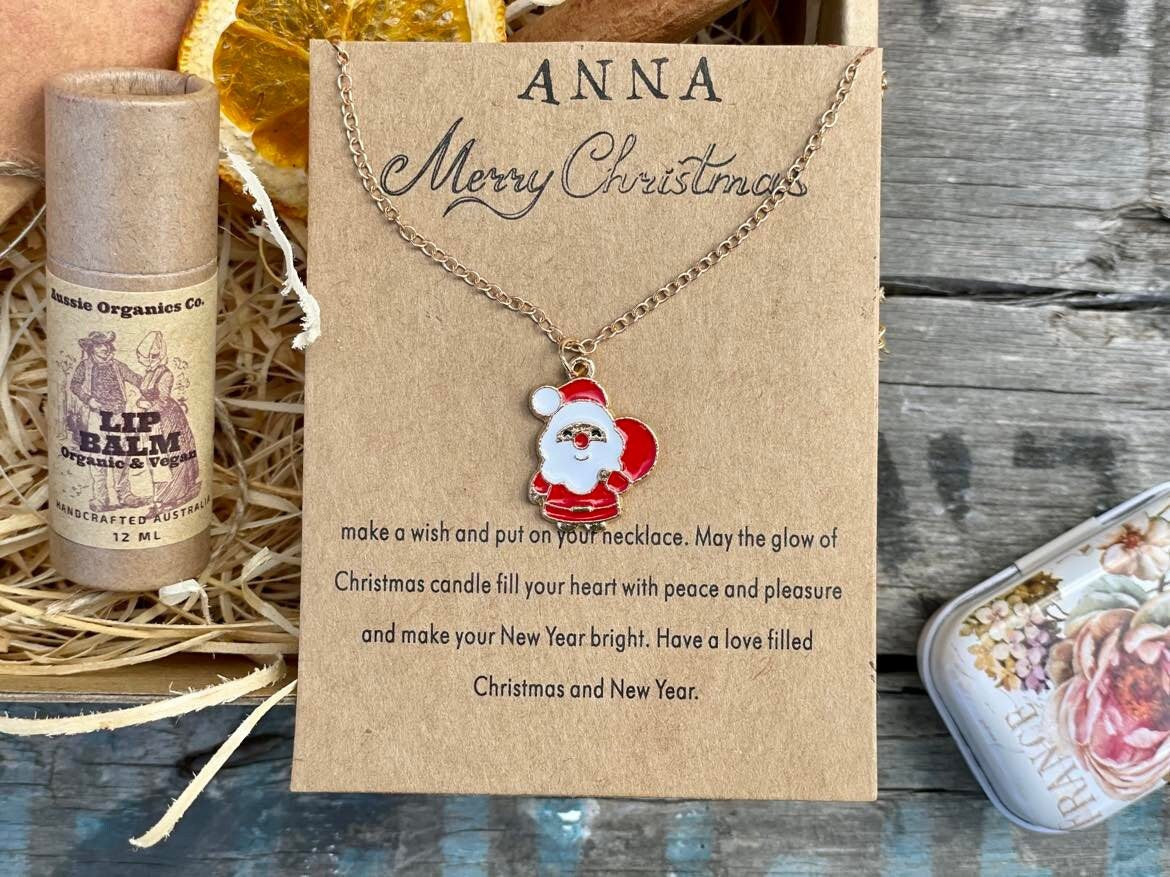1 x Santa Necklace featuring Christmas & New Year greetings along with the RECIPIENT'S NAME on its card