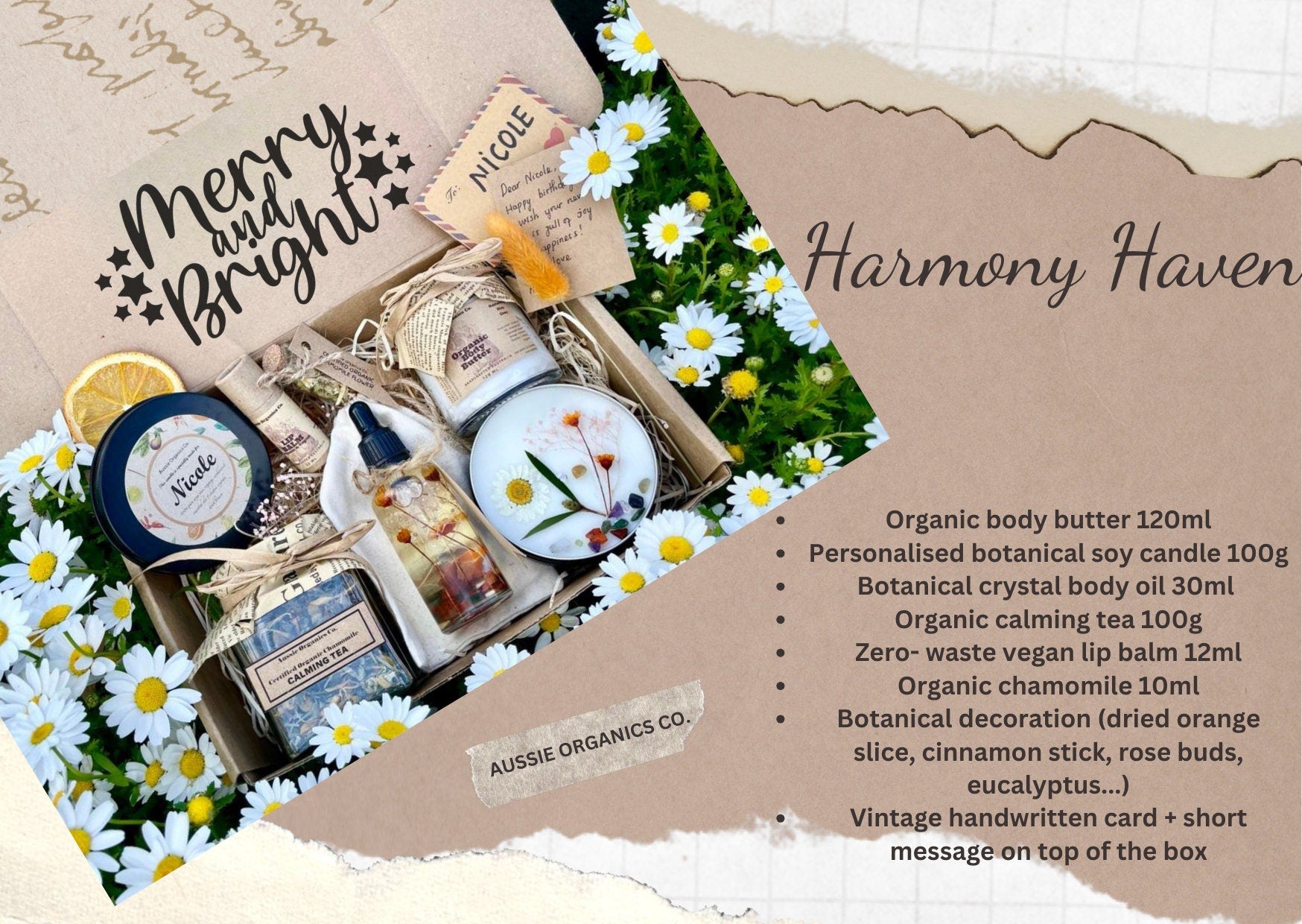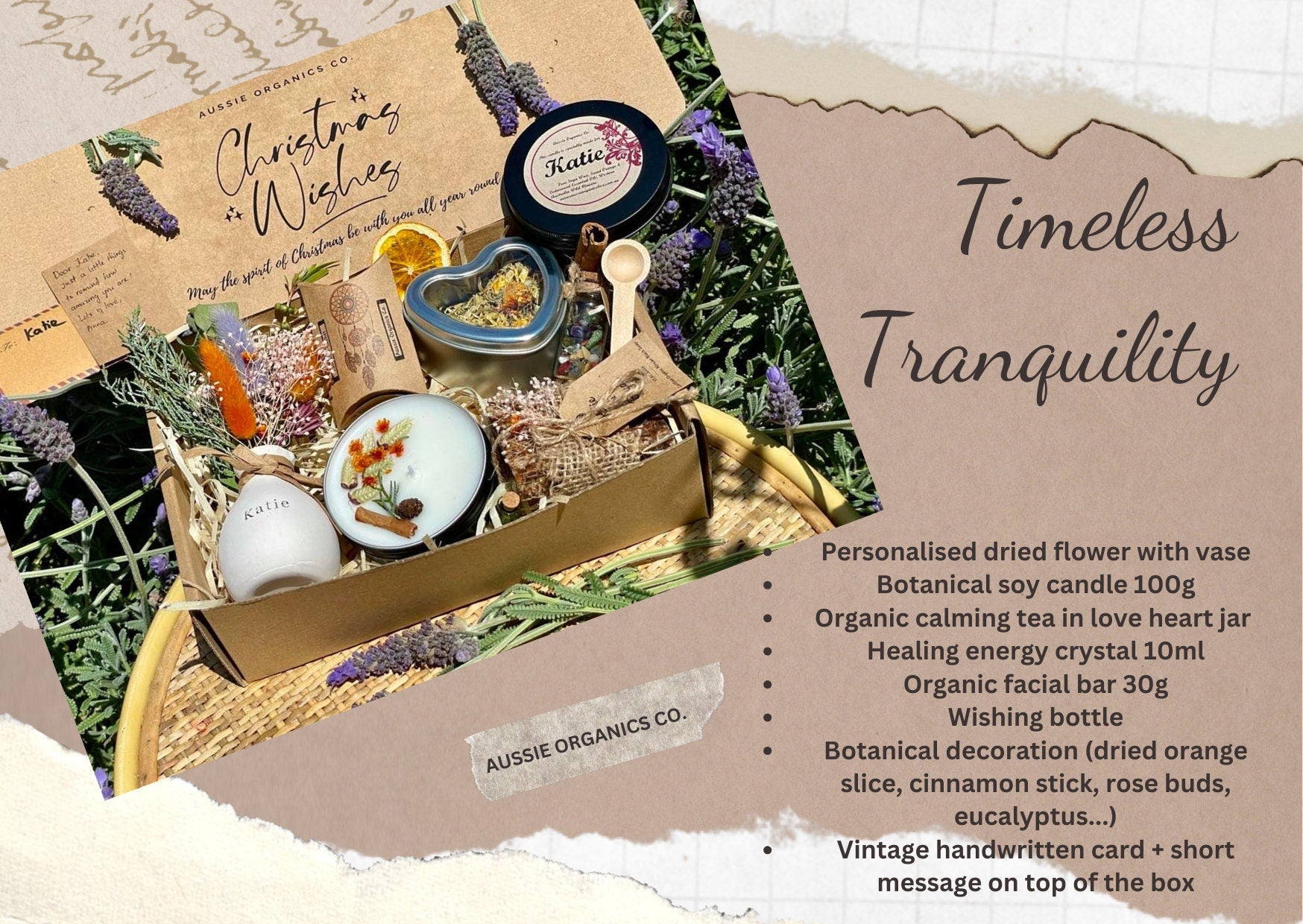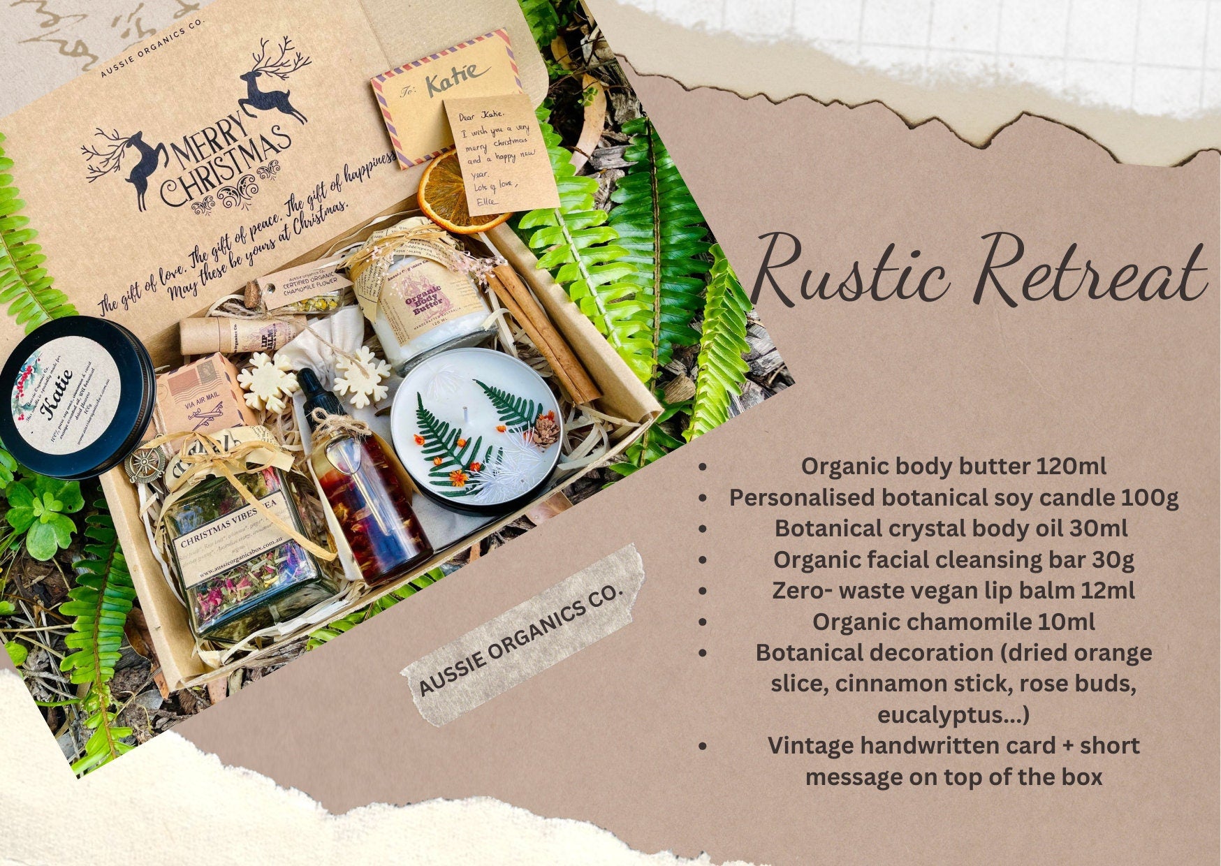 1x Vintage-style handwritten card + brief message on top of the box