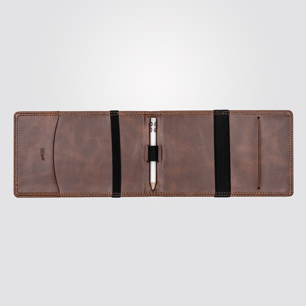 Introducing our Custom Premium Scorecard Holder, crafted from high-quality vegan leather, offering a chic solution to safeguard your score and yardage book. You can customize it with your initials, name, or nickname (up to 10 characters). An ideal gift for golfers or anyone seeking a top-tier scorecard holder.
