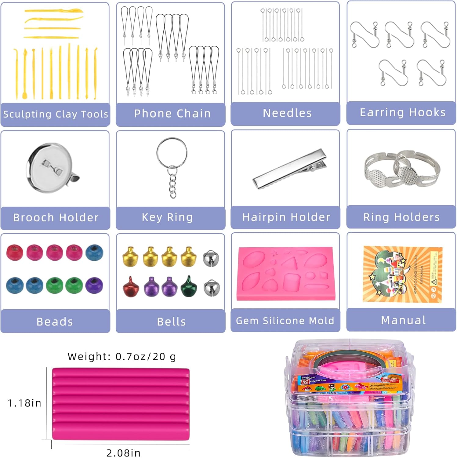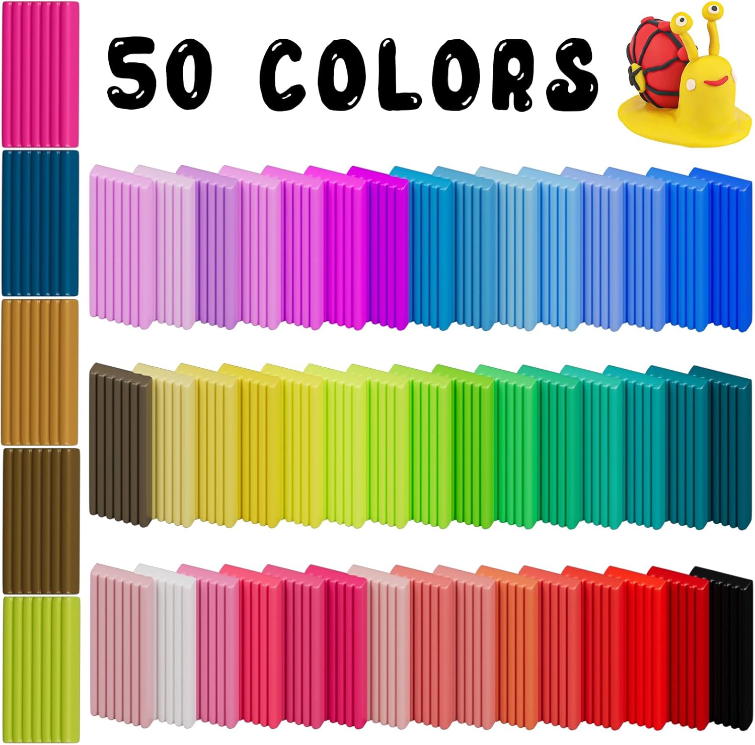 Polymer Clay 50 Colors, Modeling Clay for Kids DIY Starter Kits, Oven Bake Model Clay, Non-Toxic, Non-Sticky, Ideal for Children and Artists (50 Colors)