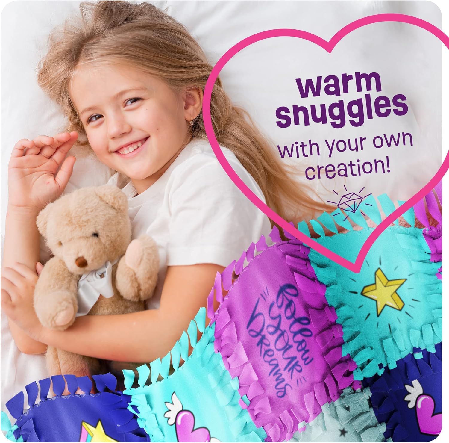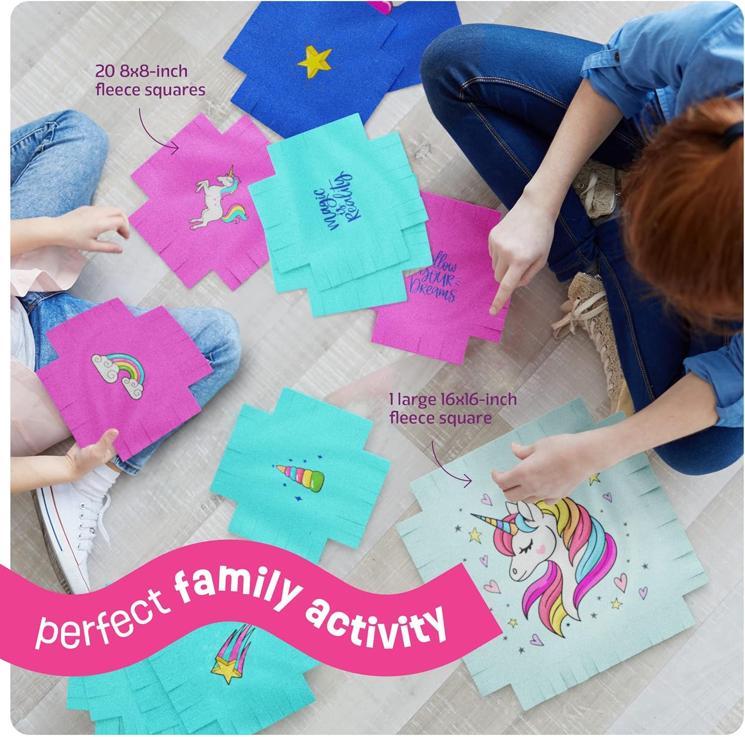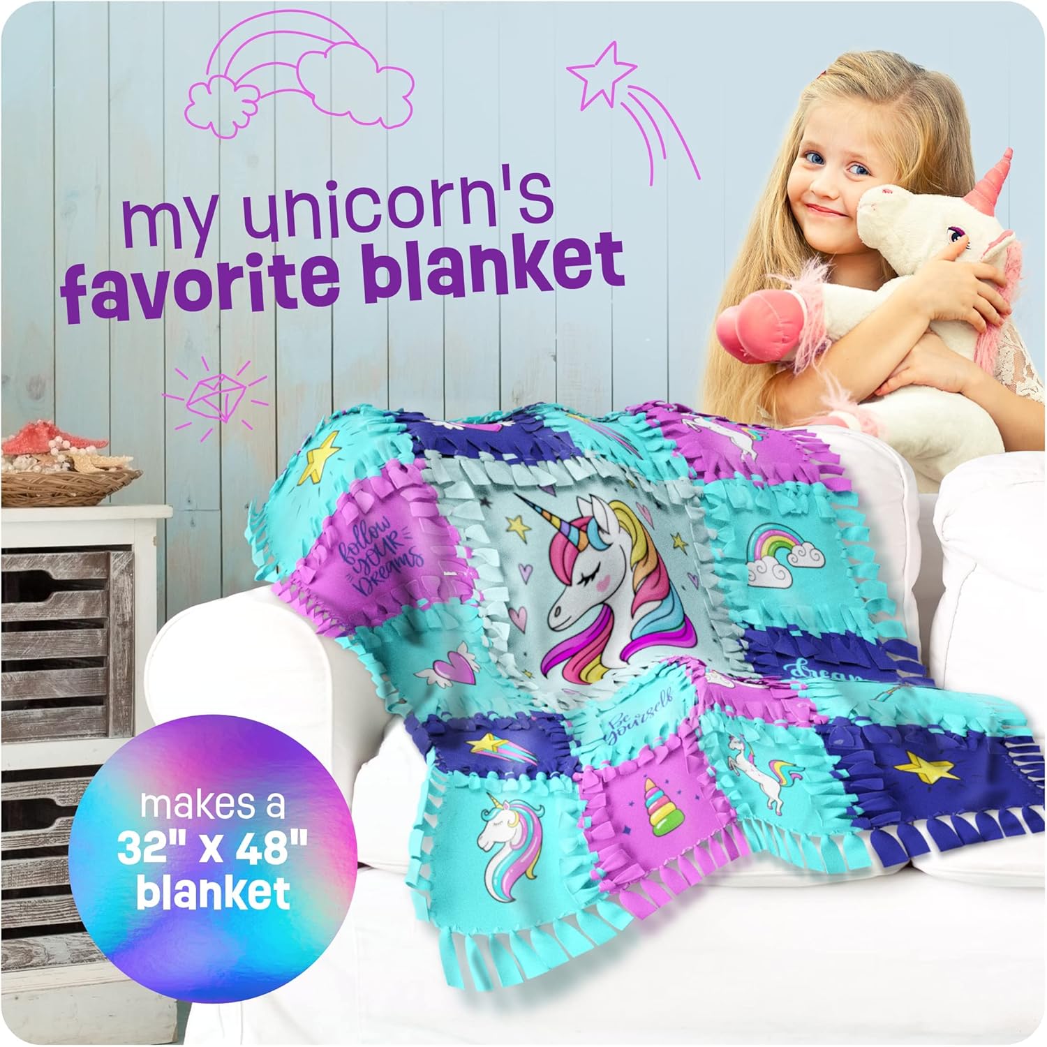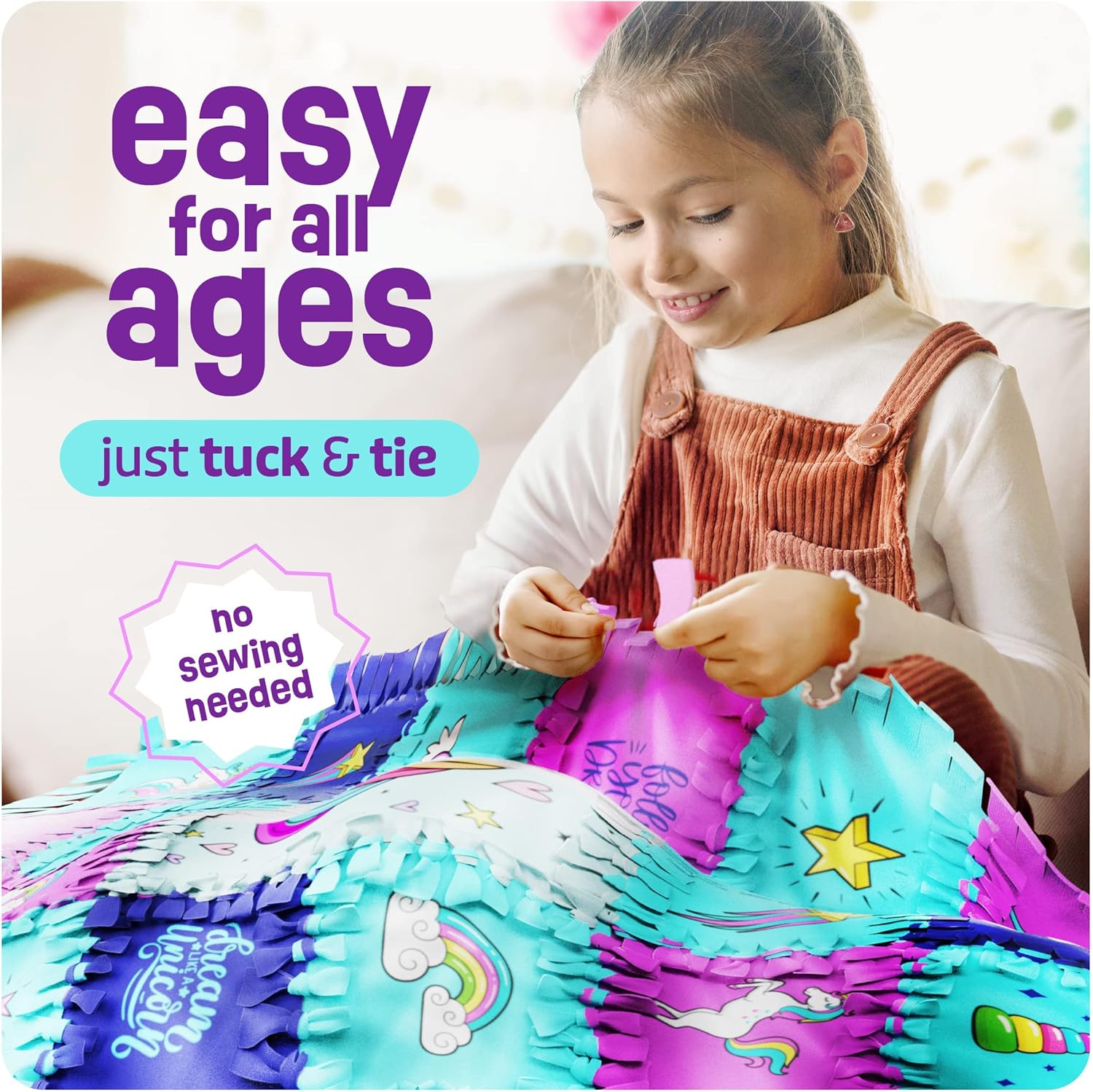Pretty Me Unicorn Tuck N' Tie Fleece Blanket Kit - DIY Crafts for Girls Ages 6+ Year Old - Best Arts & Craft Girl Gifts Ideas - No Sew Blanket Making Kit - Kids Gift Toys Kits