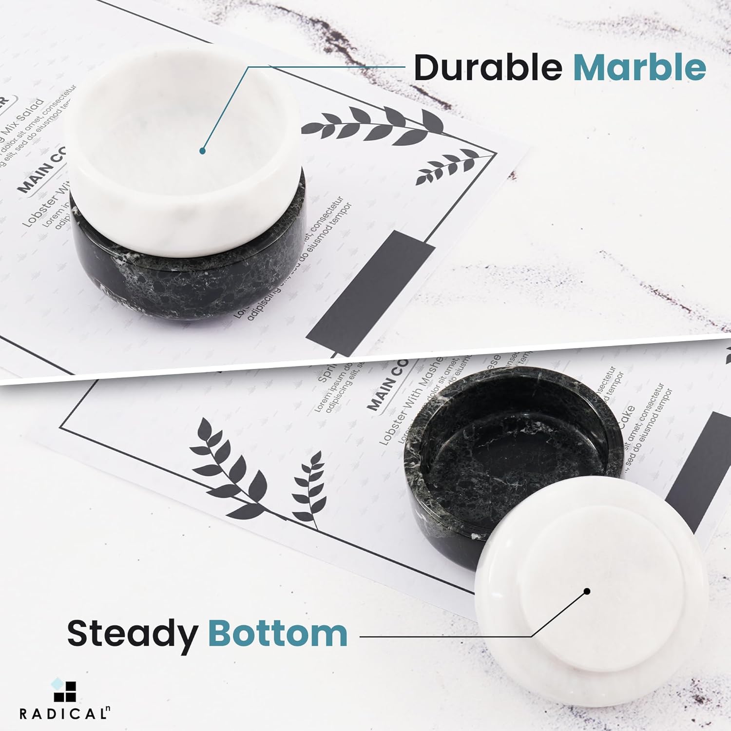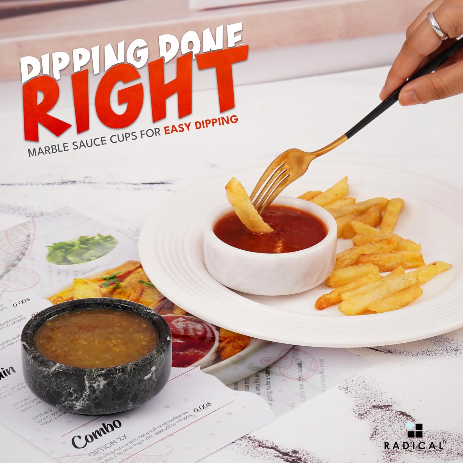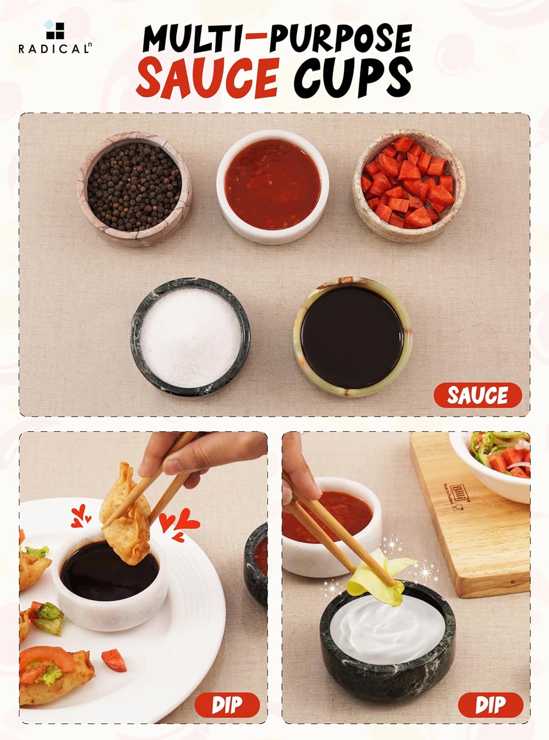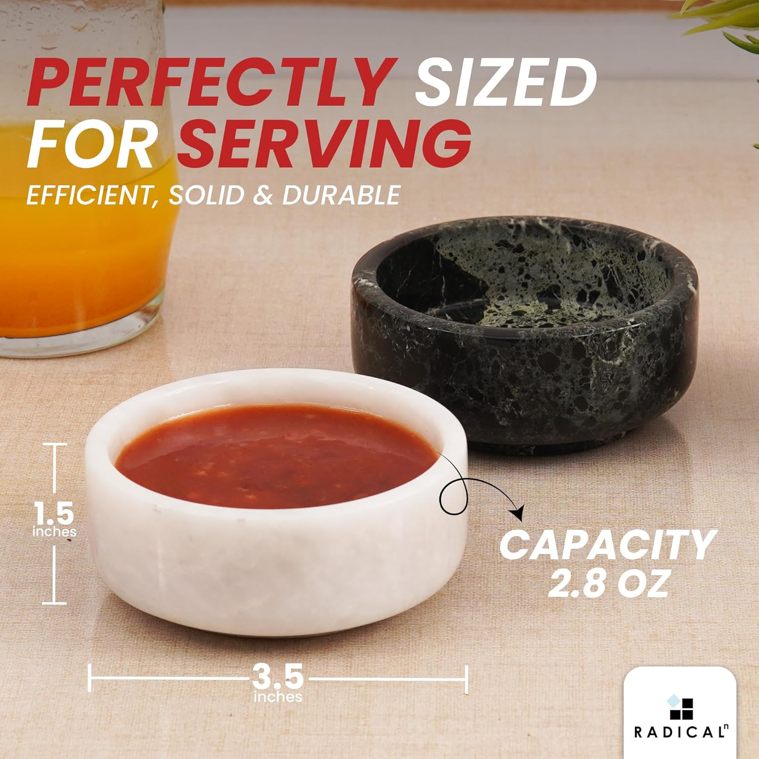 Radical Marble Sauce Cups 3.5'' Inches Black and White Handmade Ramekin Bowls and Dipping Cups, Ideal Soy Sauce Dish for Plates, Mini Sauce Bowls.
