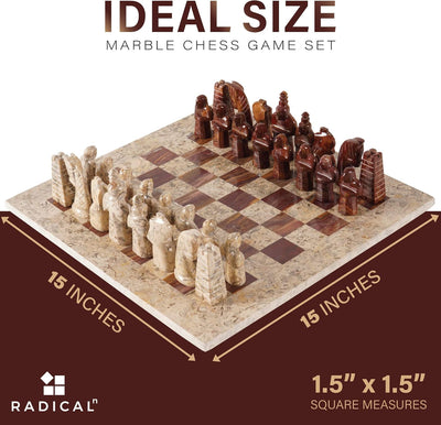 ► Exquisite handcrafted design – Experience royal elegance with this chess set, exuding an aura of grandeur and intrigue. It showcases the luxurious craftsmanship and richness that make it stand out. ► Secure packaging – Delivered in a sturdy, damage-proof package. Ensures the pieces stay protected during transportation and handling. Includes a complimentary storage box. ► Perfect for gameplay and display – Brings the thrill and strategic challenge of chess to life while enchanting viewers with its regal appearance and detailed artistry. ► Superior quality craftsmanship – The finely detailed marble and coral figurines, combined with a flawlessly smooth chessboard, reflect exceptional artistry and premium design. Elevate your collection with a visually stunning chess set that captivates all eyes. ► Board dimensions: 15in L X 15in W – Classic elegance renewed – Handcrafted chess pieces boast impressive size and detail, amplifying their noble allure with ornate figurines.