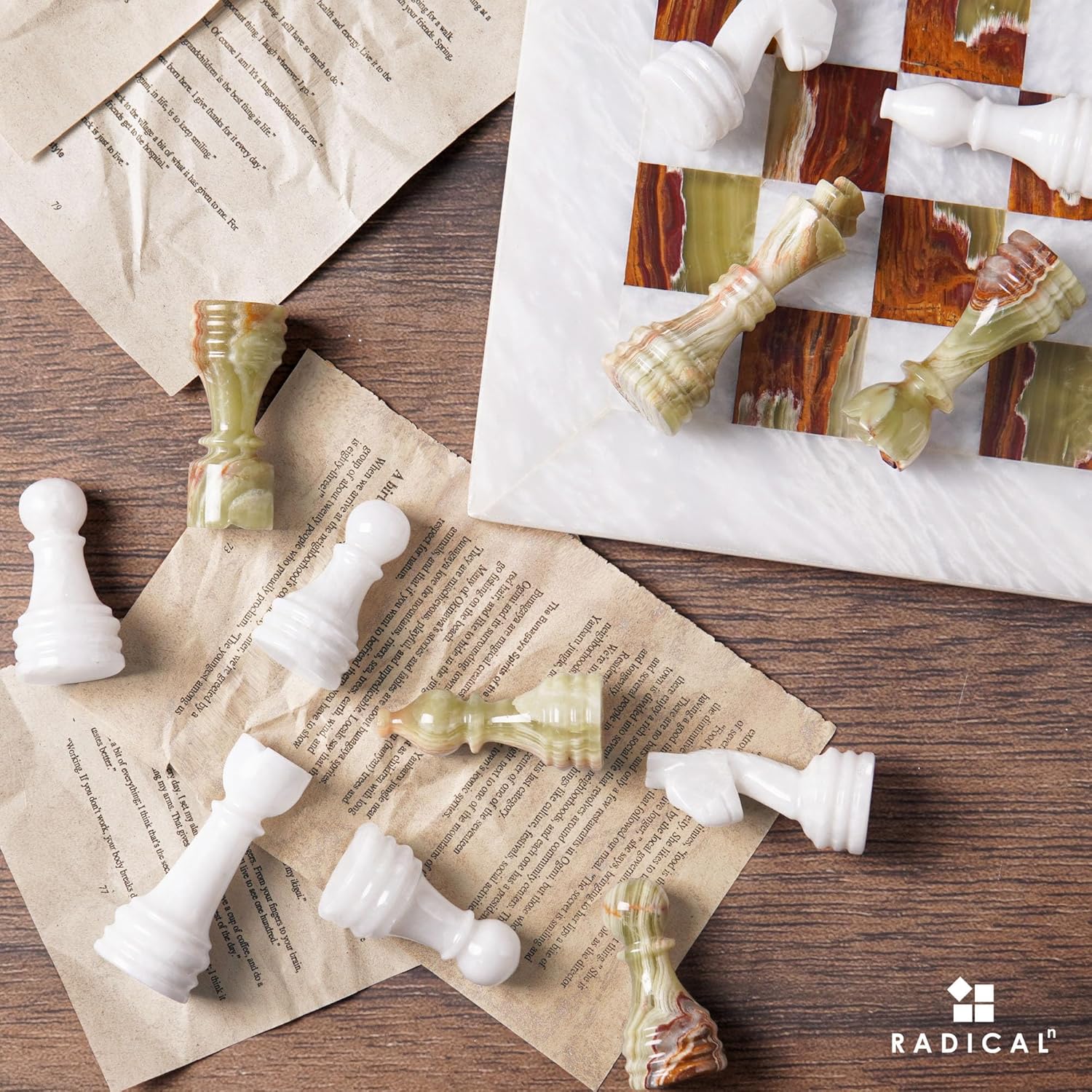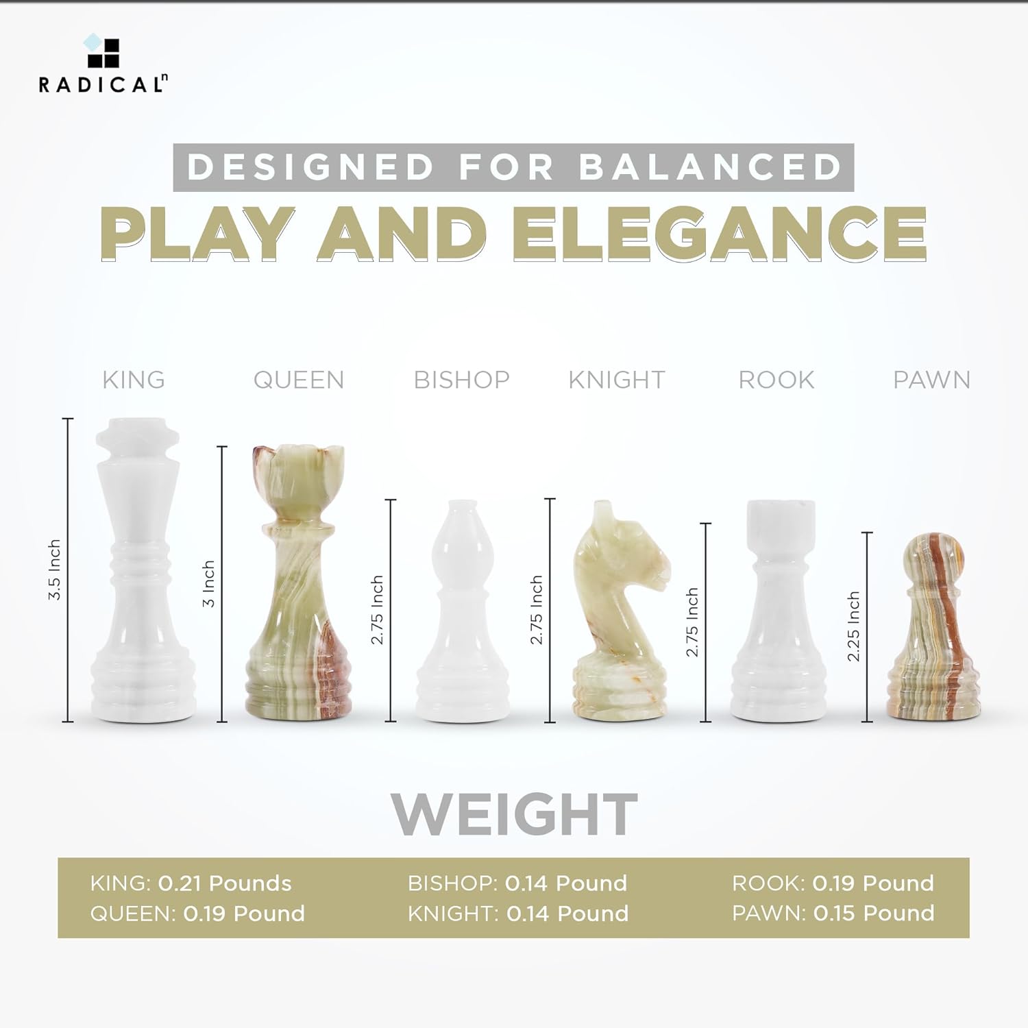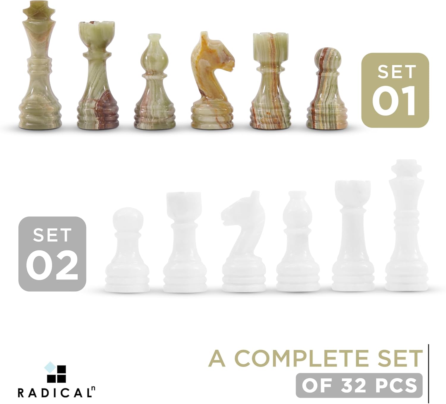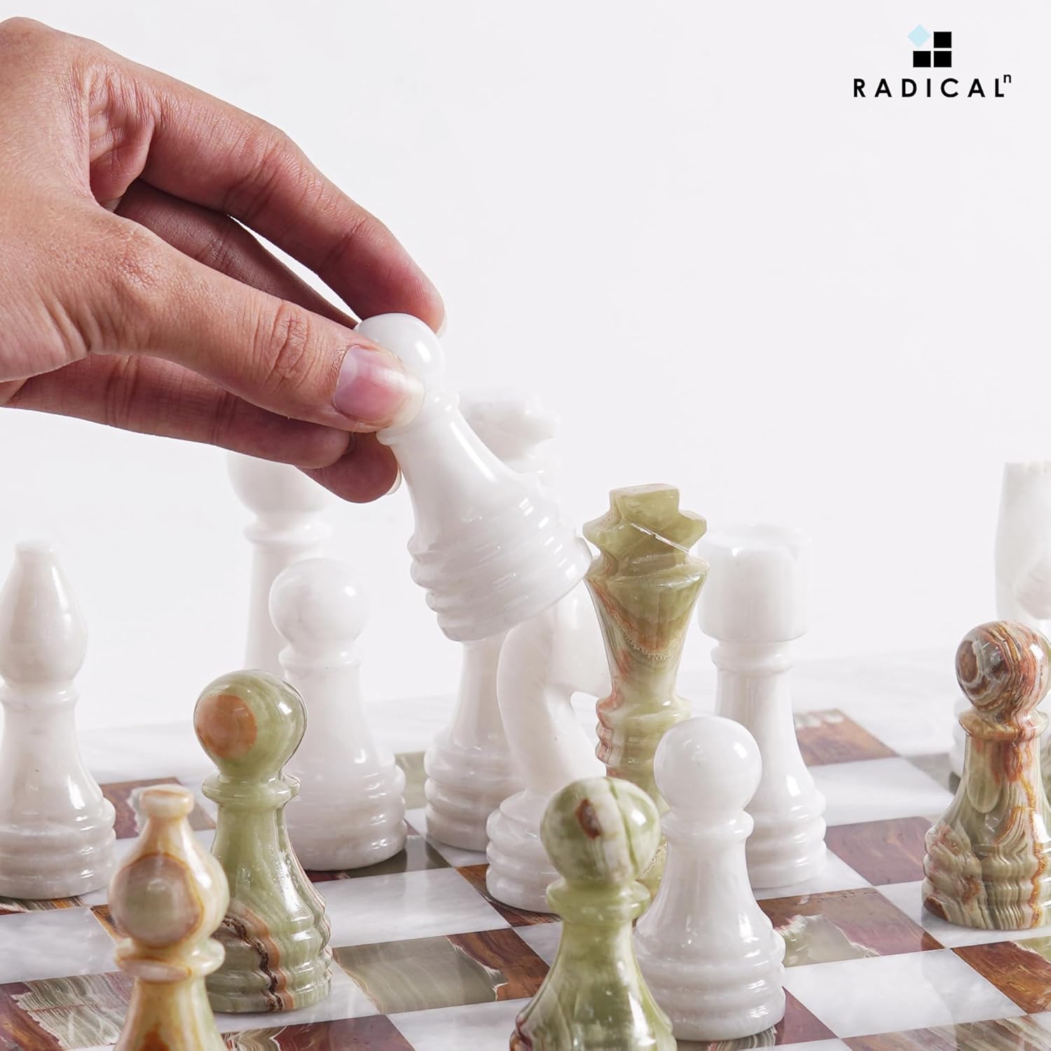 Radicaln Marble Chess Figures 3.5'' Inches White and Green Handmade Marble Chess Pieces for Board Game Chess Figures & Chess Board Travel Set Chess Figure