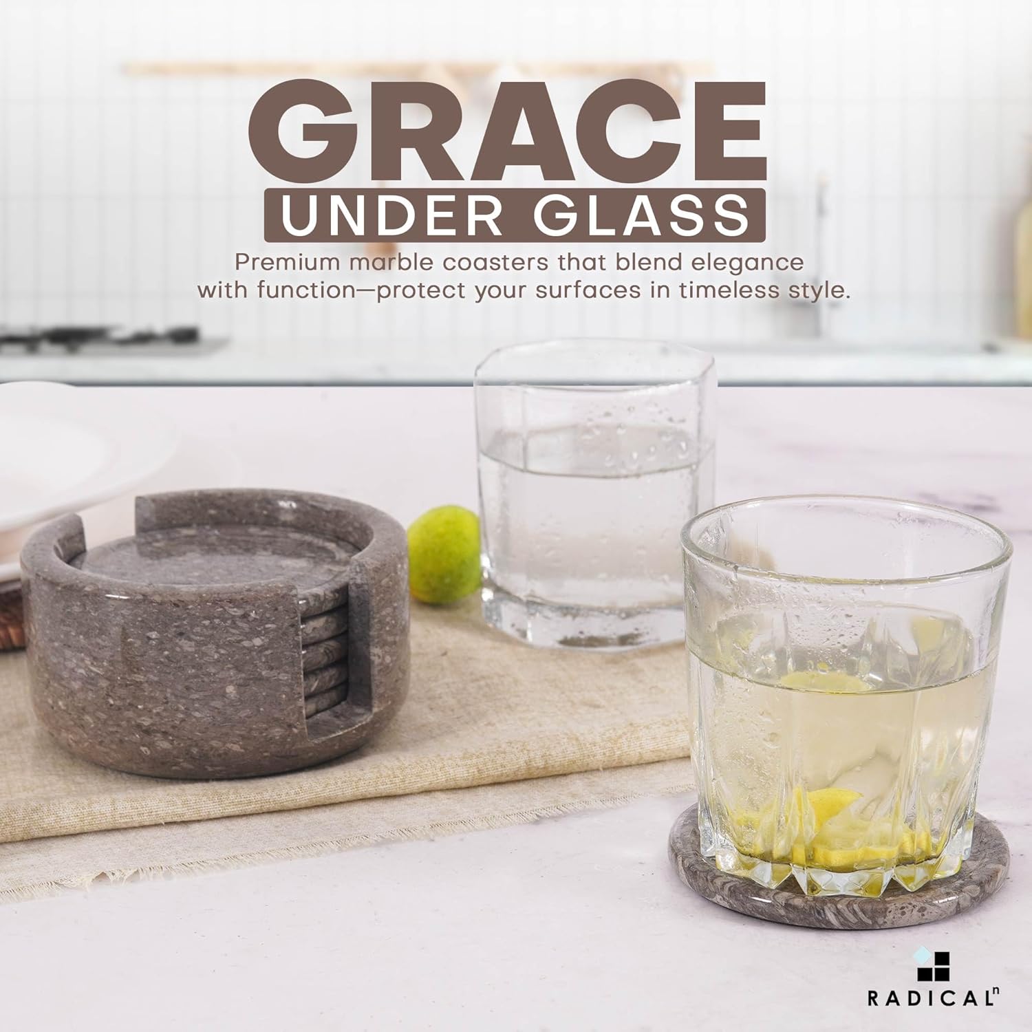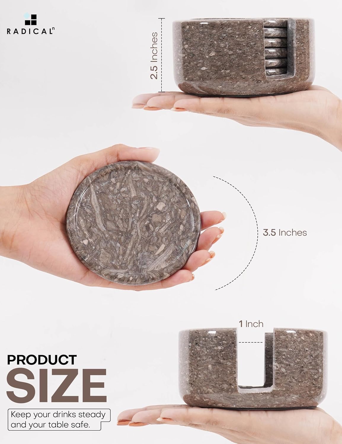 Radicaln Marble Coaster Set 3.5" Inches Oceanic Round Handmade Coaster Set of 6 for Home Décor Cup Holder Dining Table Centerpiece Décor Coaster for Drink
