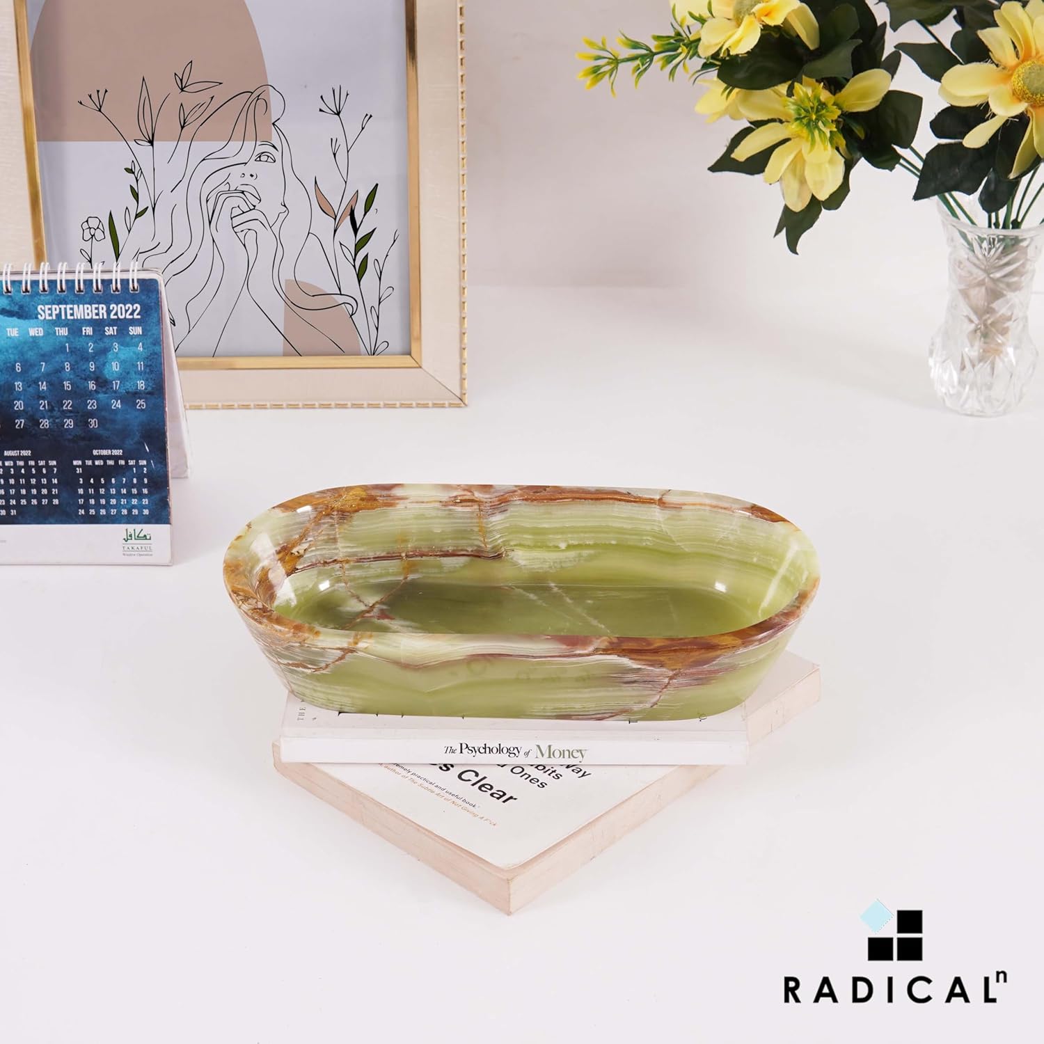 Radicaln Marble Dough Bowl 10" Inches Green Handmade Key Bowl For Dining Table Décor, Ideal Decorative Bowl, Entryway Décor & Farmhouse Décor