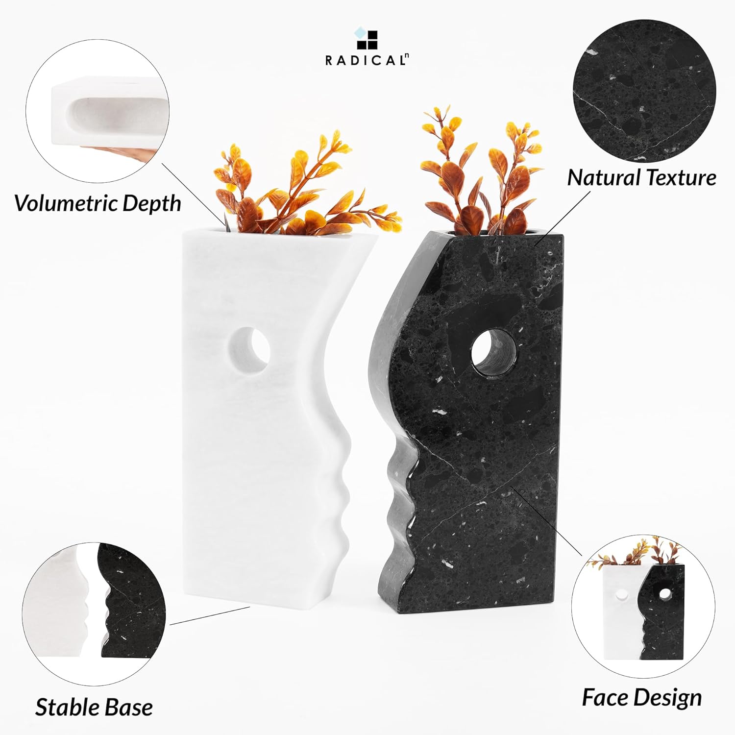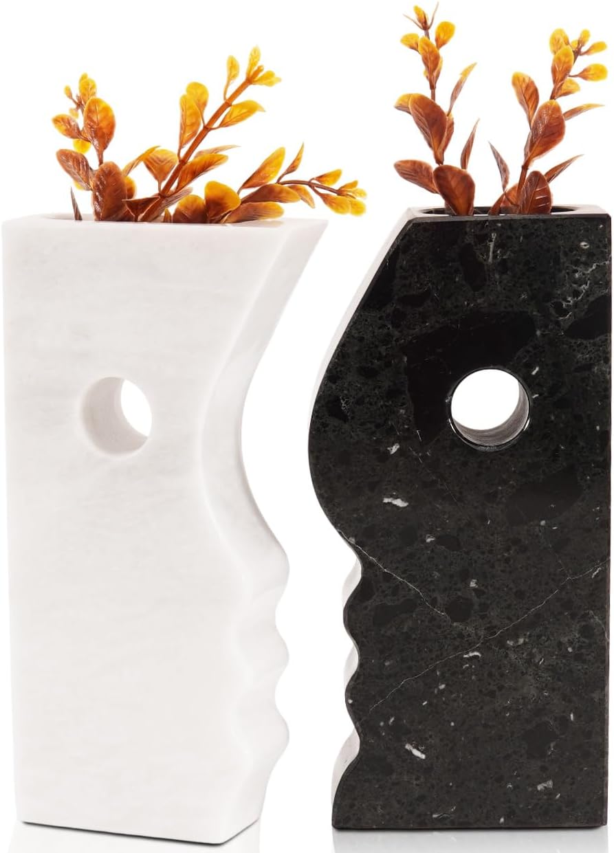 Radicaln Marble Face Vase 8" Inches Black & White Handmade Small Vases for Flowers White Vases Home Décor Ideal Flower Vase for Bouqet