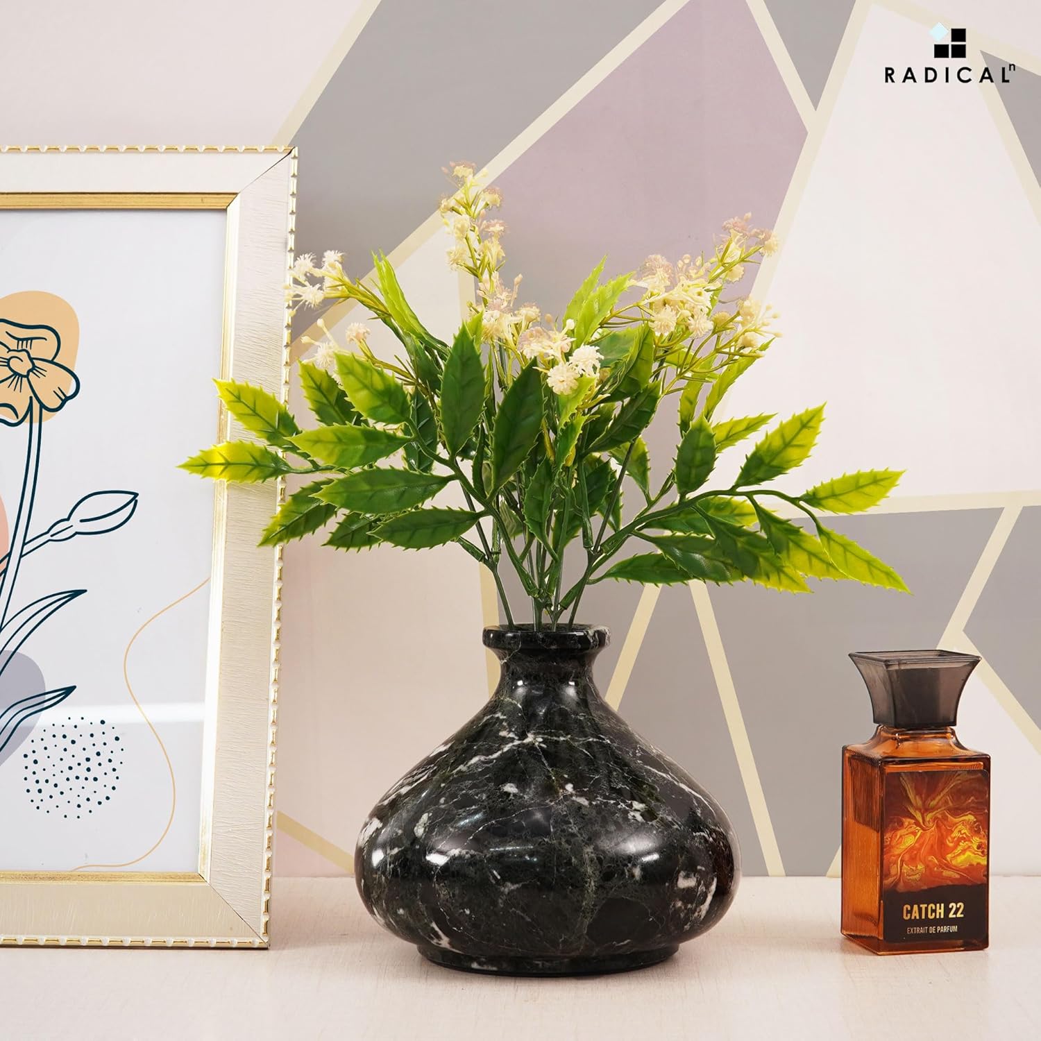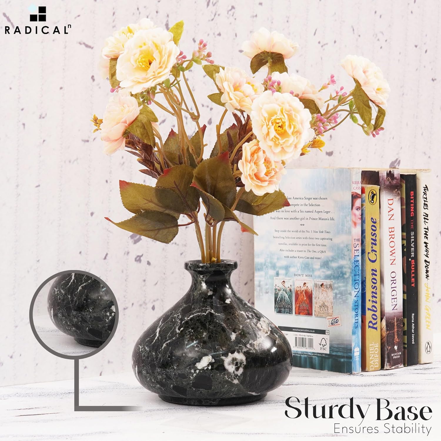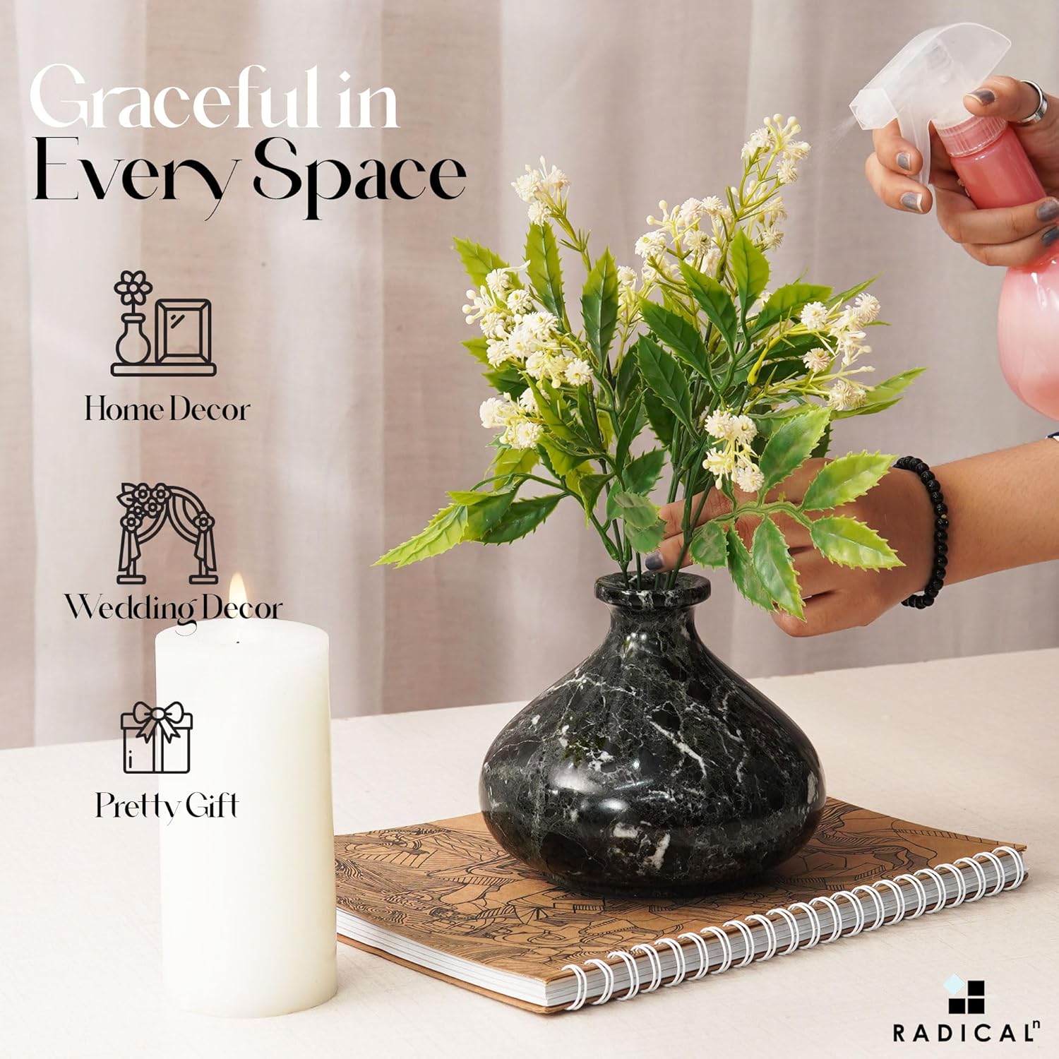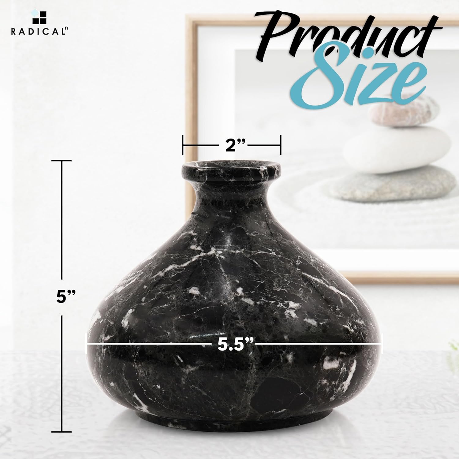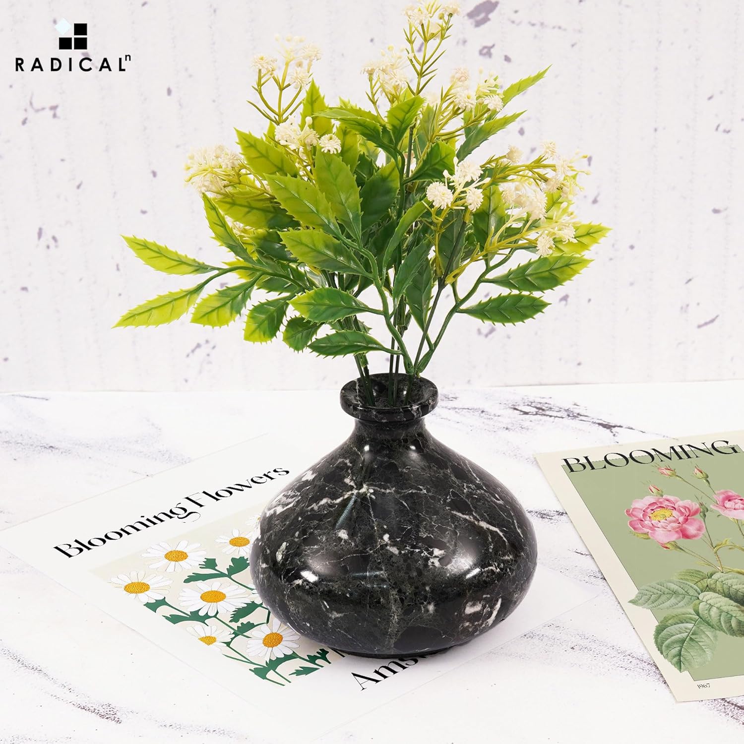 Radicaln Marble Flower Vase 5" Inches Black Handmade Vases for Home Decor, Perfect for Fresh Flowers, Garden Decor, Flower Pots, and Mother's Day Decorations