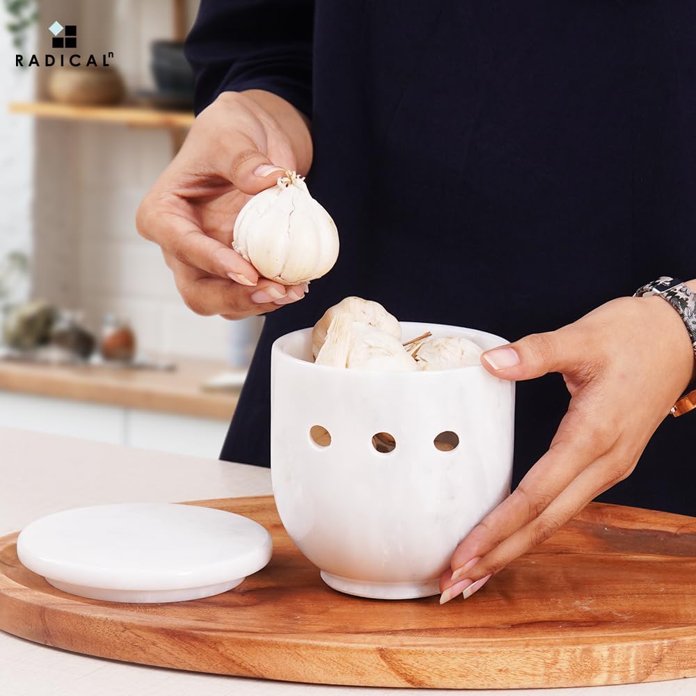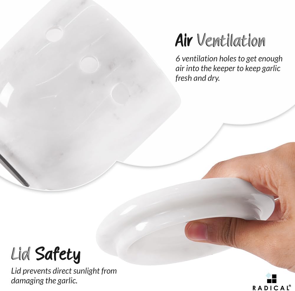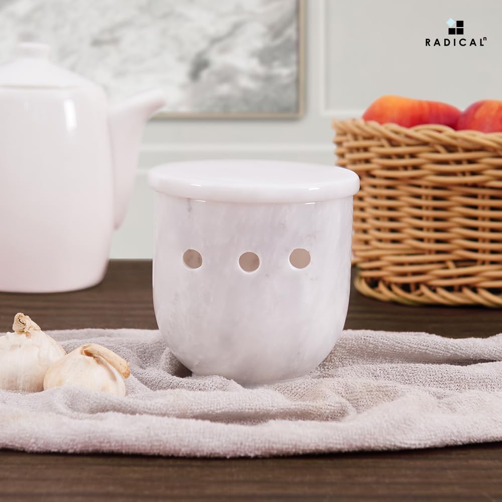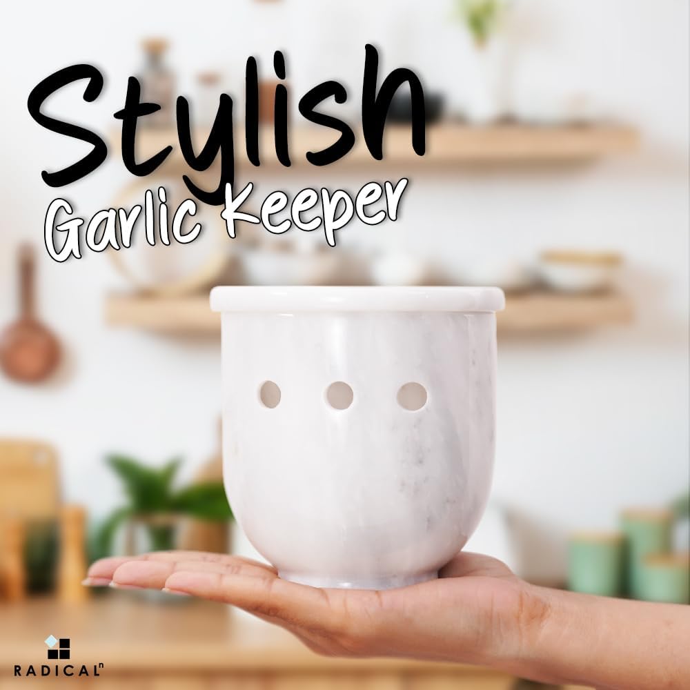Radicaln Marble Garlic Keeper White 4.5" Inches Handmade Garlic Storage For Counter Ideal Garlic Container, Garlic Jar & Onion and Garlic Storage, Garlic Saver