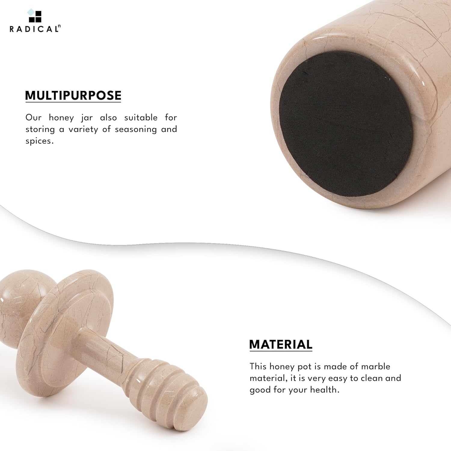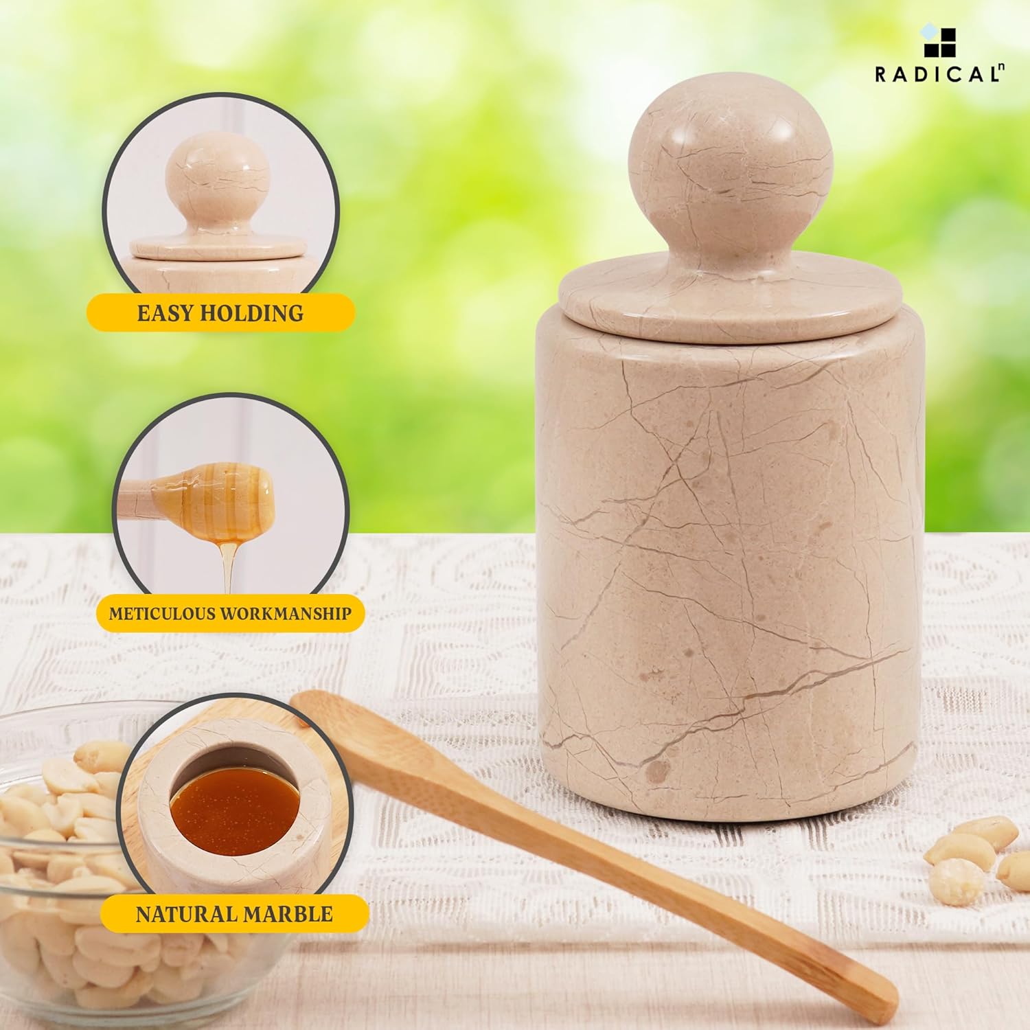 🍯[WHAT IS INCLUDED]🍯 - 1 x Marble Honey Jar With Dipper Lid. Comes Along With RADICALn Branded Secure Packaging.