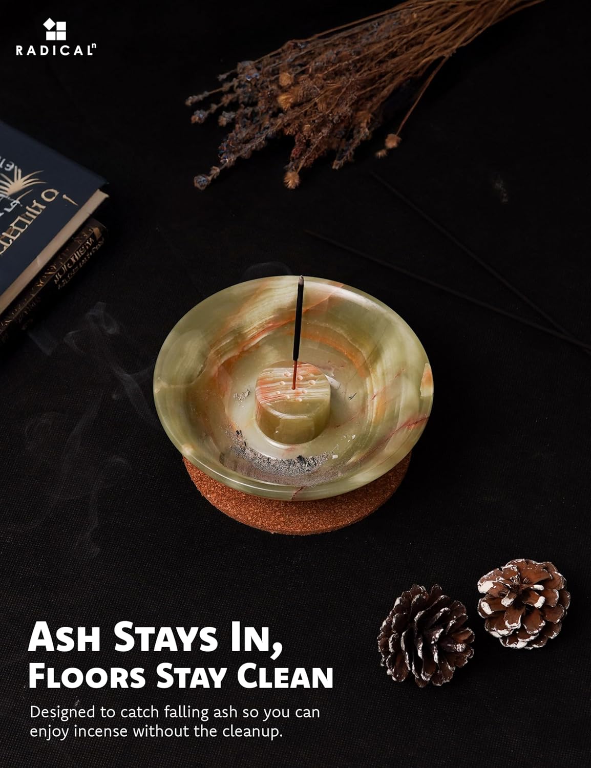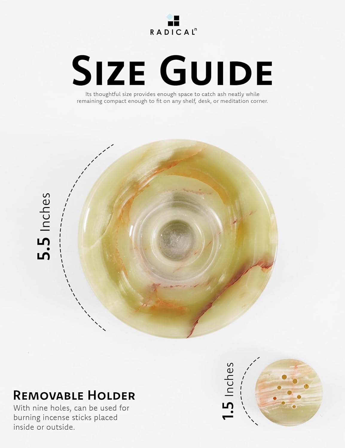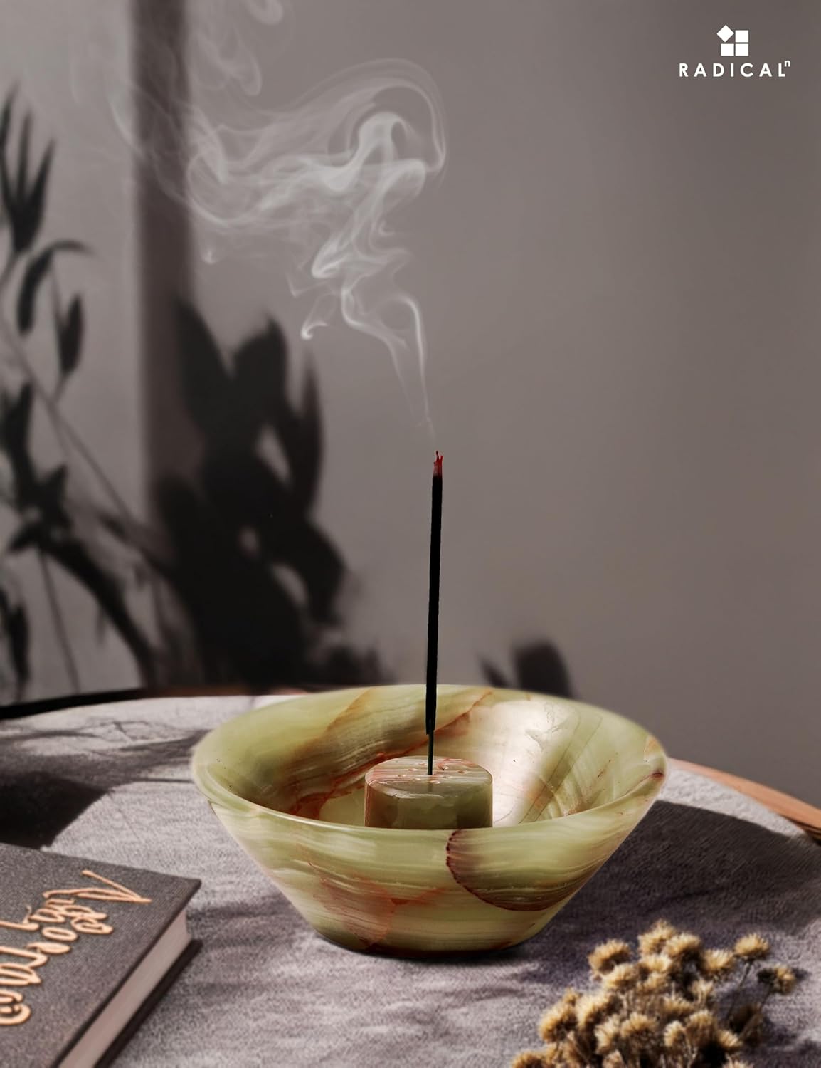 Radicaln Marble Incense Holder 14 cm Green Onyx Handmade – Palo Santo & Citronella Incense Stick Burner for Room, Office & Home Aromatherapy