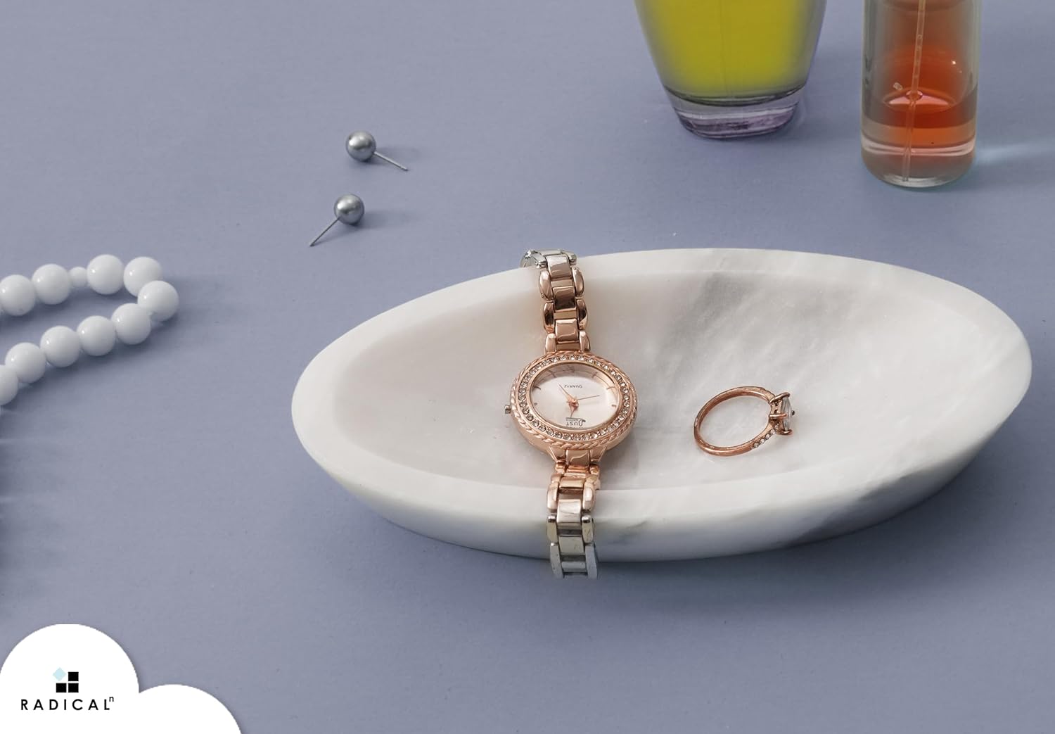 Radicaln Marble Jewelry Tray White 18 cm Handmade - Aesthetic Room Decor -Jewelry Holder & Organizer - Trinket Dish Tray for Earrings & Rings Display