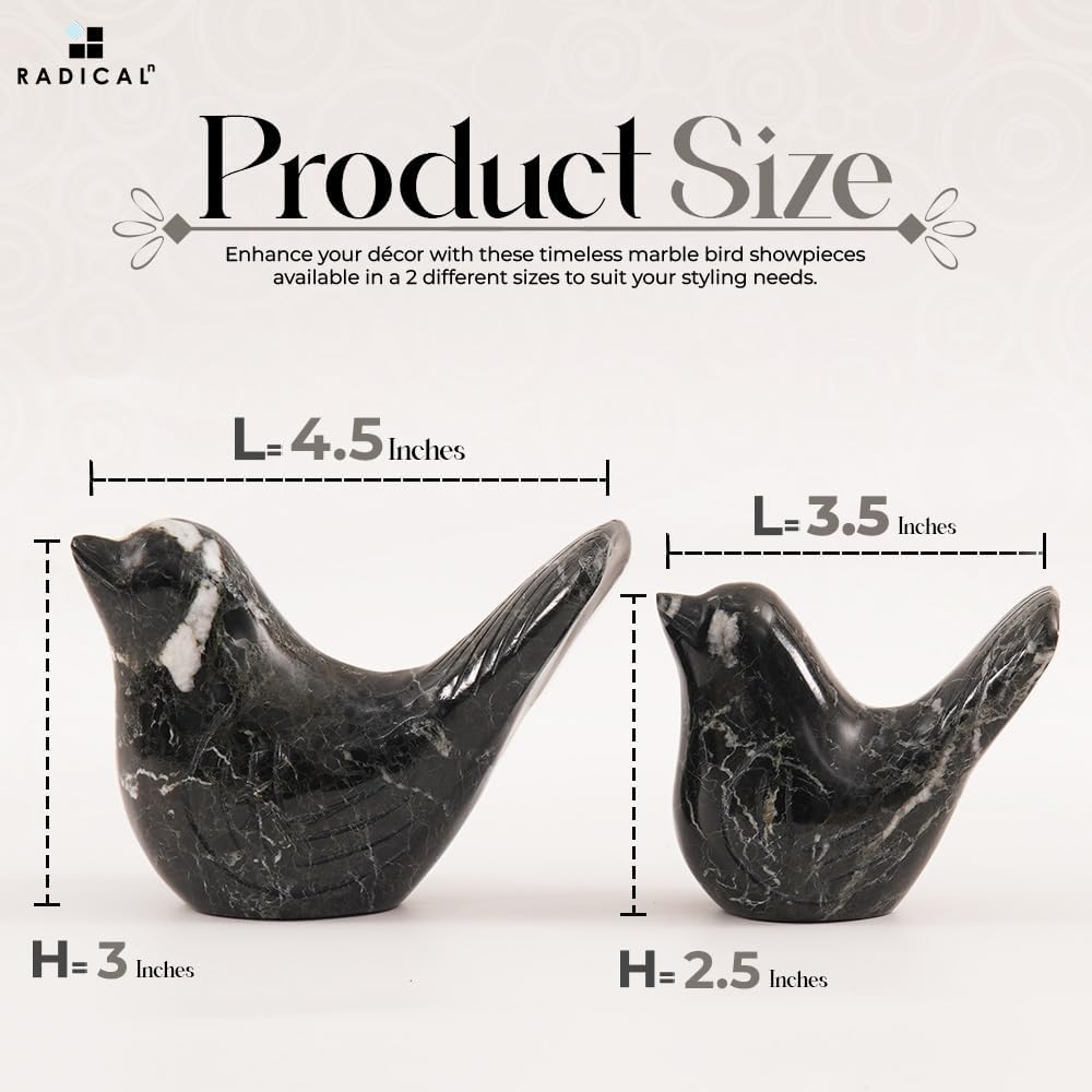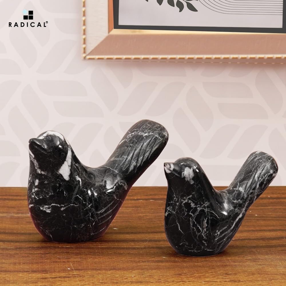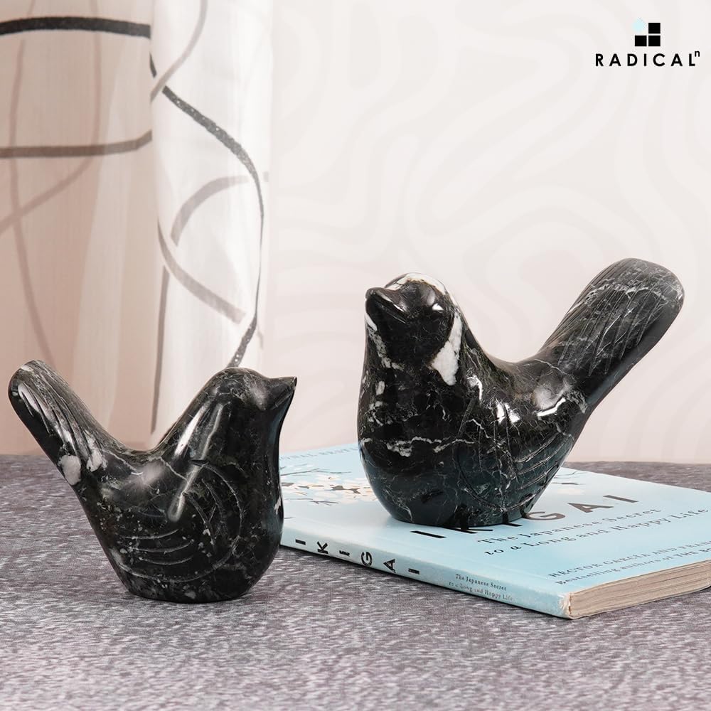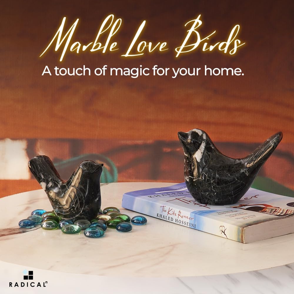 Radicaln Marble Love Bird Statue Black 4.5"" Inches Handmade Figurine For Room Décor - Modern Home Décor With Big Love Bird, Garden Décor & Bookshelf Décor, LB-Setof2