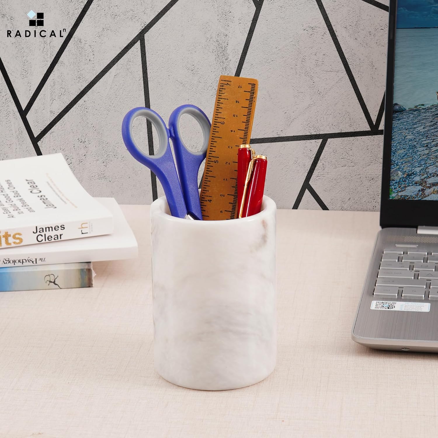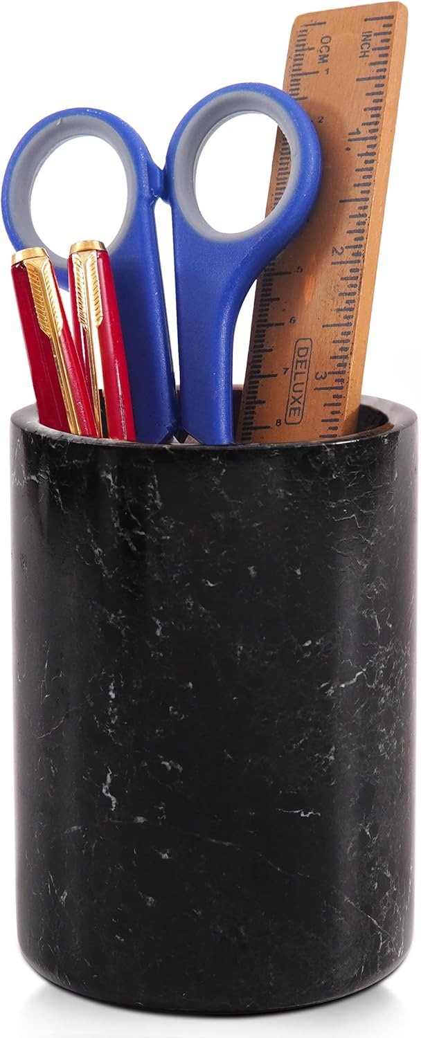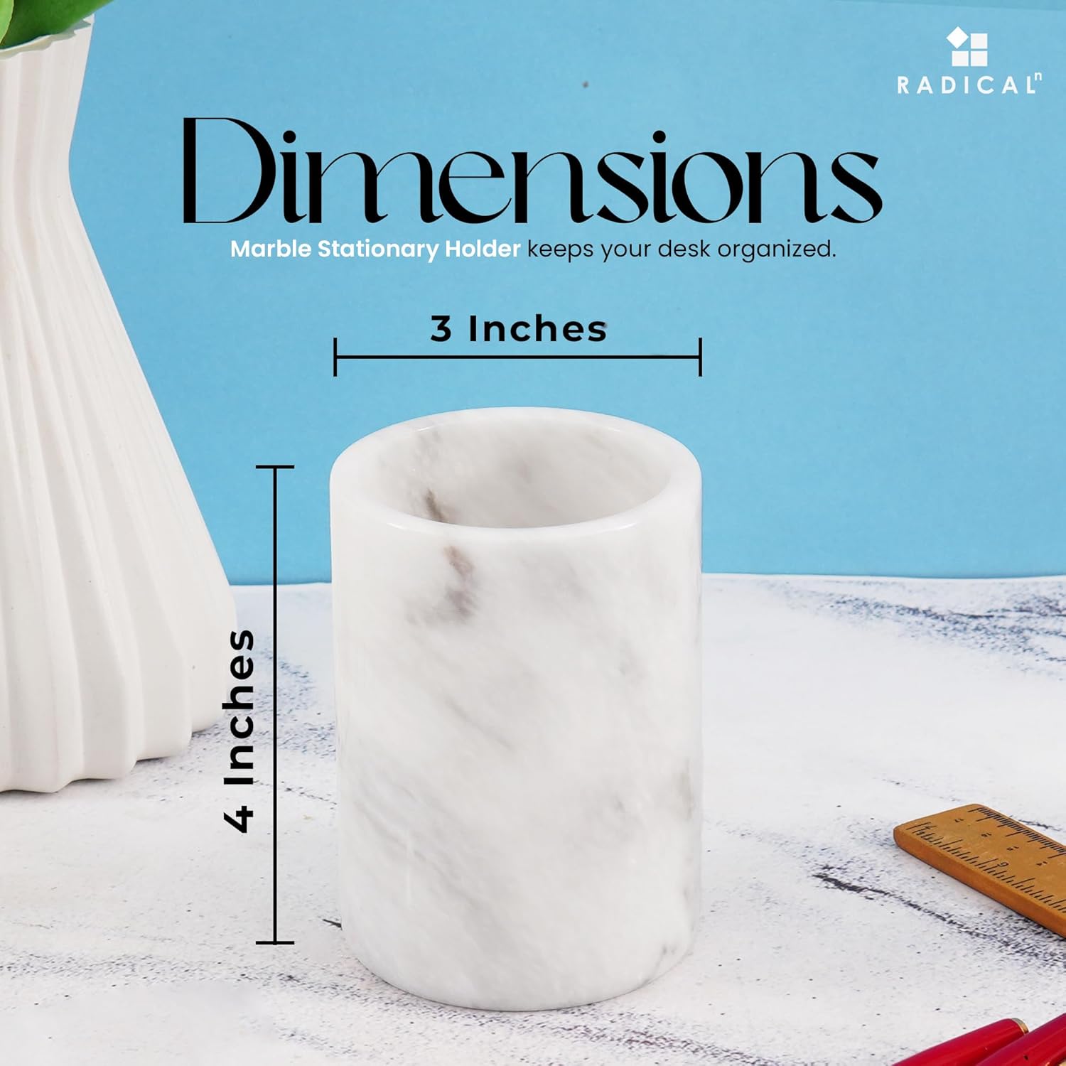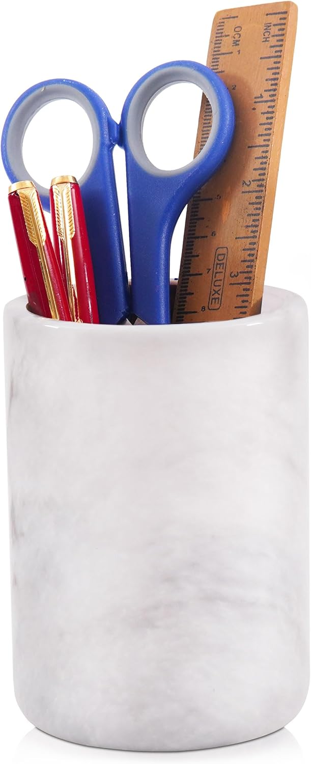 Radicaln Marble Pen Holder White 4" Inches Handmade Drawer Organizer For Home Office Essentials - Desk Accessories & Workspace Organizers, Pencil Cup For Stationary Supplies
