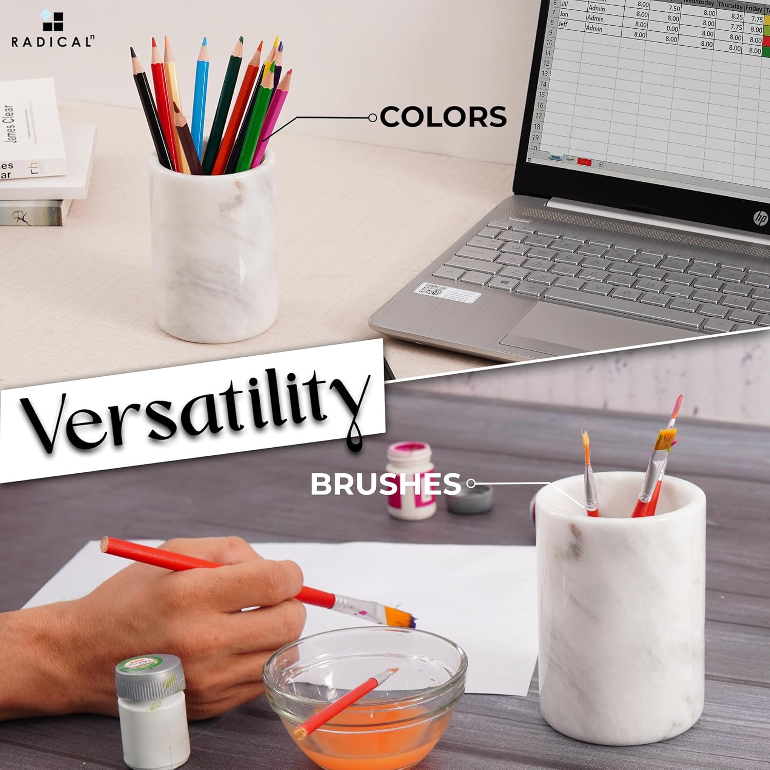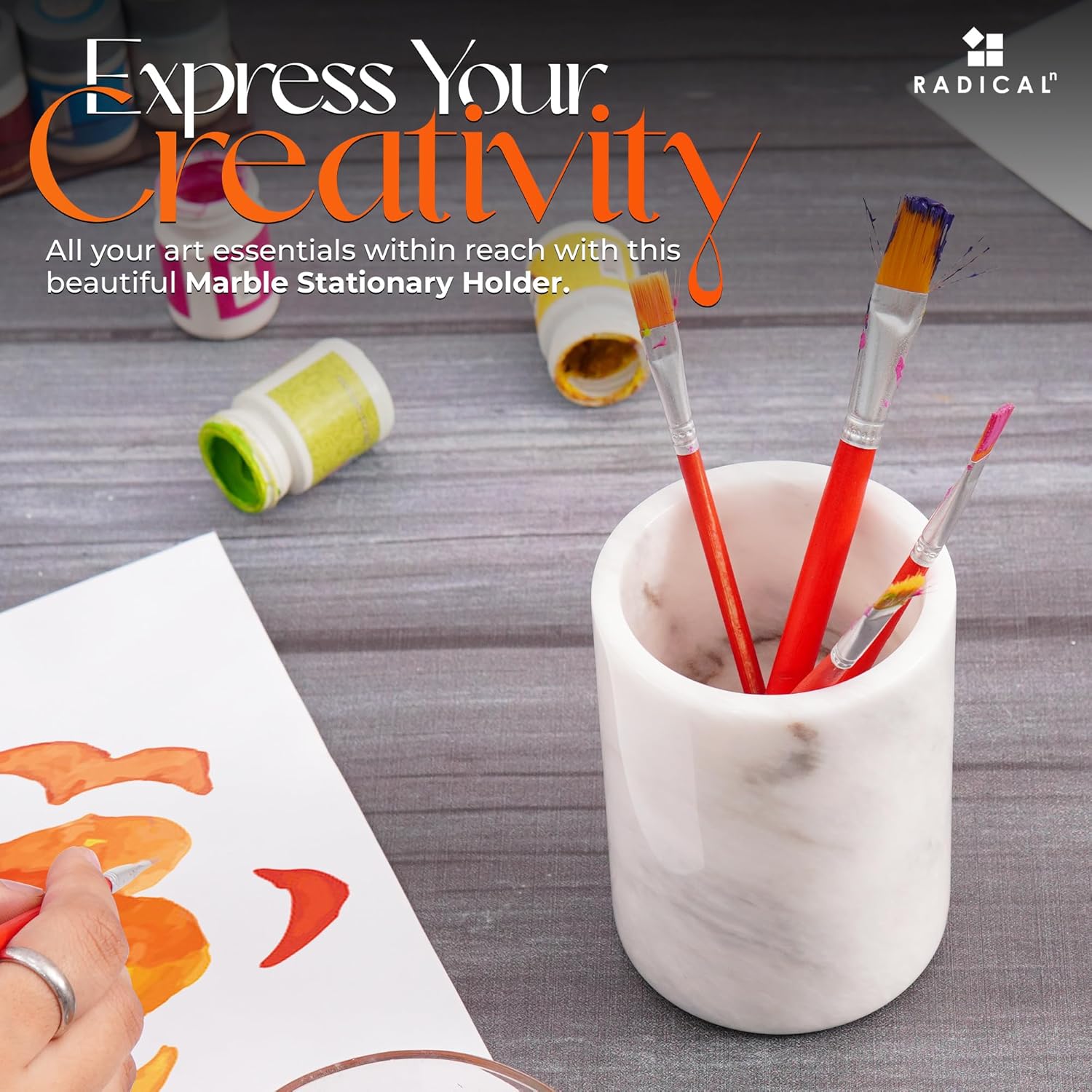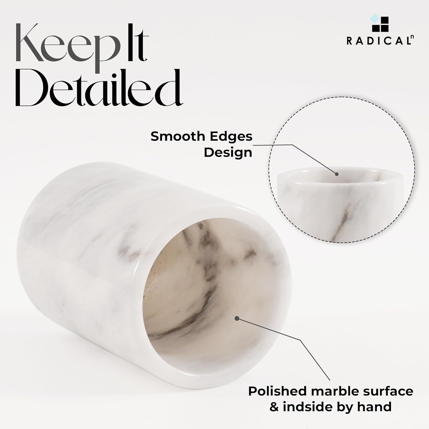 Radicaln Marble Pen Holder White 4" Inches Handmade Drawer Organizer For Home Office Essentials - Desk Accessories & Workspace Organizers, Pencil Cup For Stationary Supplies