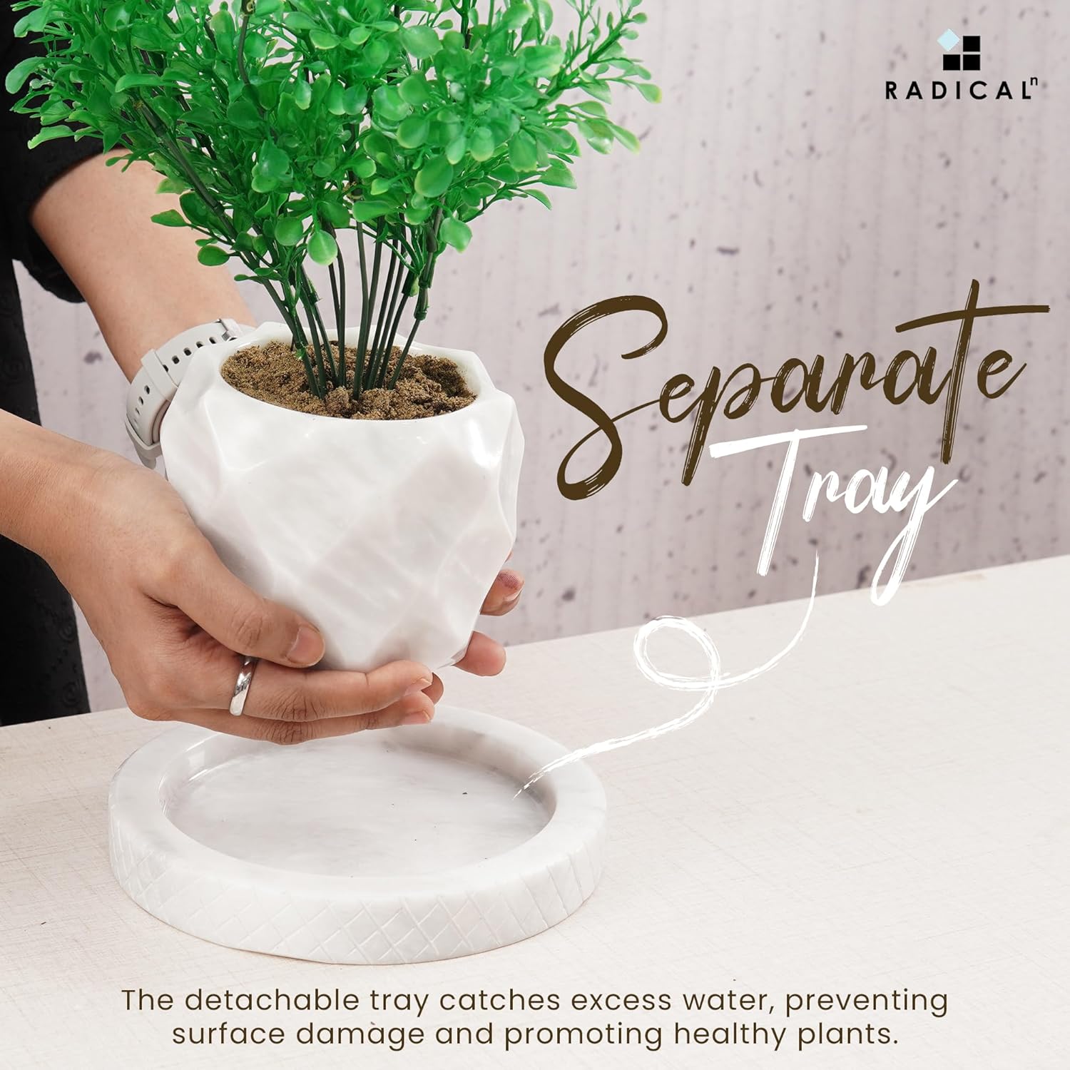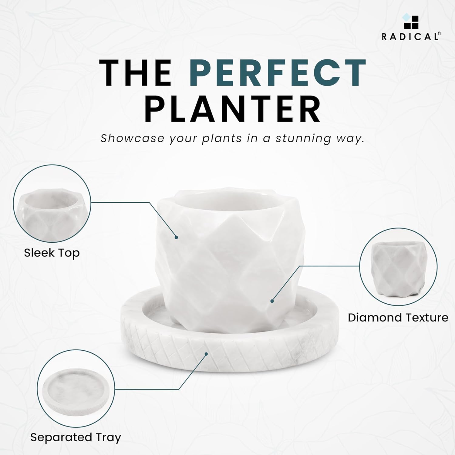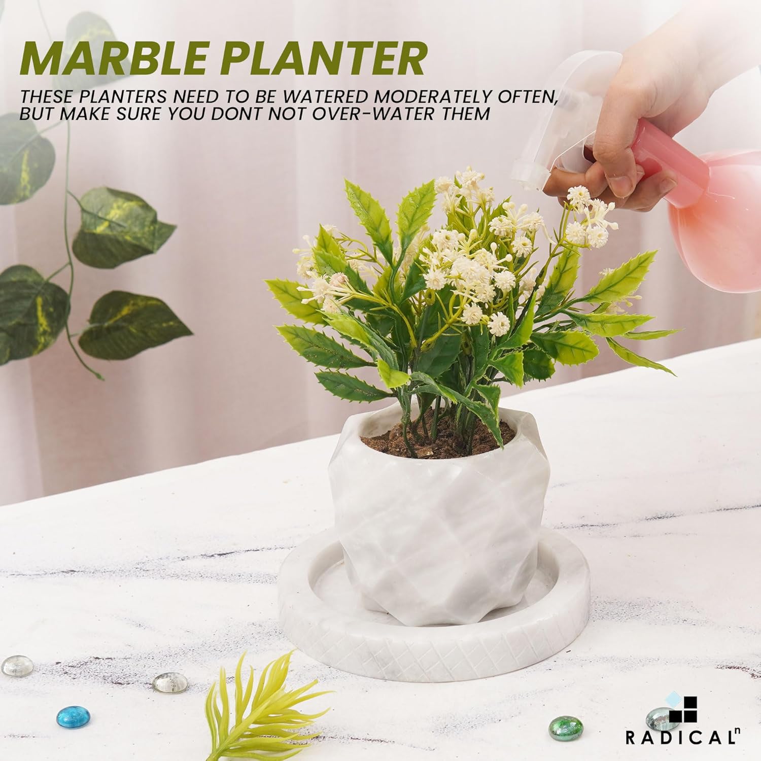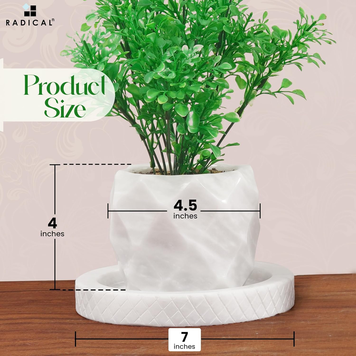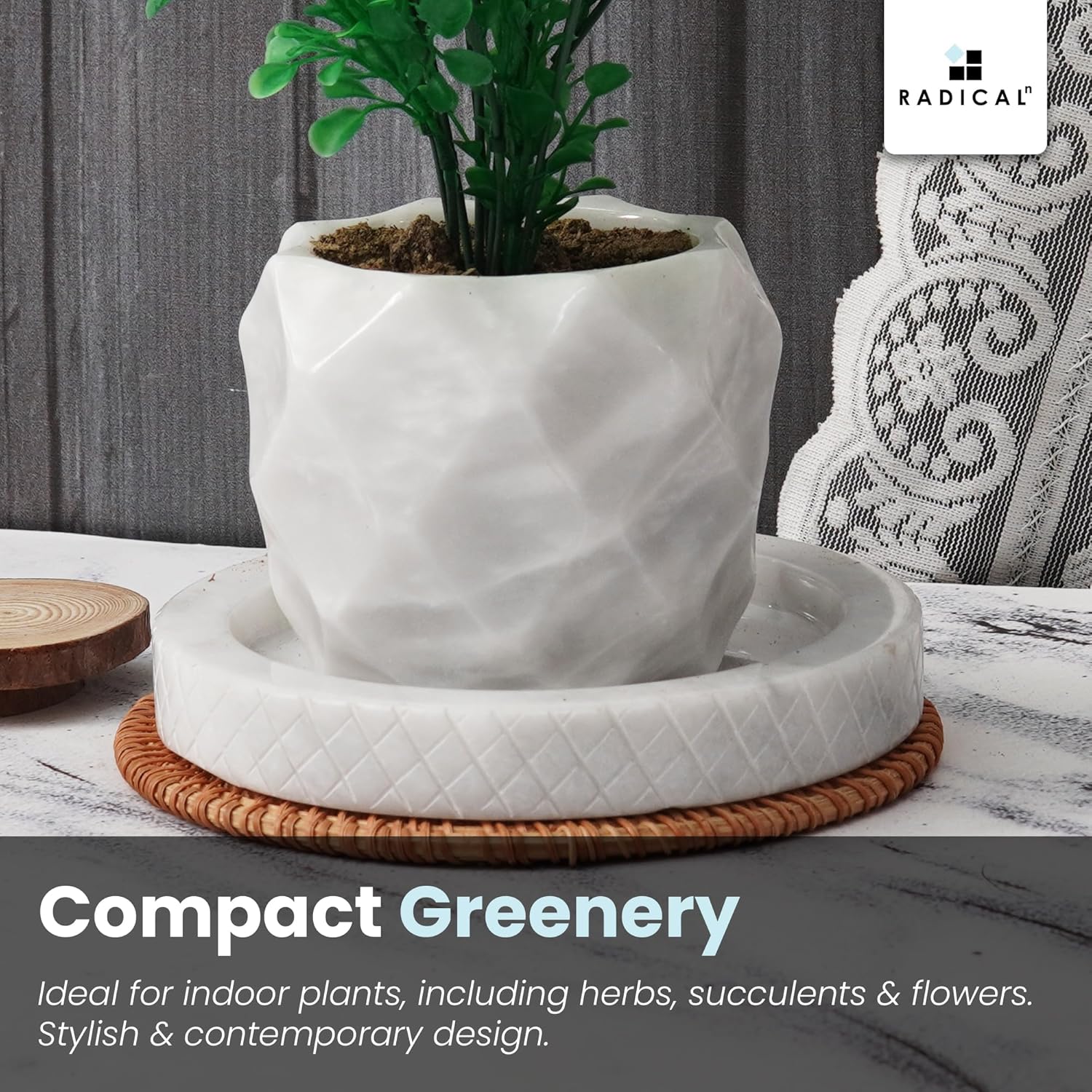 Radicaln Marble Planter 4" Inches White Handmade Small Indoor Plant Pots Ideal Outdoor Planters, Plant Containers & Garden Planter Modern Decorative Planter