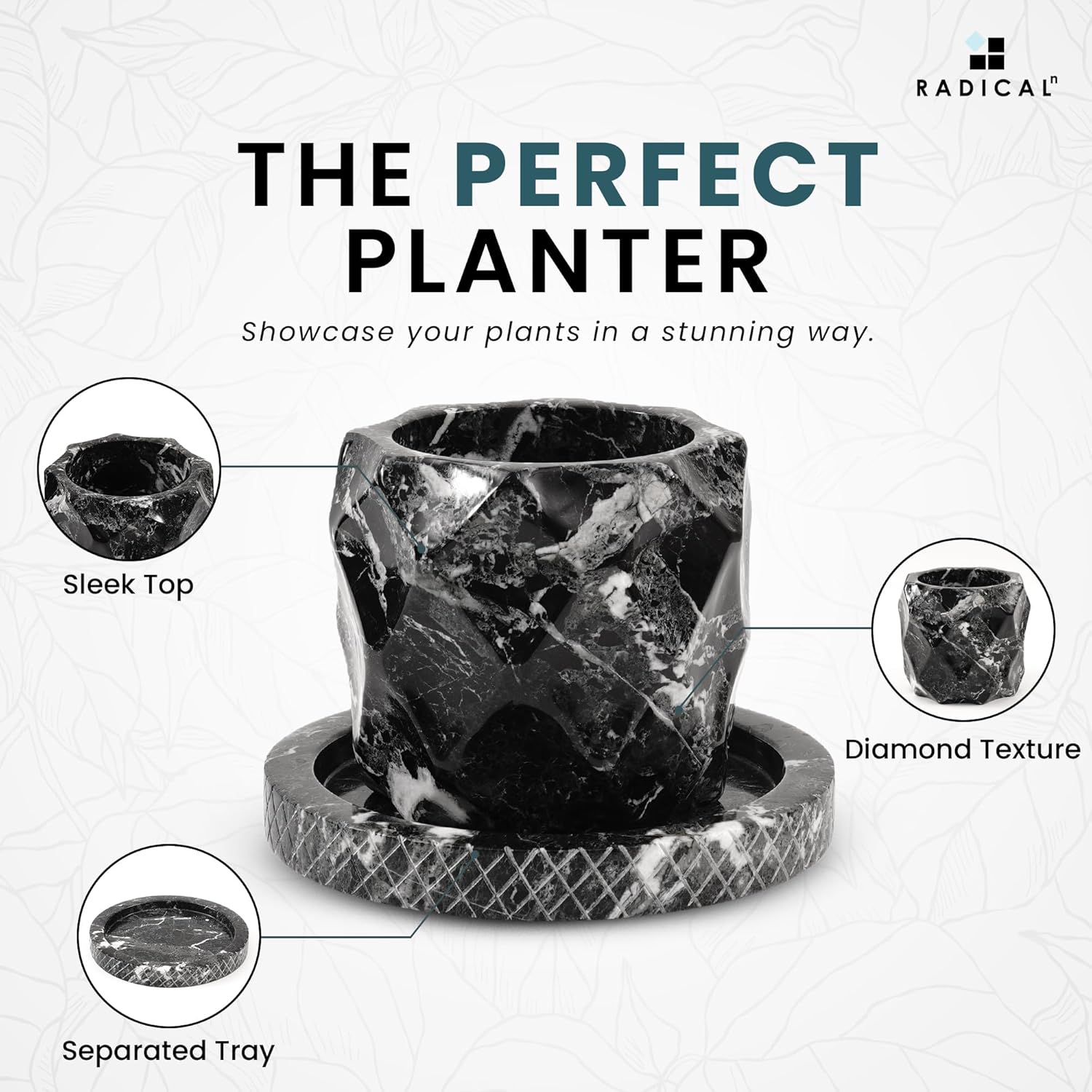 What is Included - 1 x Marble Planter & 1 x Saucer. Comes Along With RADICALn Branded Secure Packaging.