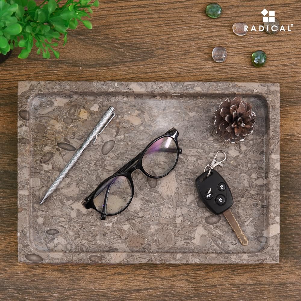 Radicaln Marble Rectangle Tray 12" Inches Oceanic Handmade Coffee Table Trays for Kitchen Organization, Serving & Fruit Tray, Charcuterie for Turkey Platter