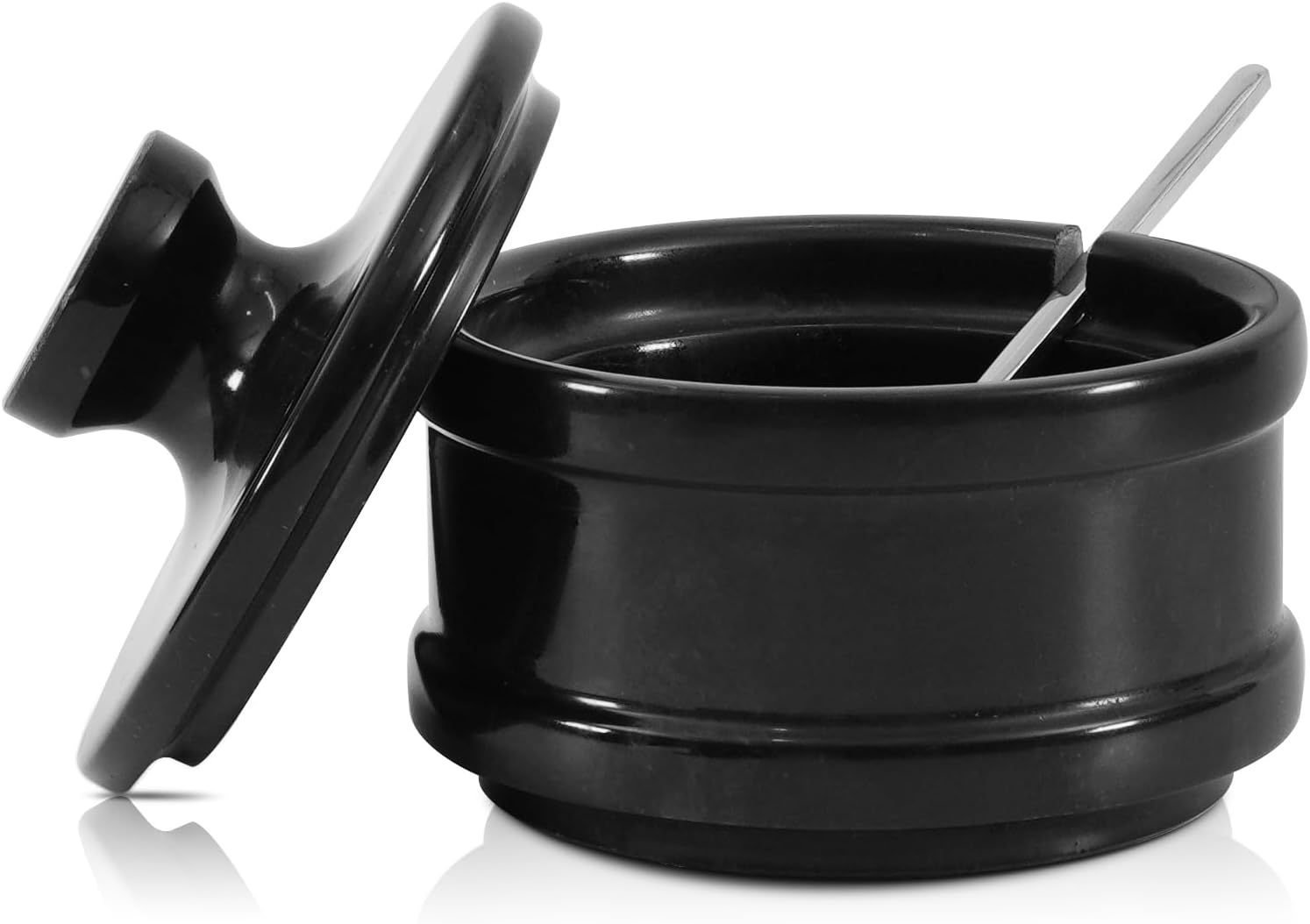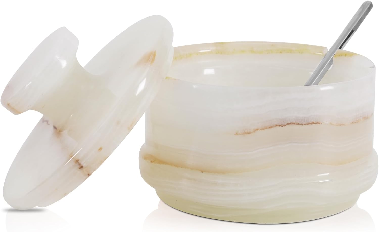 Radicaln Marble Salt Cellar with Lid and Spoon 9 cm White – Handmade Salt Container & Spice Jar for Kitchen Storage - Seasoning Container for Countertop