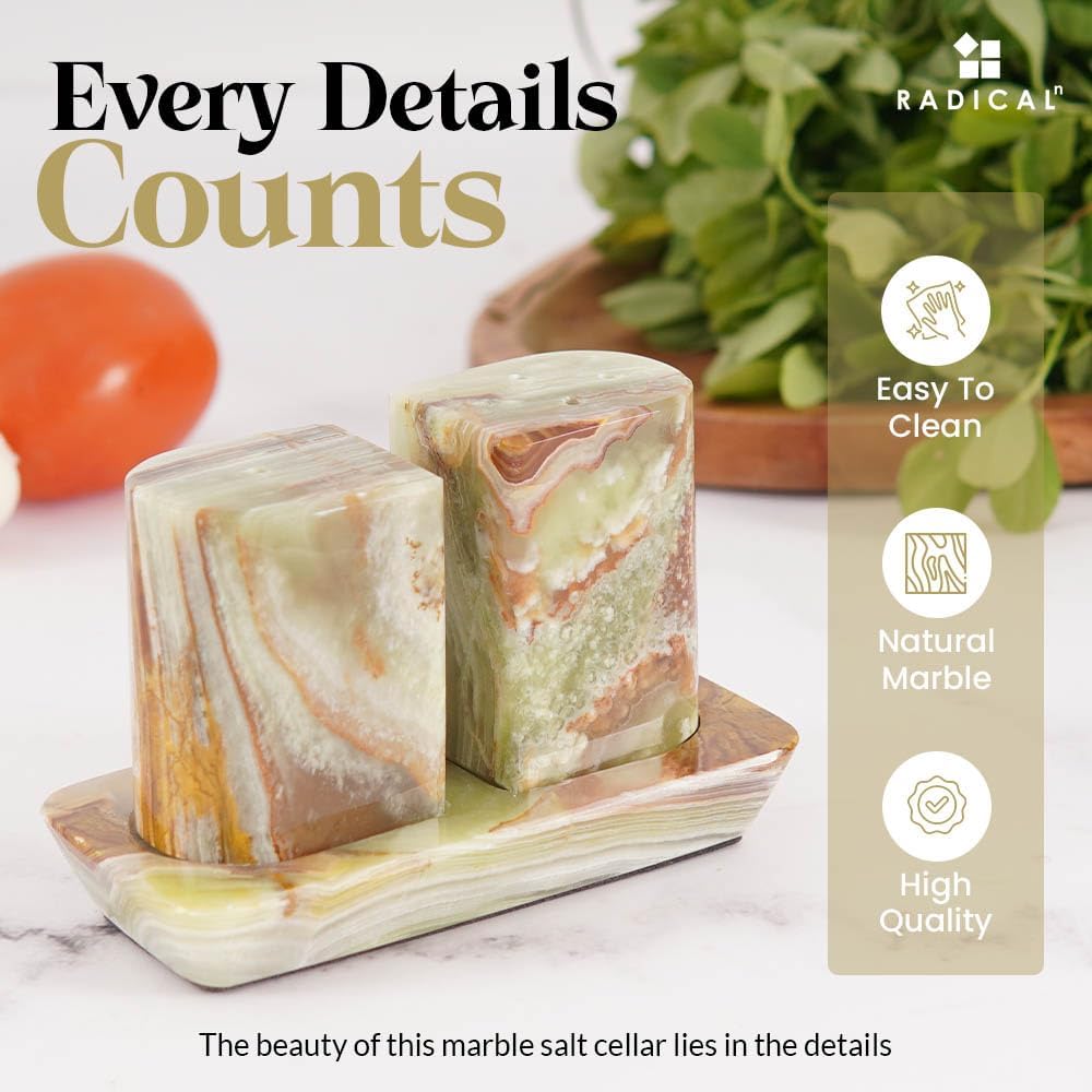 Premium Marble Salt and Pepper Set - Crafted from high-quality marble, this salt and pepper shakers set enhances your dining table and kitchen decor with natural elegance and durability.