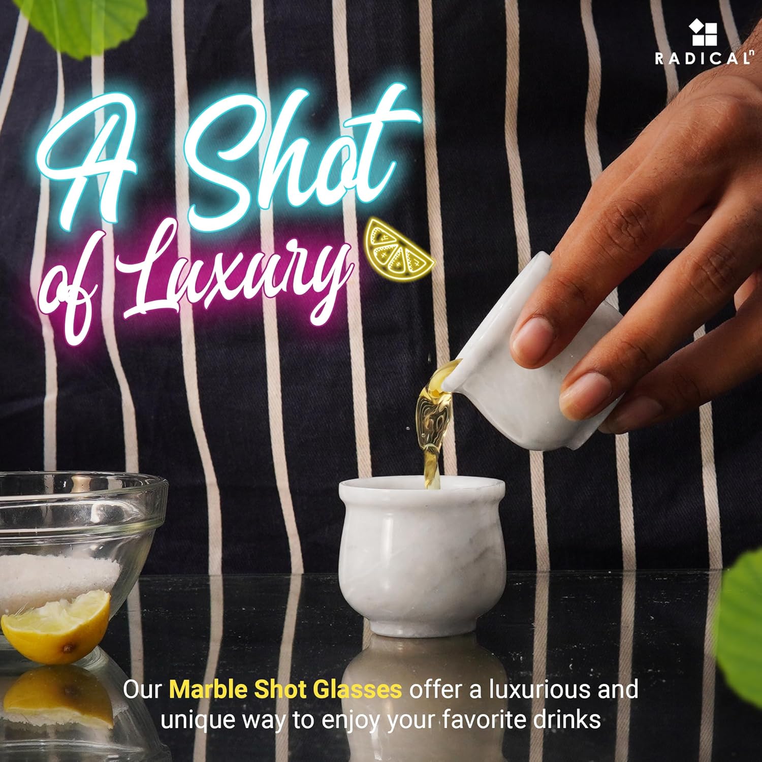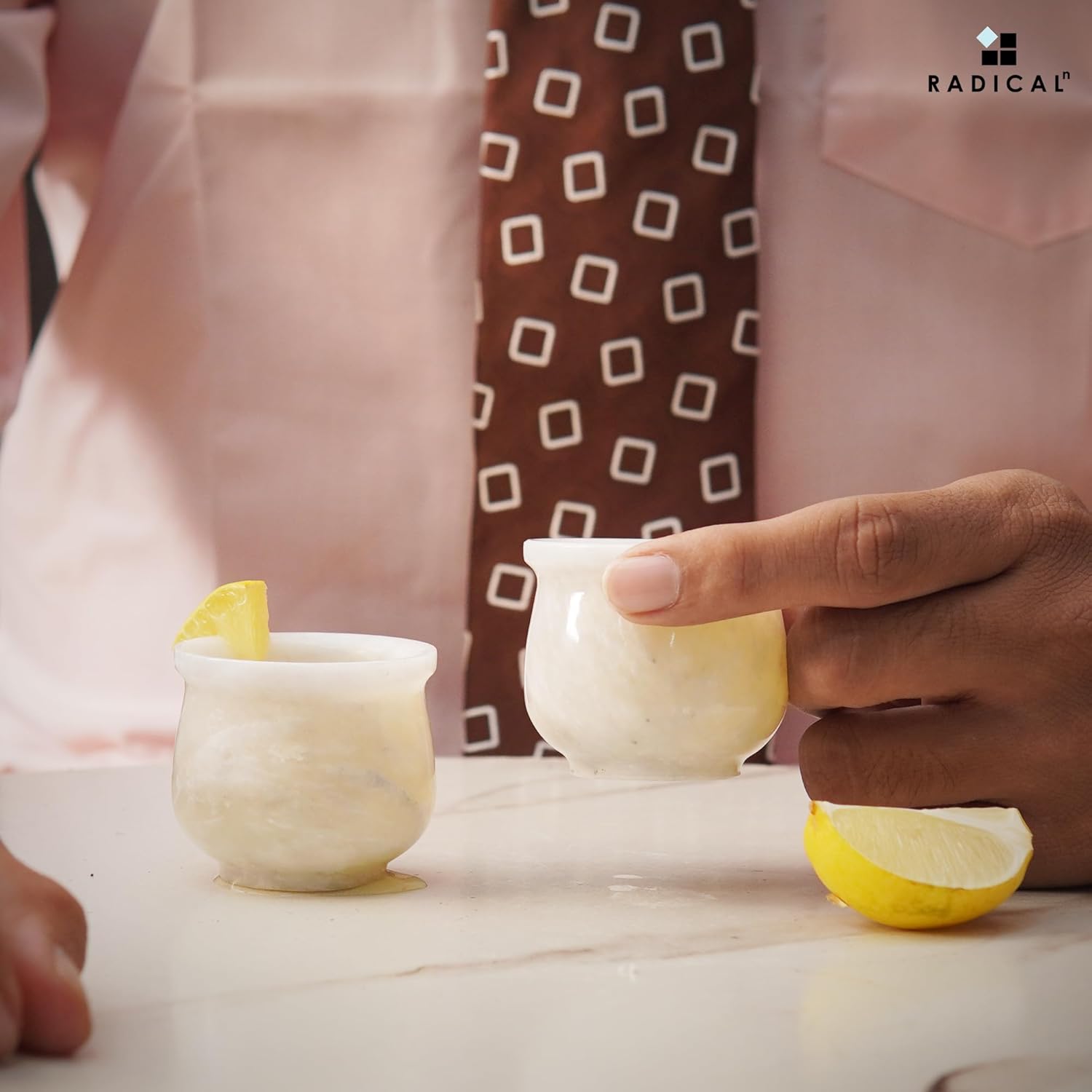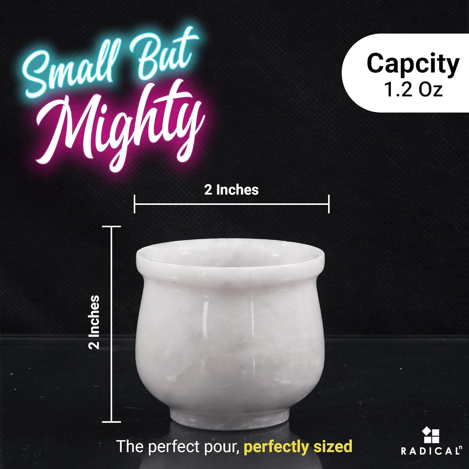 Radicaln Marble Shot Glasses White 2" Inches Handmade Small Whiskey Glasses for Bar Set - Tequila Glasses Set of 2 for Drinking Wine, Beer & Vodka, Shot Glasses Set