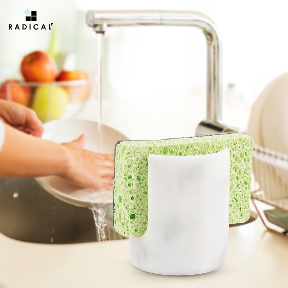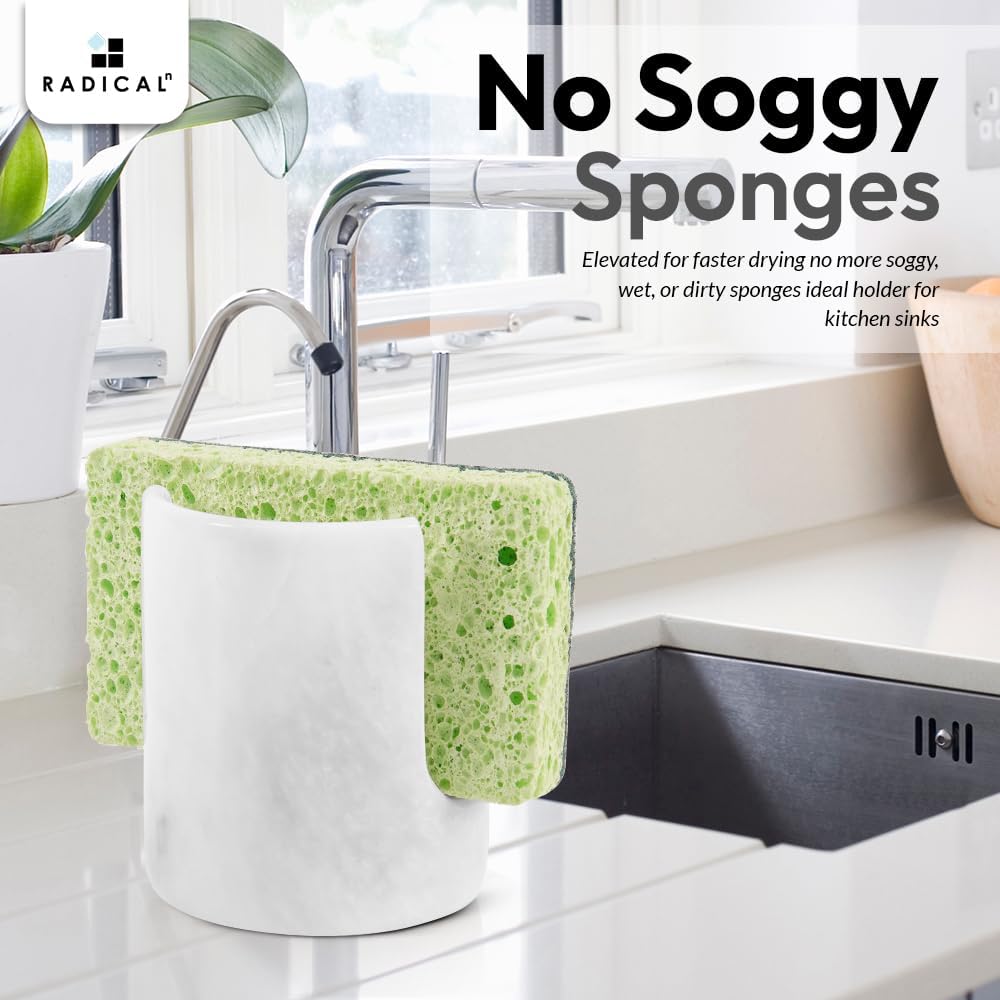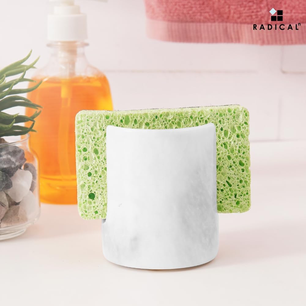 Radicaln Marble Sponge Holder White 3.5" Inches Handmade Kitchen Sponge Holder for Home Decor - Kitchen Counter Décor with Dish Sponge Holders