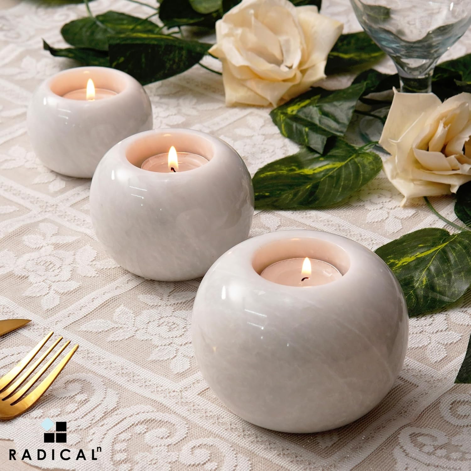AMBIENT LIGHTING - Marble tealight candle holders create soft, warm light that adds a cozy and relaxing ambiance to any room.