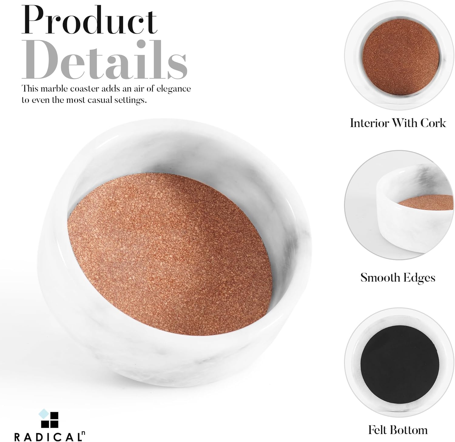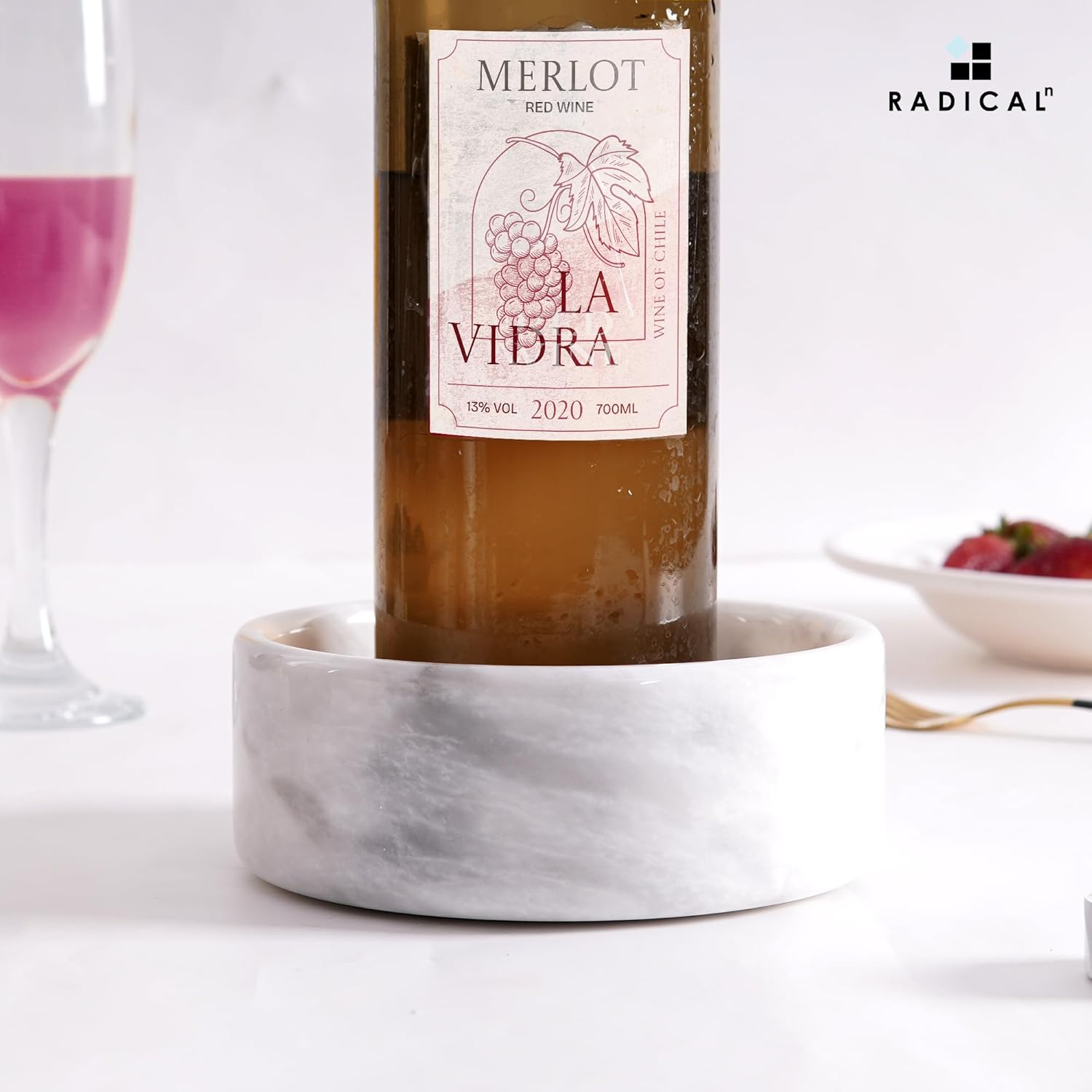 Radicaln Marble Wine Coaster White 5.5" Inch Handmade Drink Coasters Wine Stand - Used As Beer Coasters, Glass Coasters, Coaster Holder - Kitchen Counter Décor Wine Accessories