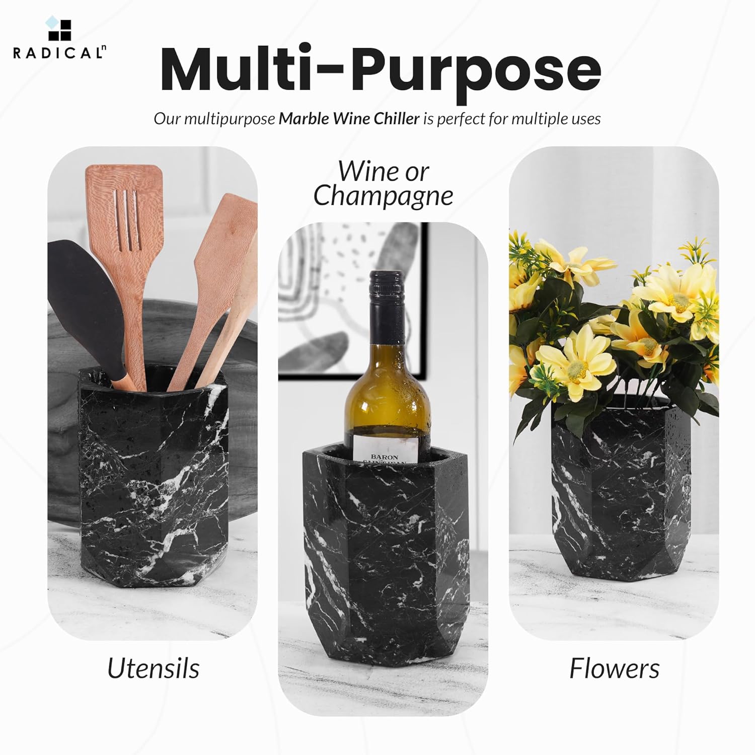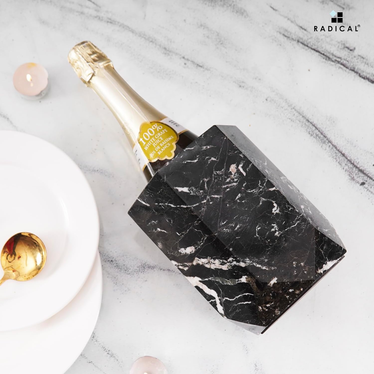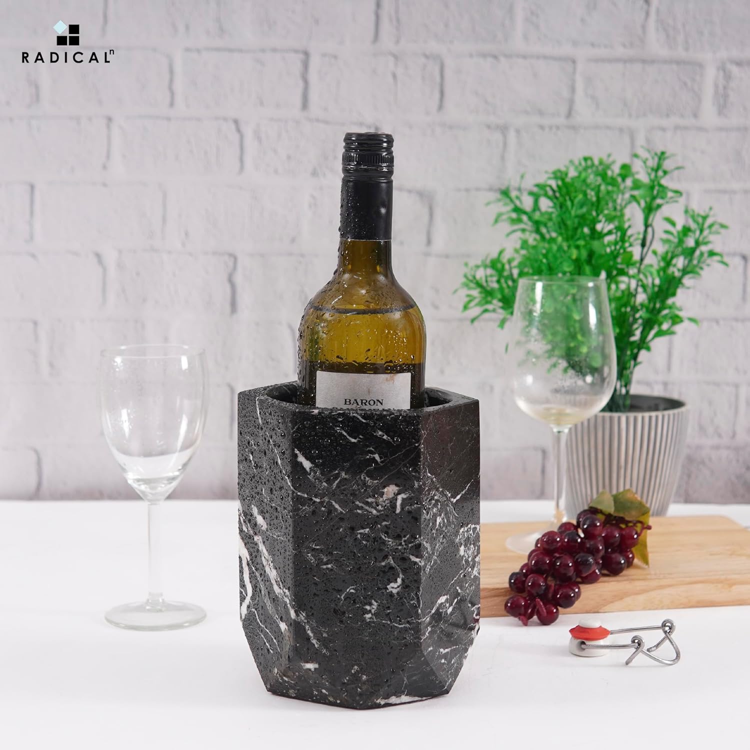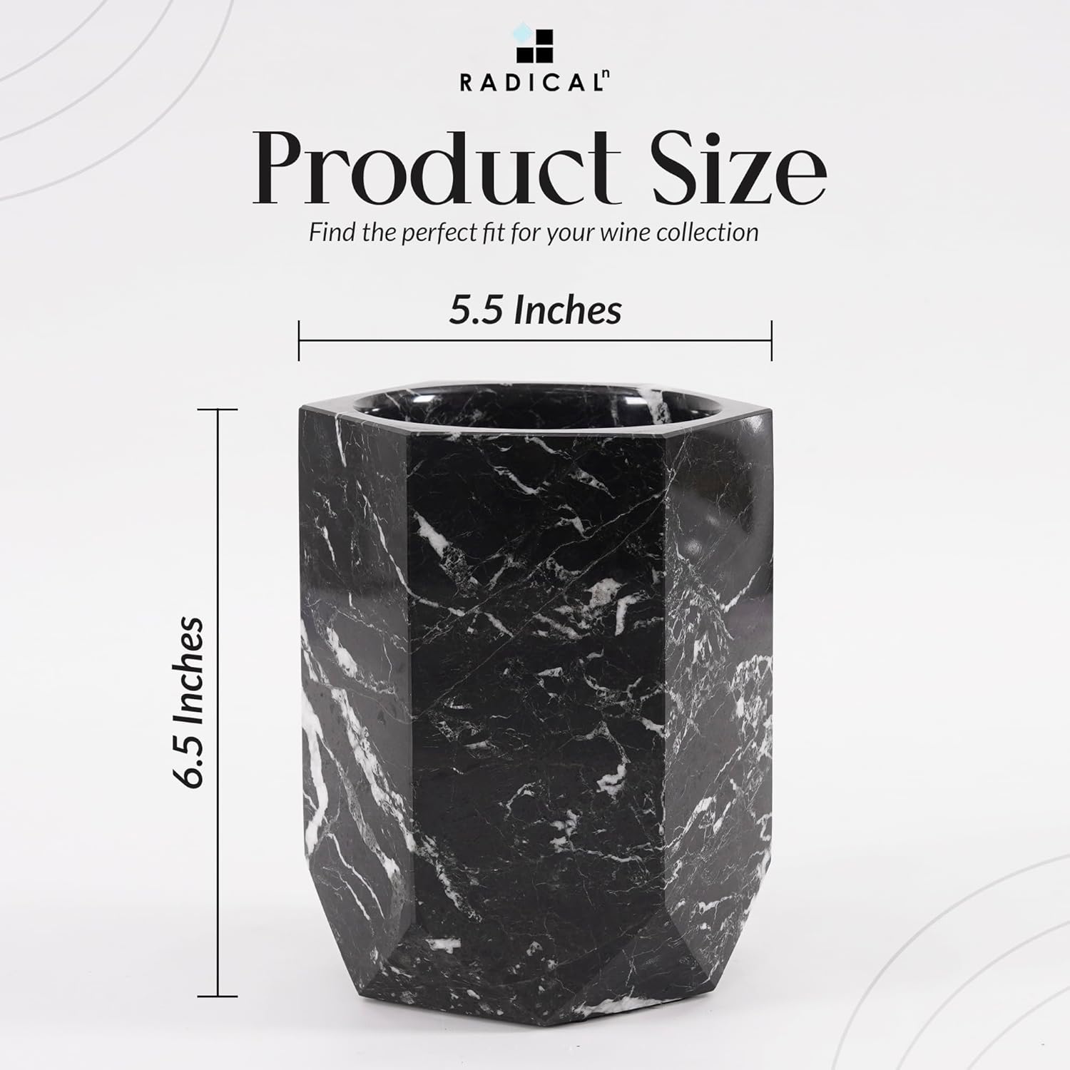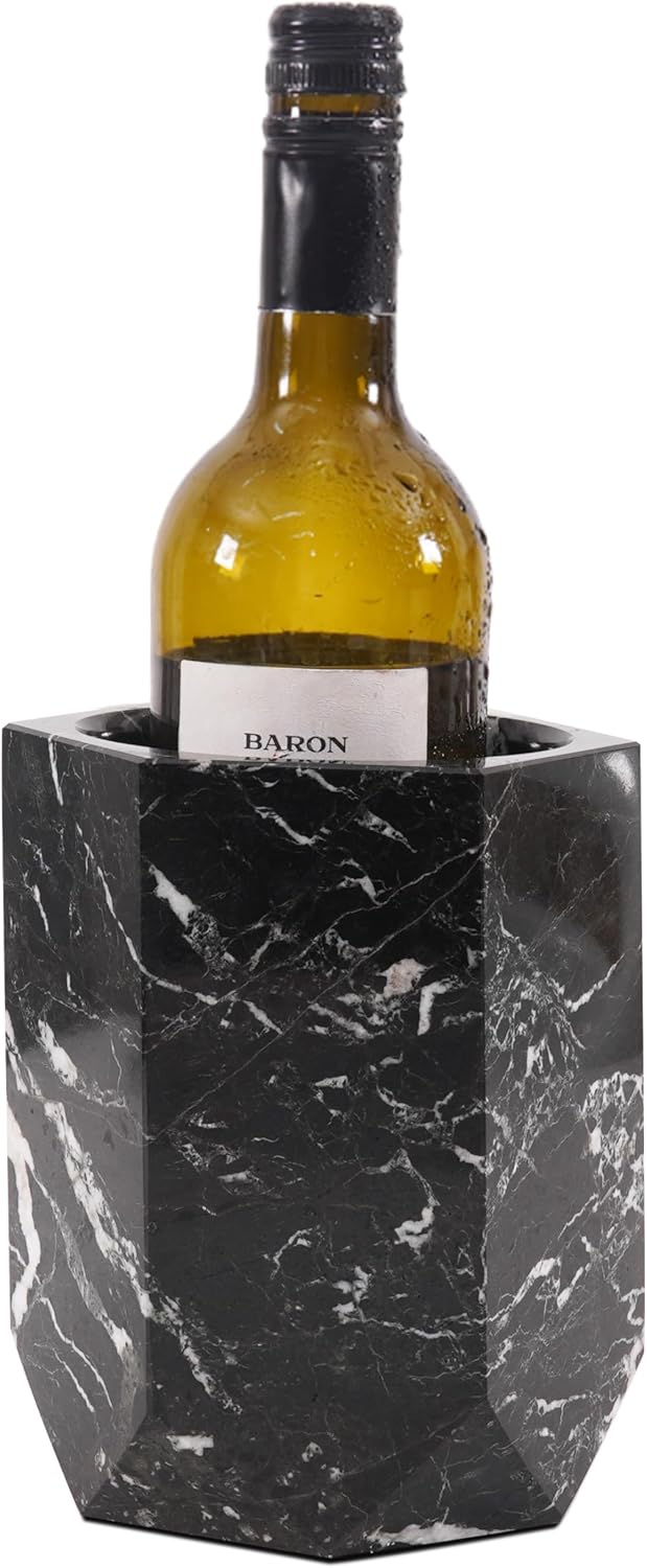 Radicaln Marble Wine Cooler Black 6.5" Inches Handmade Beverage Cooler for Bar Accessories, Wine Chiller for Bottle & Champagne - Bar Decor Accessories