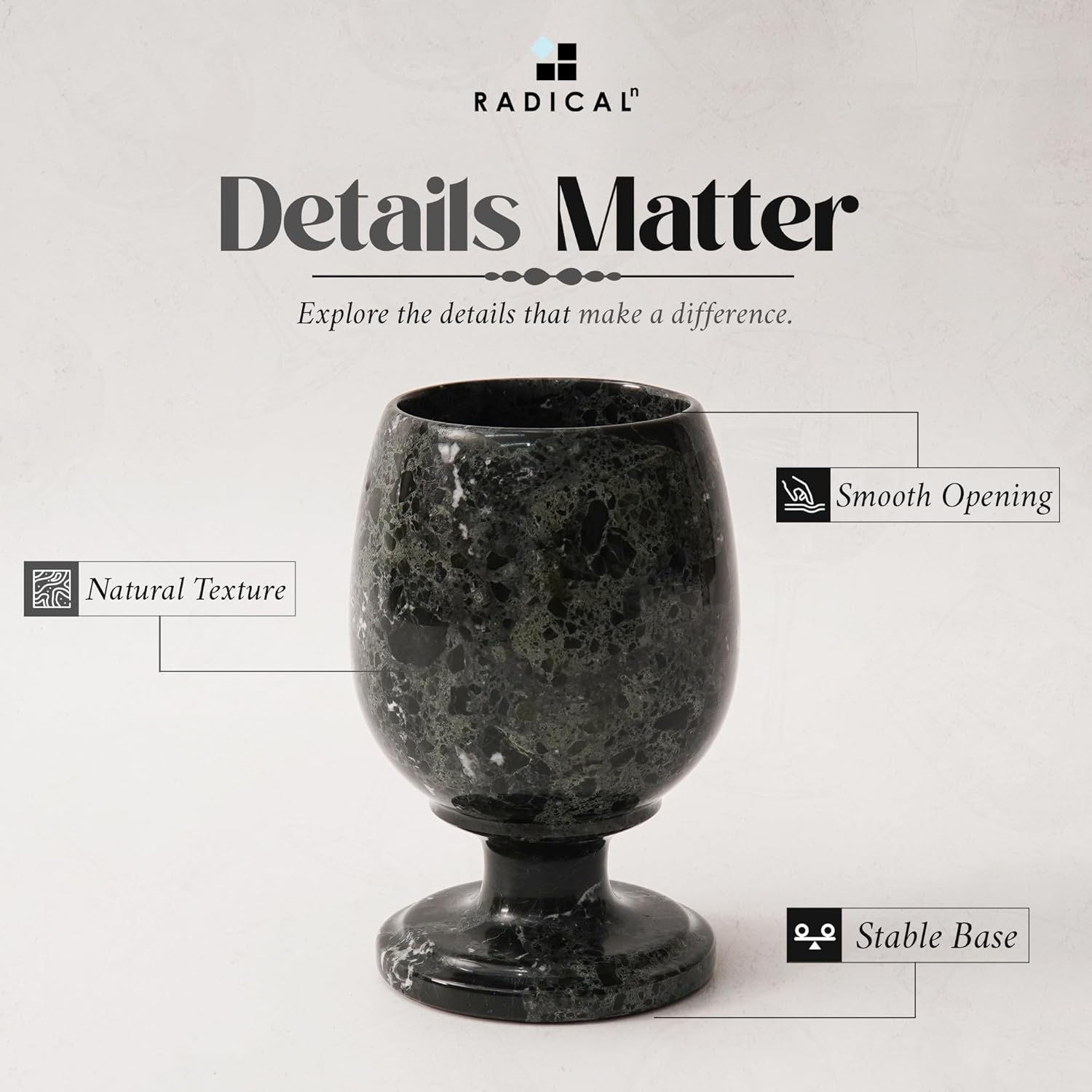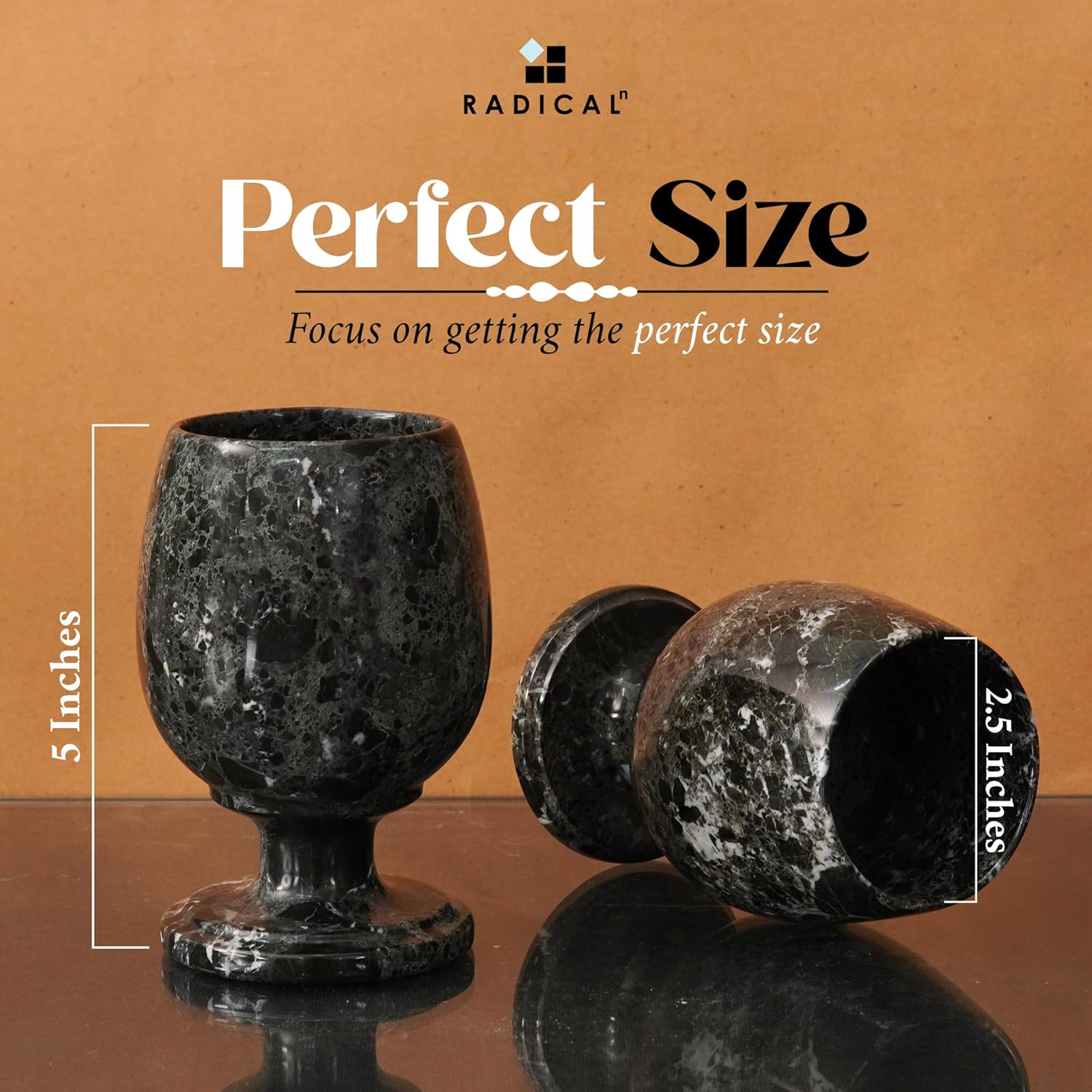 Radicaln Marble Wine Glasses 5'' Inches Black Handmade Red Wine Glasses for Wine Bar Ideal Stemless Wine Glass Wine Glass Set & Wine Glass Set of 2 for Champagne