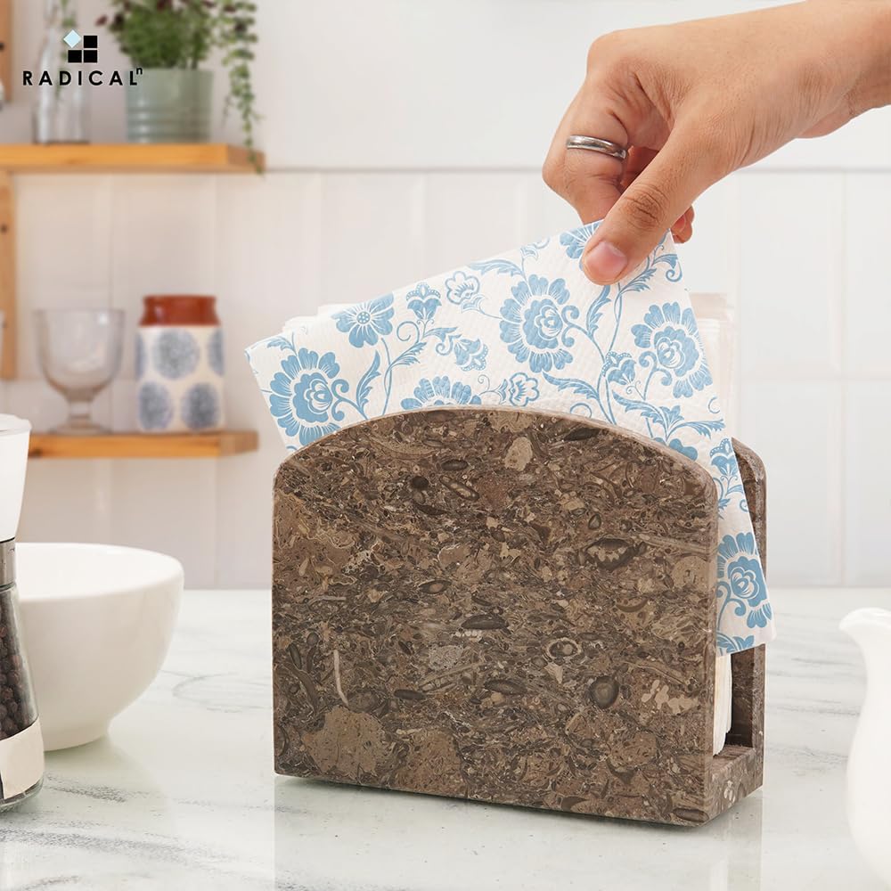 RADICALn Napkin Holder Oceanic Handmade Marble 6.5"x5.5" Inch Napkin Dispenser-Perfect for Wall Decor Tabletop Decor & Coffee Table-Stylish Kitchen Paper Towel Holder