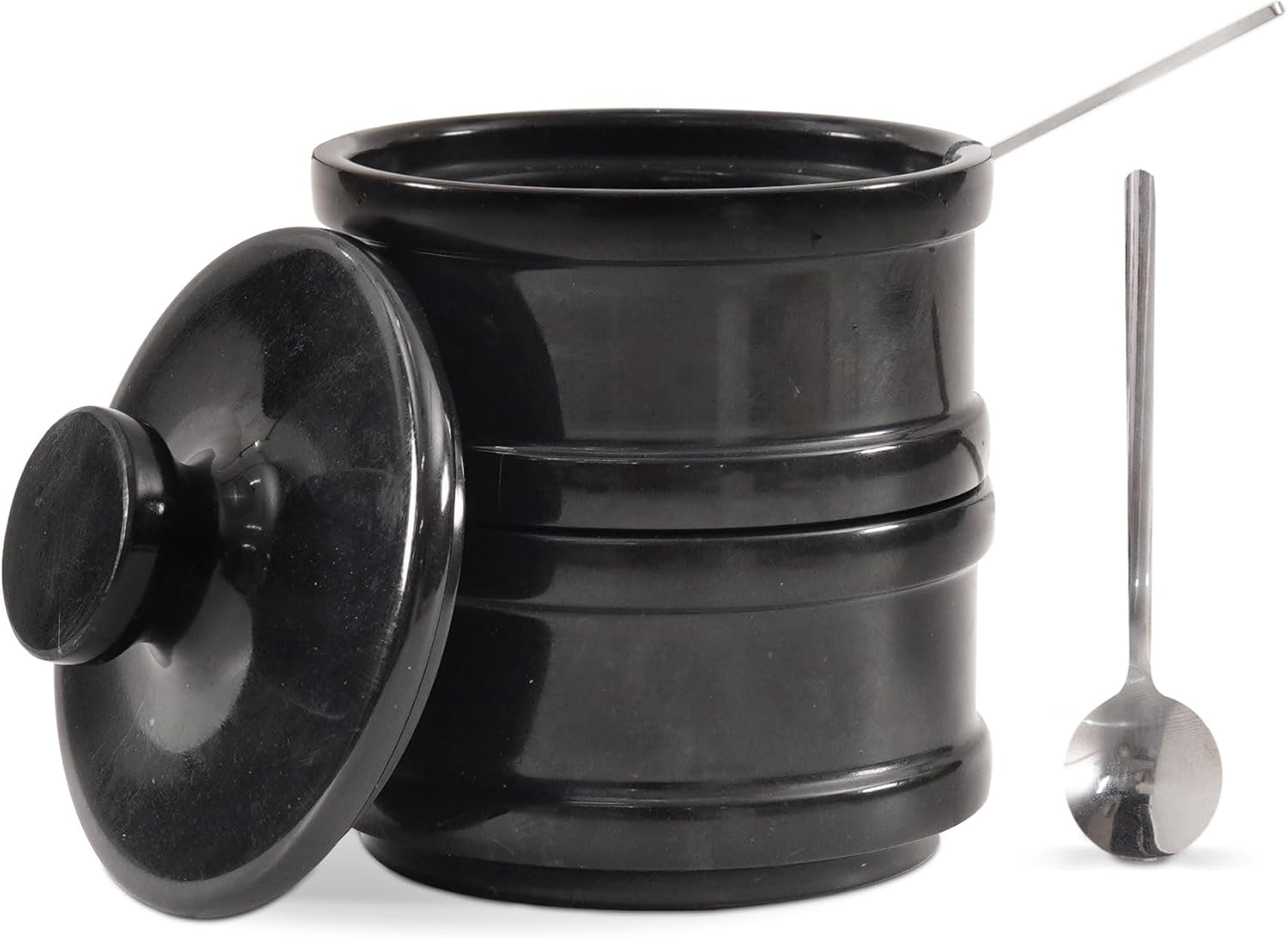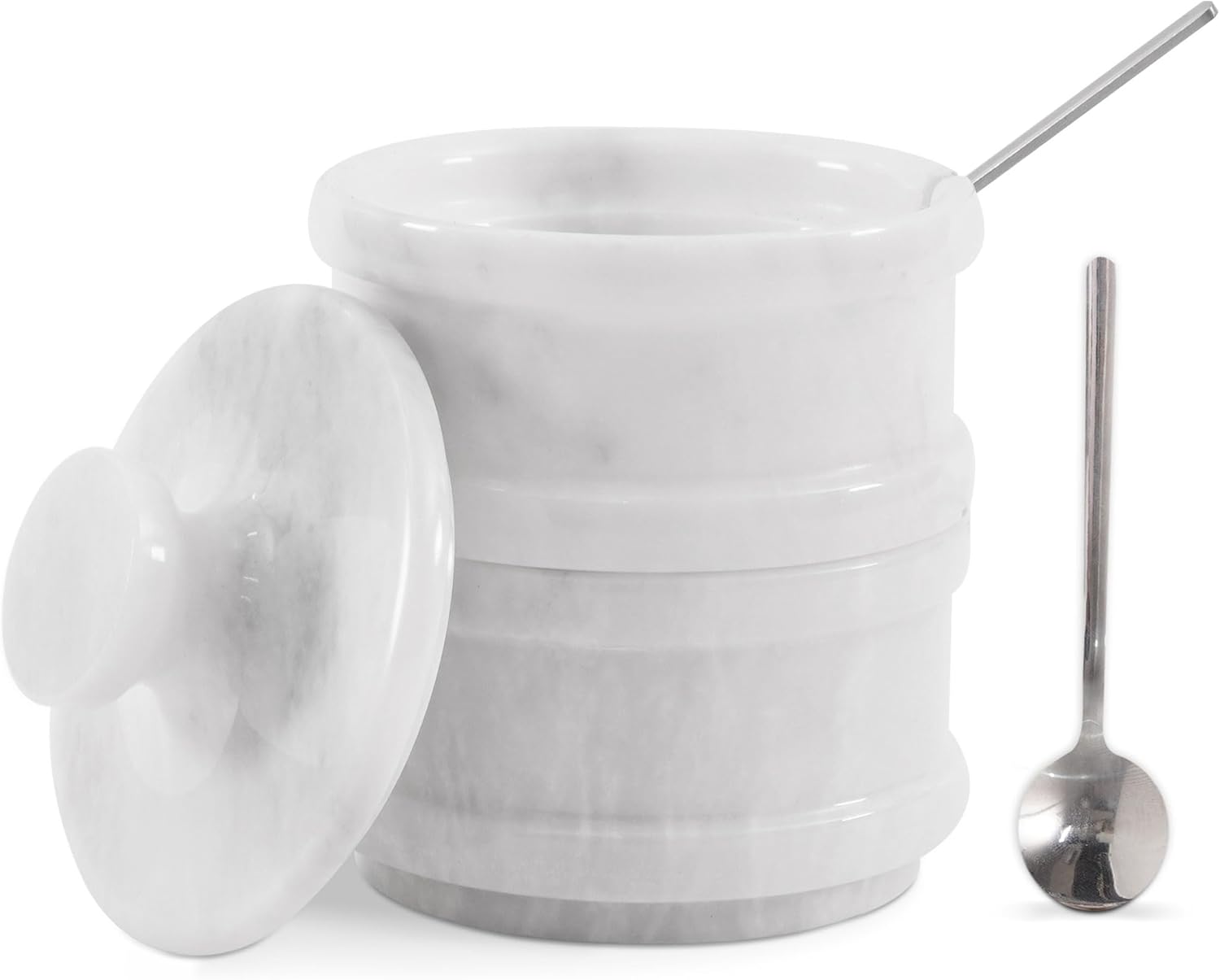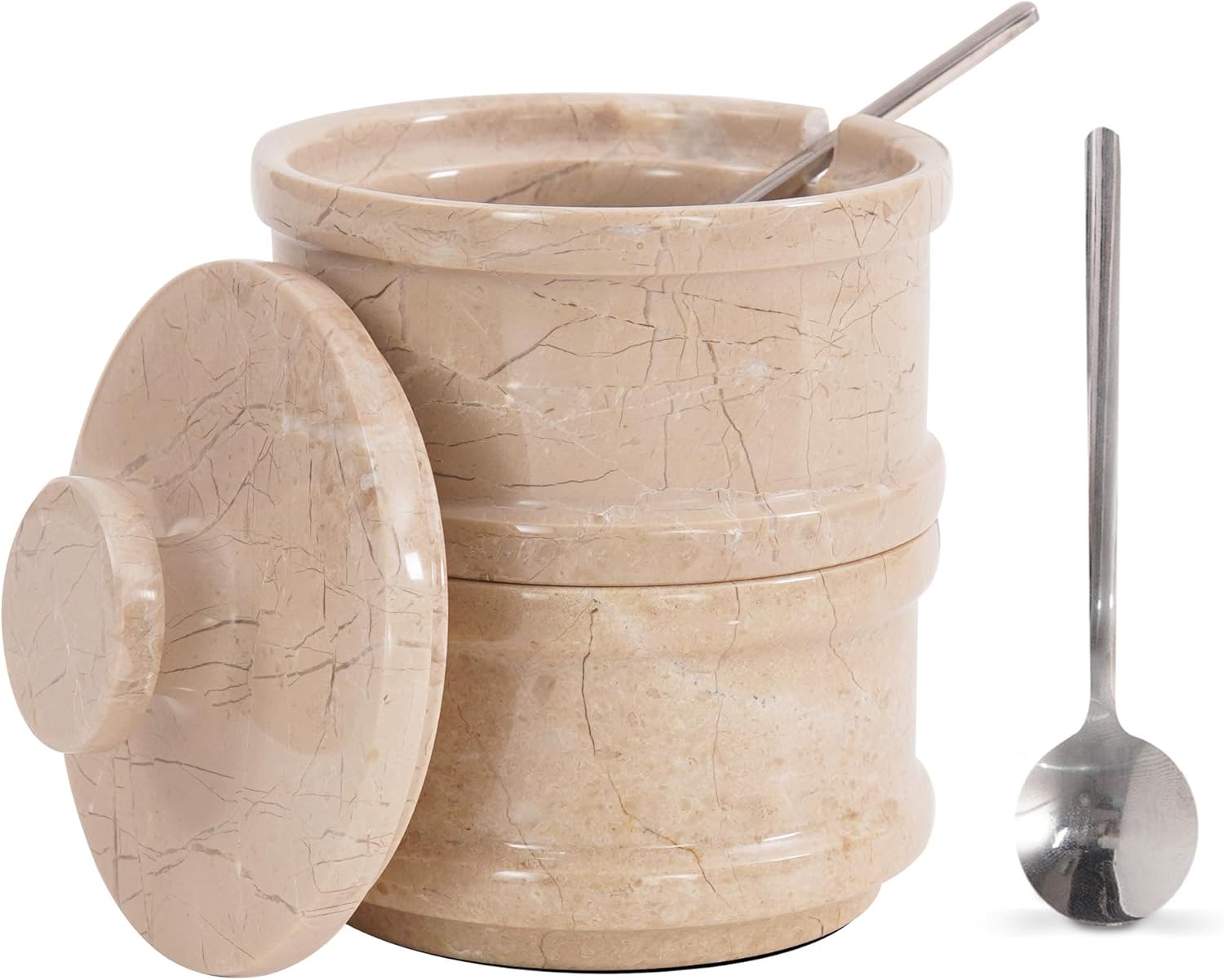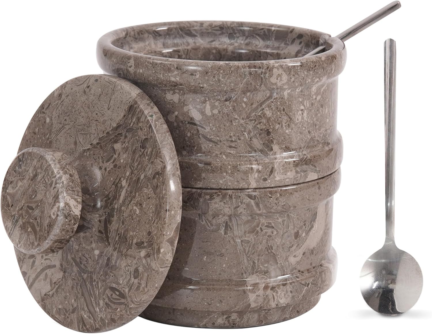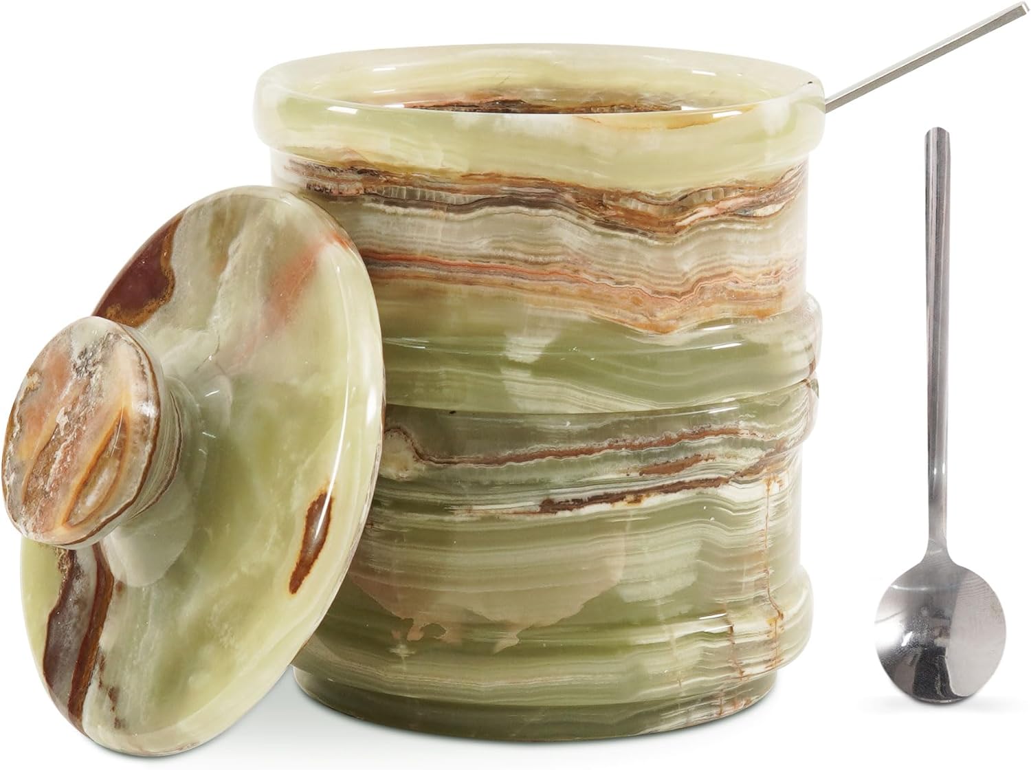 Radicaln Salt & Pepper Bowl – 5.5” Handmade Marble Green Onyx Dual Salt Cellar With Lid – 2.3” Each Brown Sugar Butter Keeper Spice Herbs Container Kitchen Accessories