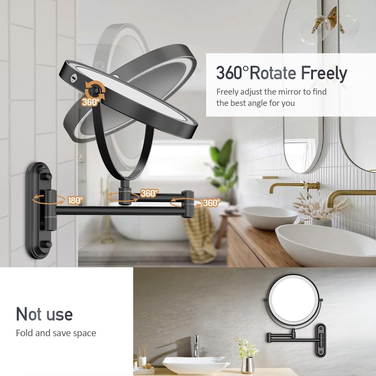 【360°Flexible Swivel & Extendable】The magnifying mirror with extendable arm allows you to fix your mirror to the optimal position for perfect viewing. Adjusting the arm to any angle you desire. You can also fold the mirror on the wall to save space when you are not using it.