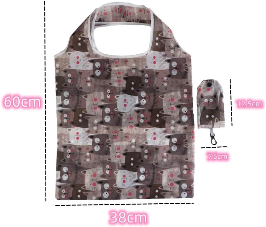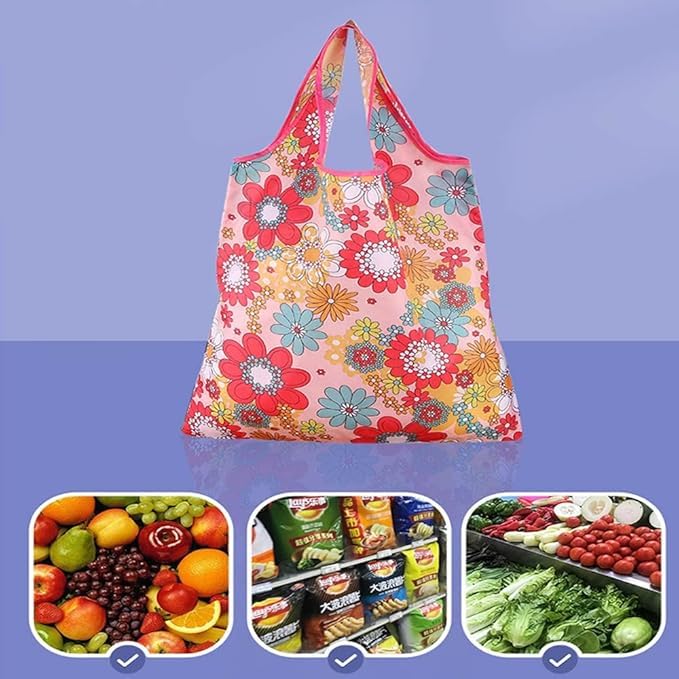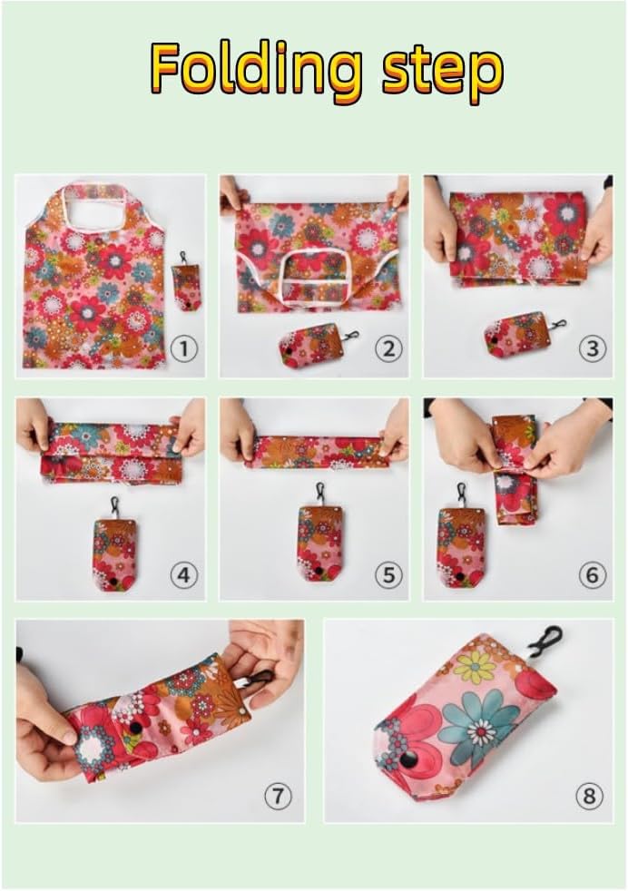EASY TO CARRY: The reusable bag can be folded into a small bag, if not in use, You can put it into your purse, pocket or car, without taking up much room.Our grocery bags can be machine washed. If you want to extend the life of the shopping bag, we suggest you wash it by hand and air drying.