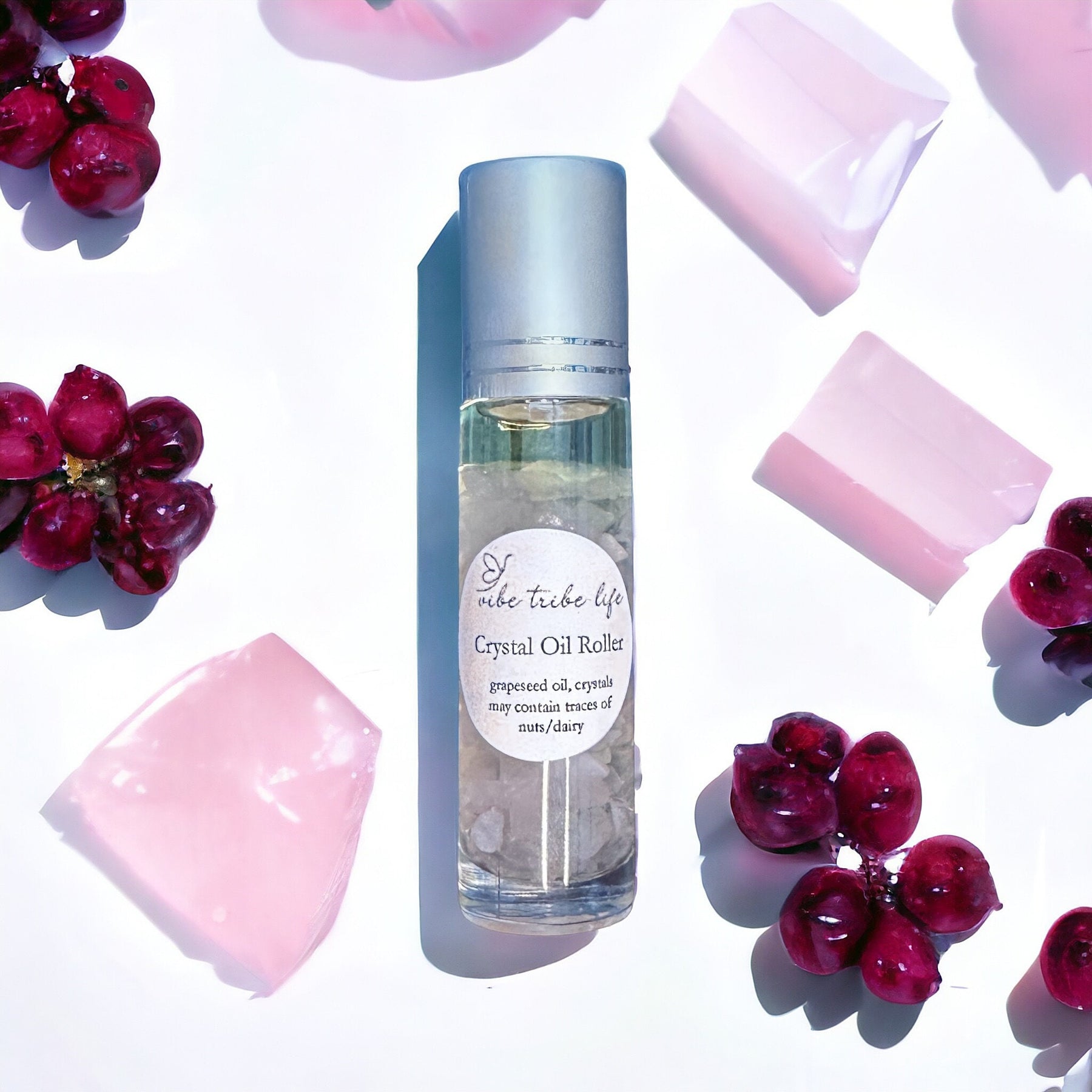 Rose Quartz Crystal Oil Roller | Cruelty-Free Moisturising Body Oil | Softening Body Oil | Body Care | Vegan Skin Care