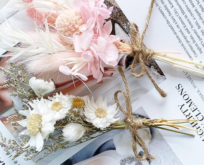 - A mini bouquet of dried flowers (selected at random) (may be substituted with a bag of dried flowers depending on season/availability).