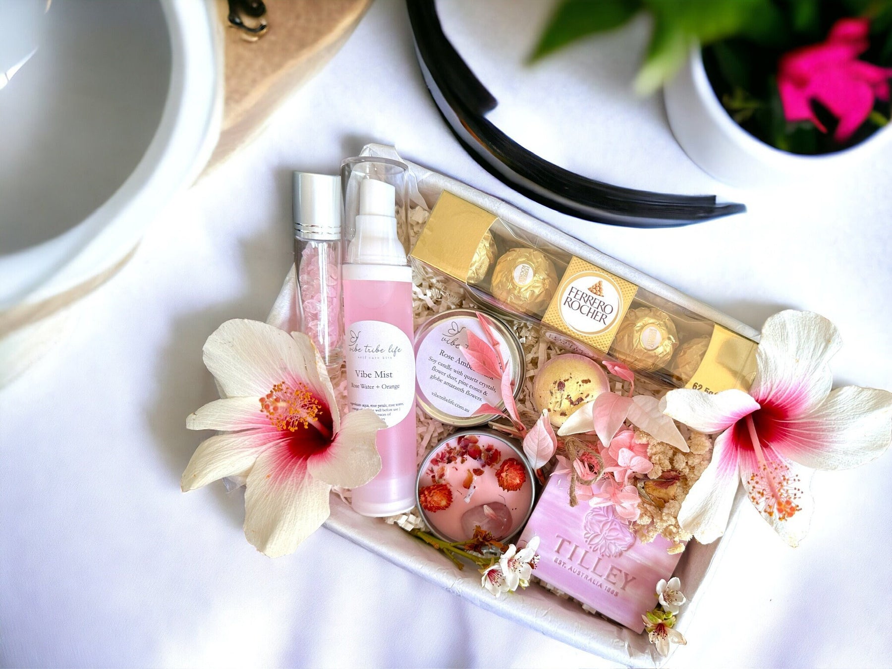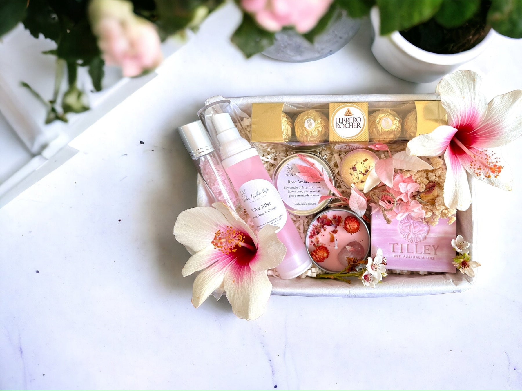 Note: Fresh flowers are not included. Made with love in Gold Coast. Some items in this set may contain traces of nuts and/or dairy. 🥥🍫